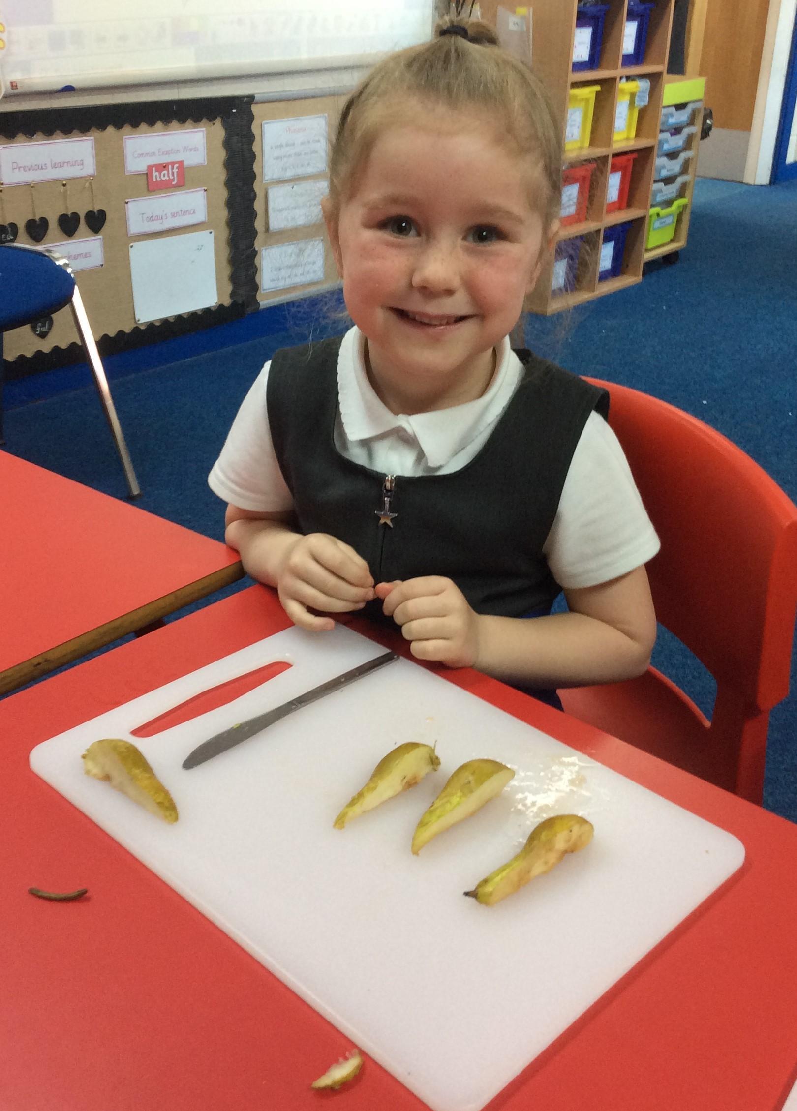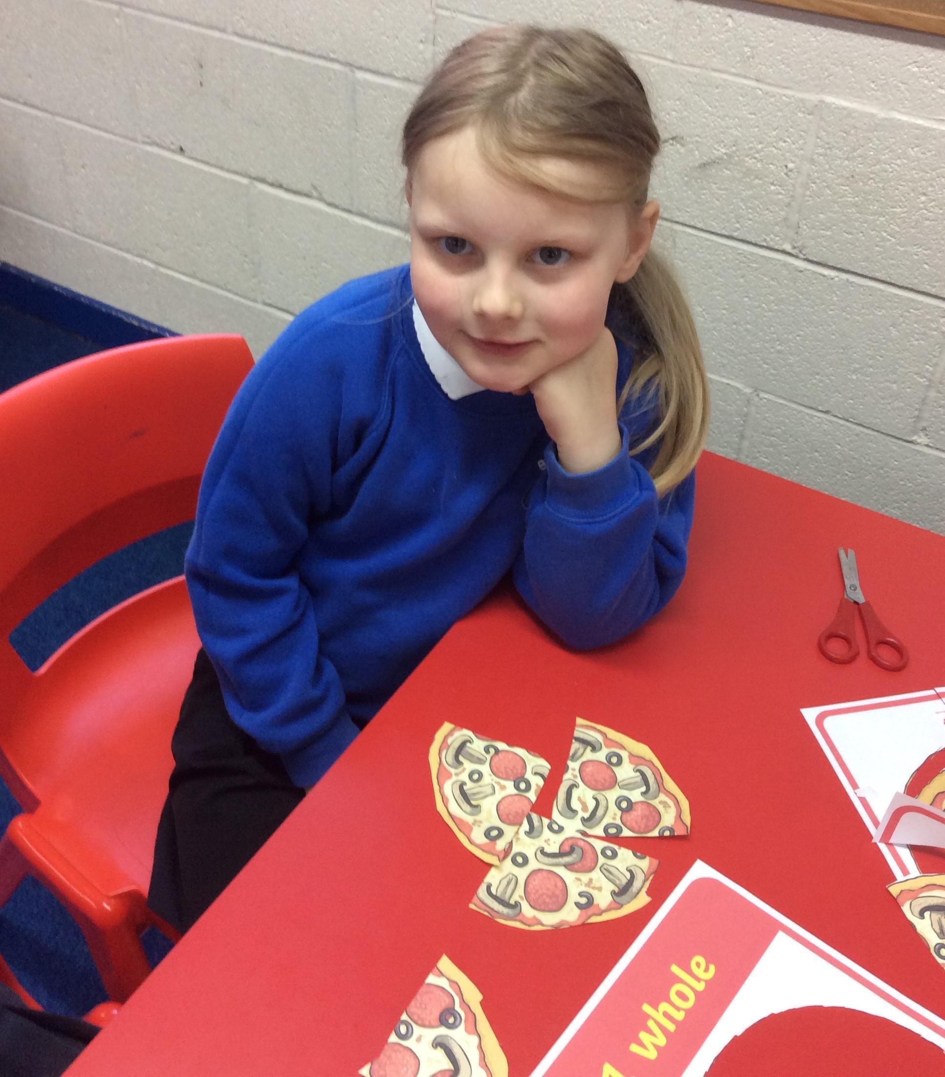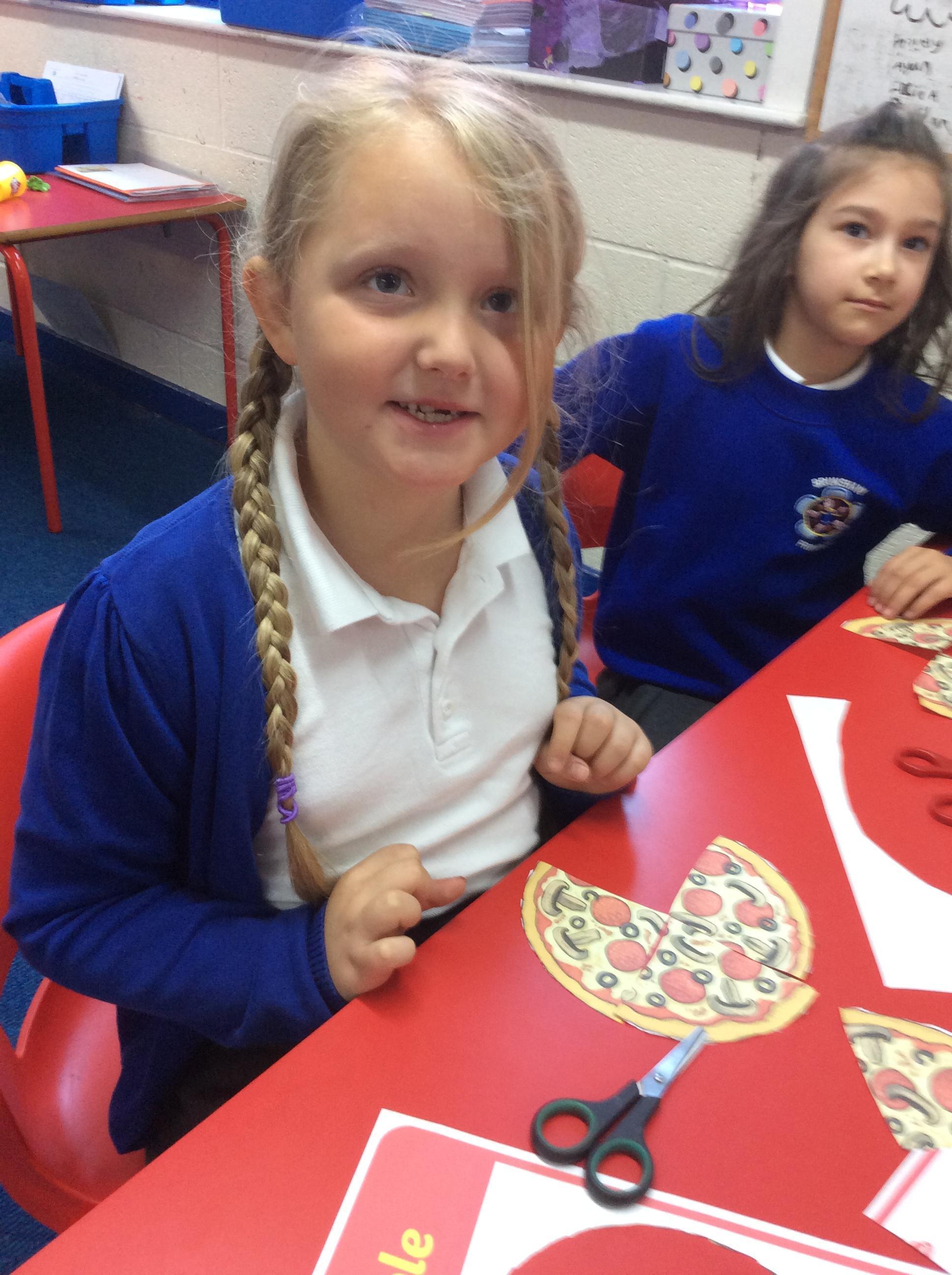 This week we used Play-doh, coloured water, pears and pizza to learn about the fraction three quarters!