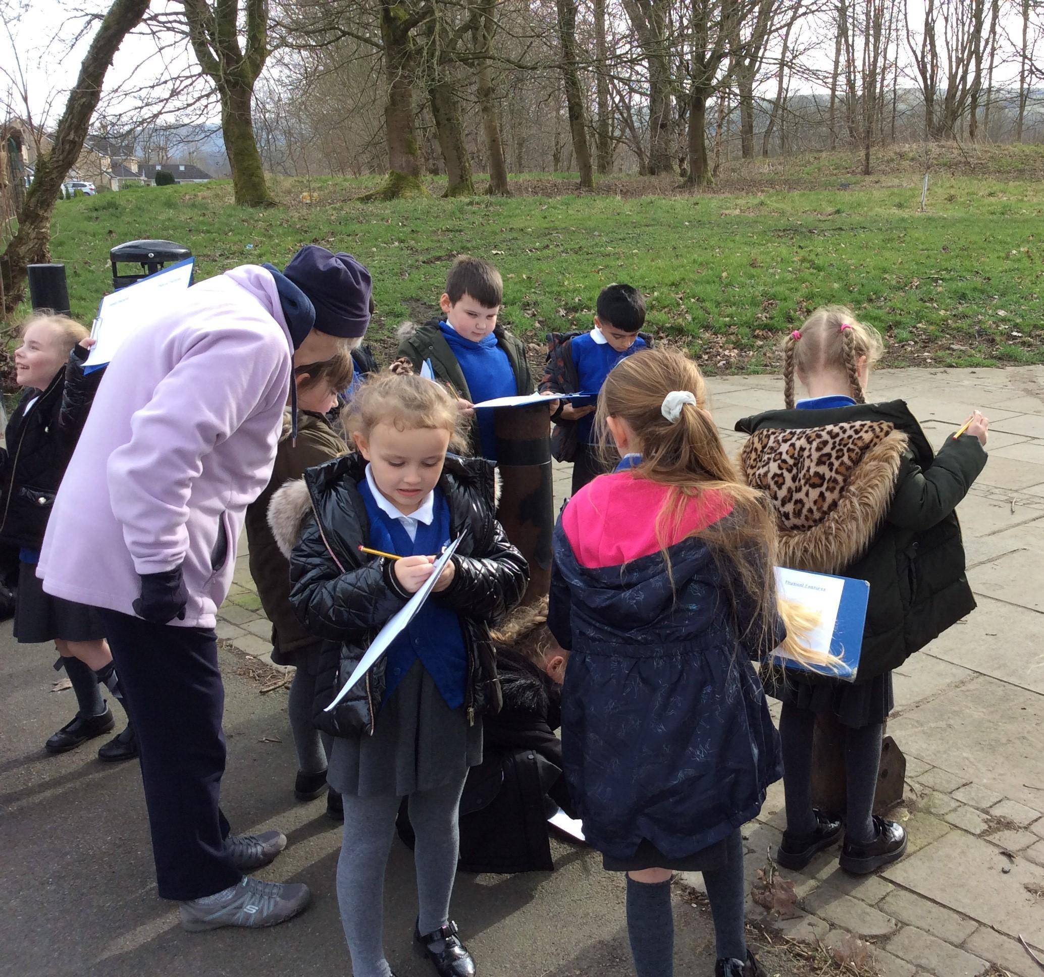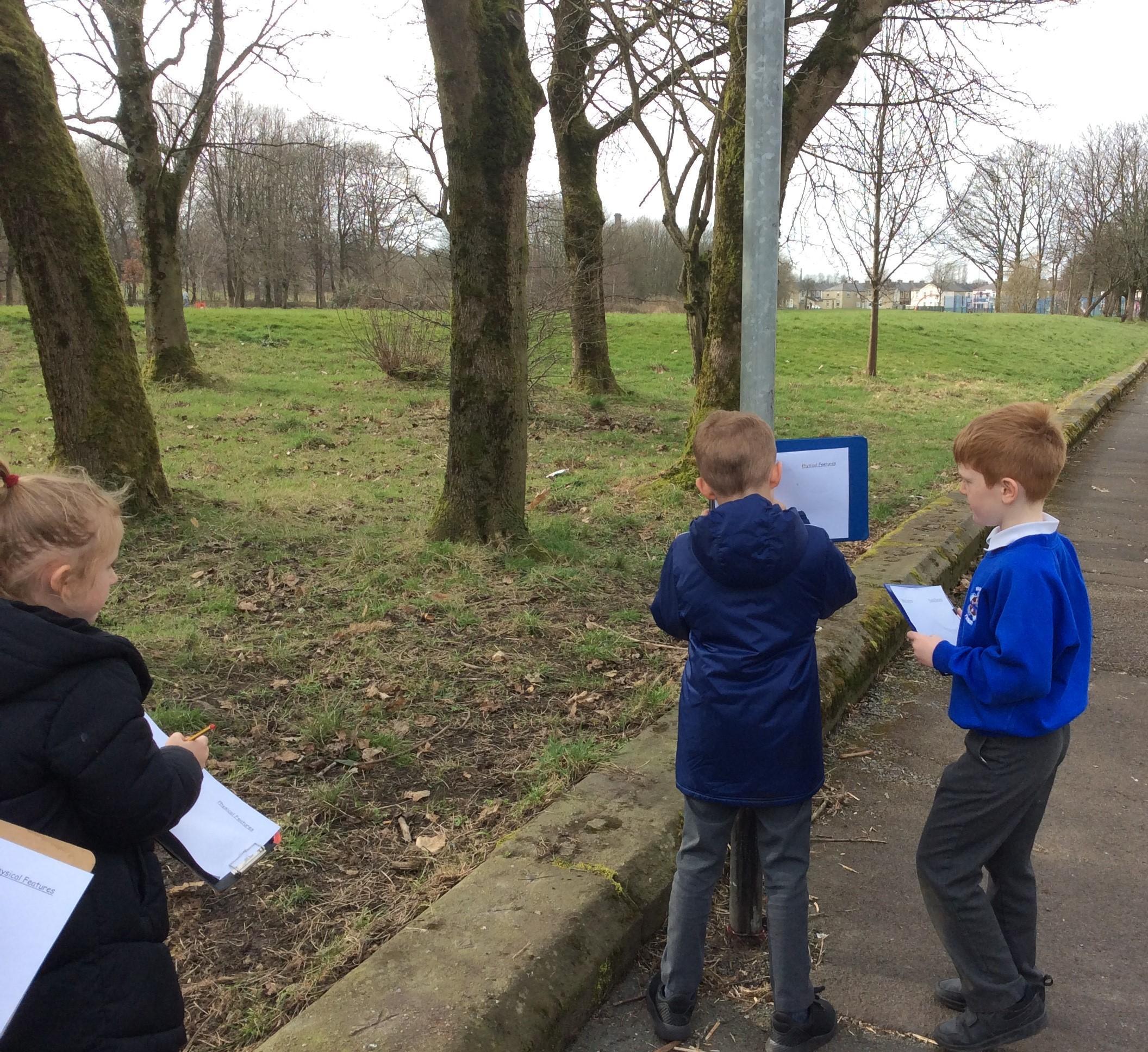 We looked for all the human and physical features we could see at our local park and drew pictures of them! Of course we had to try out the human features at the park too - it would be rude not to!!