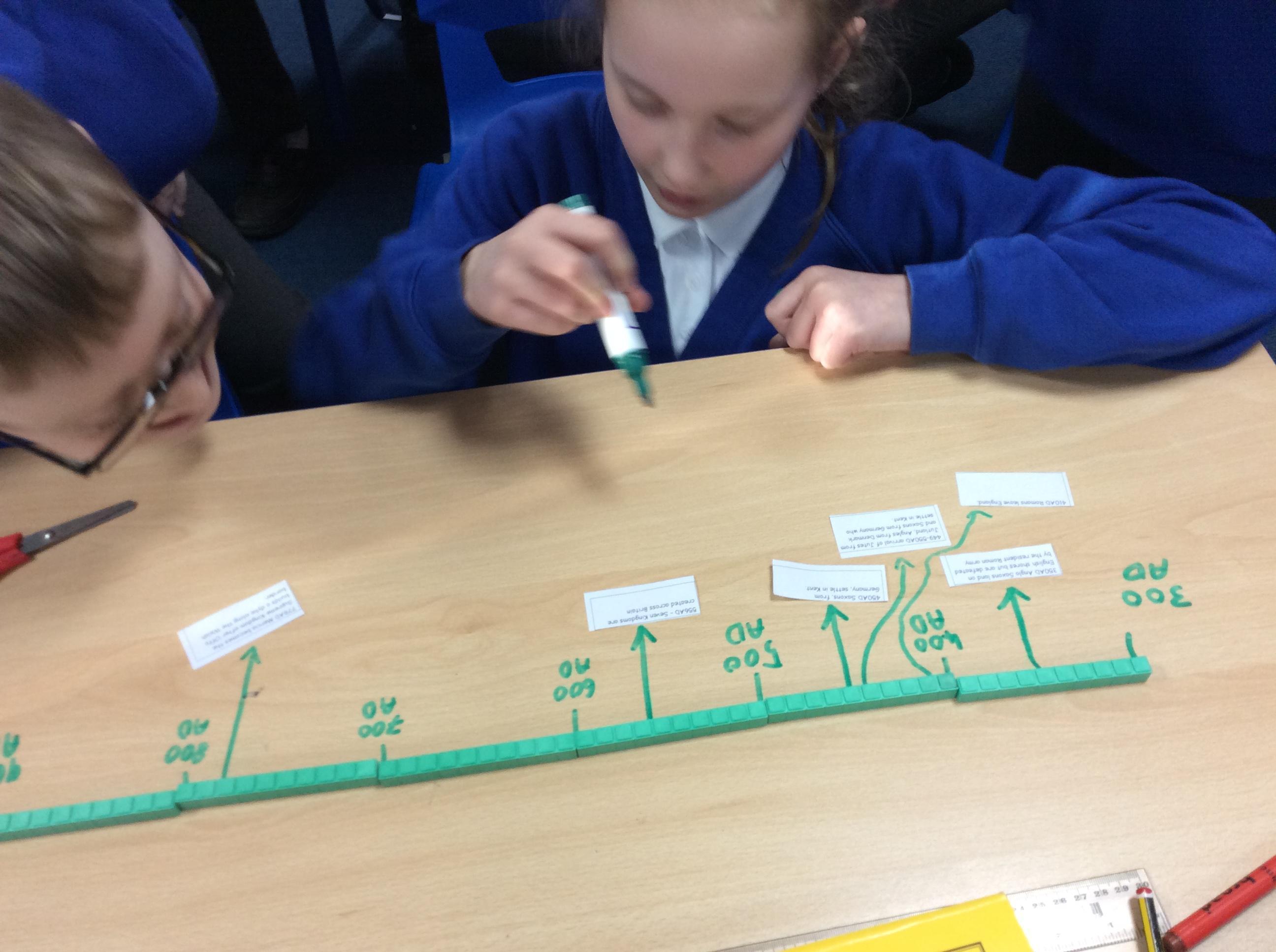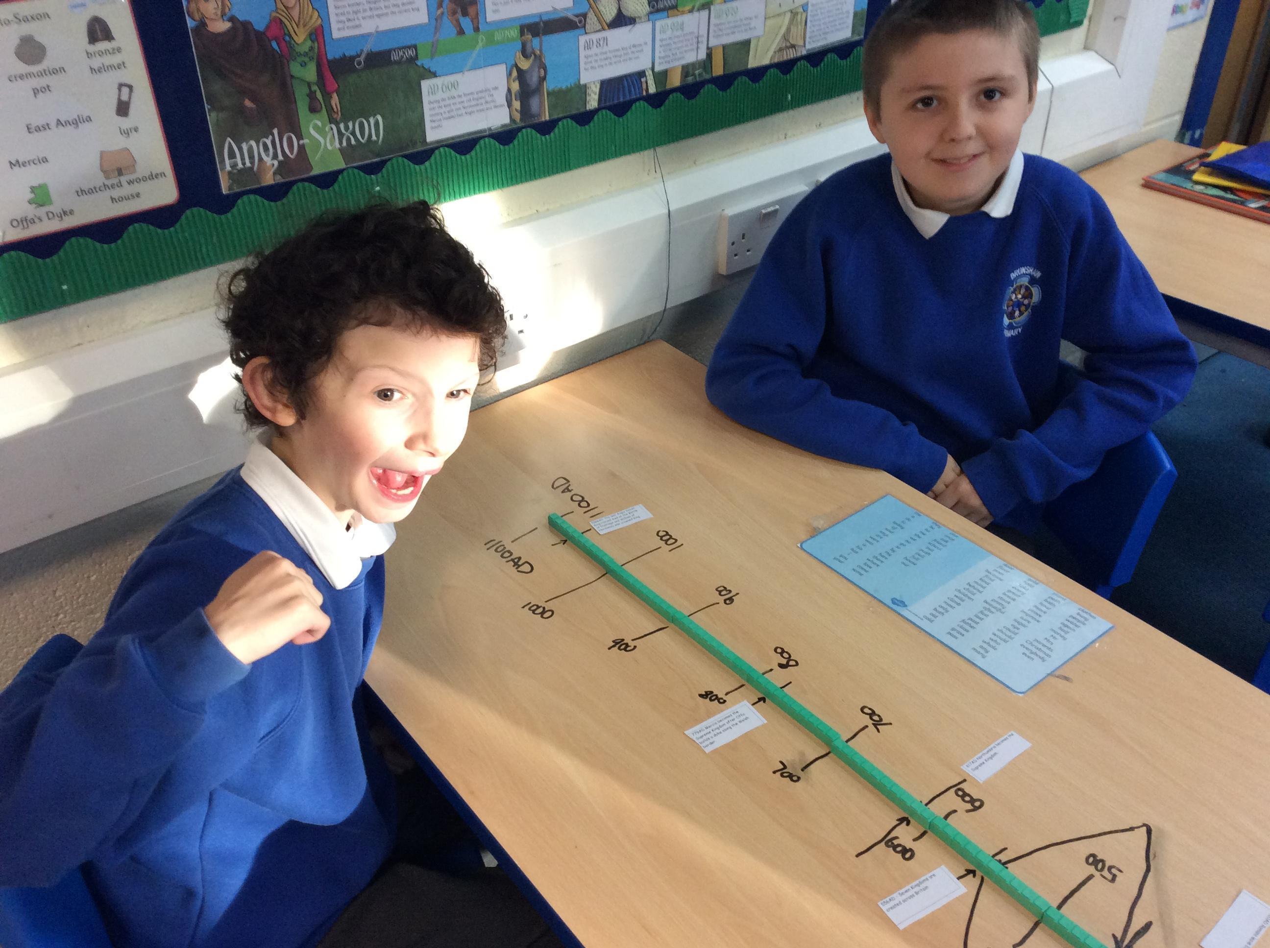 This week, we looked at whether the Anglo Saxons all came to Britain at once to invade. We also looked at other events that happened during the era, on a chronological timeline. We used base 10 to represent a century - each 'one' representing a decade!