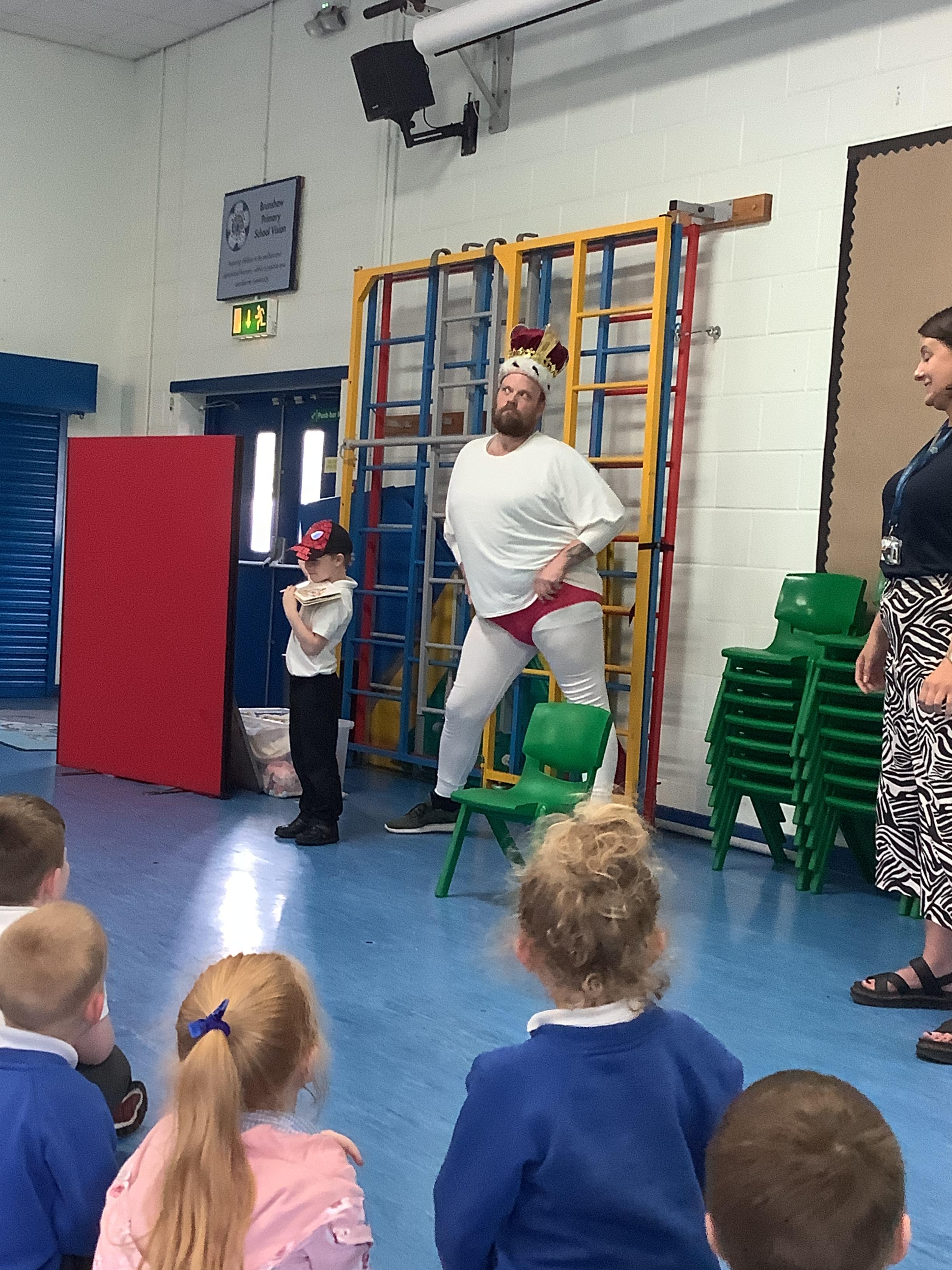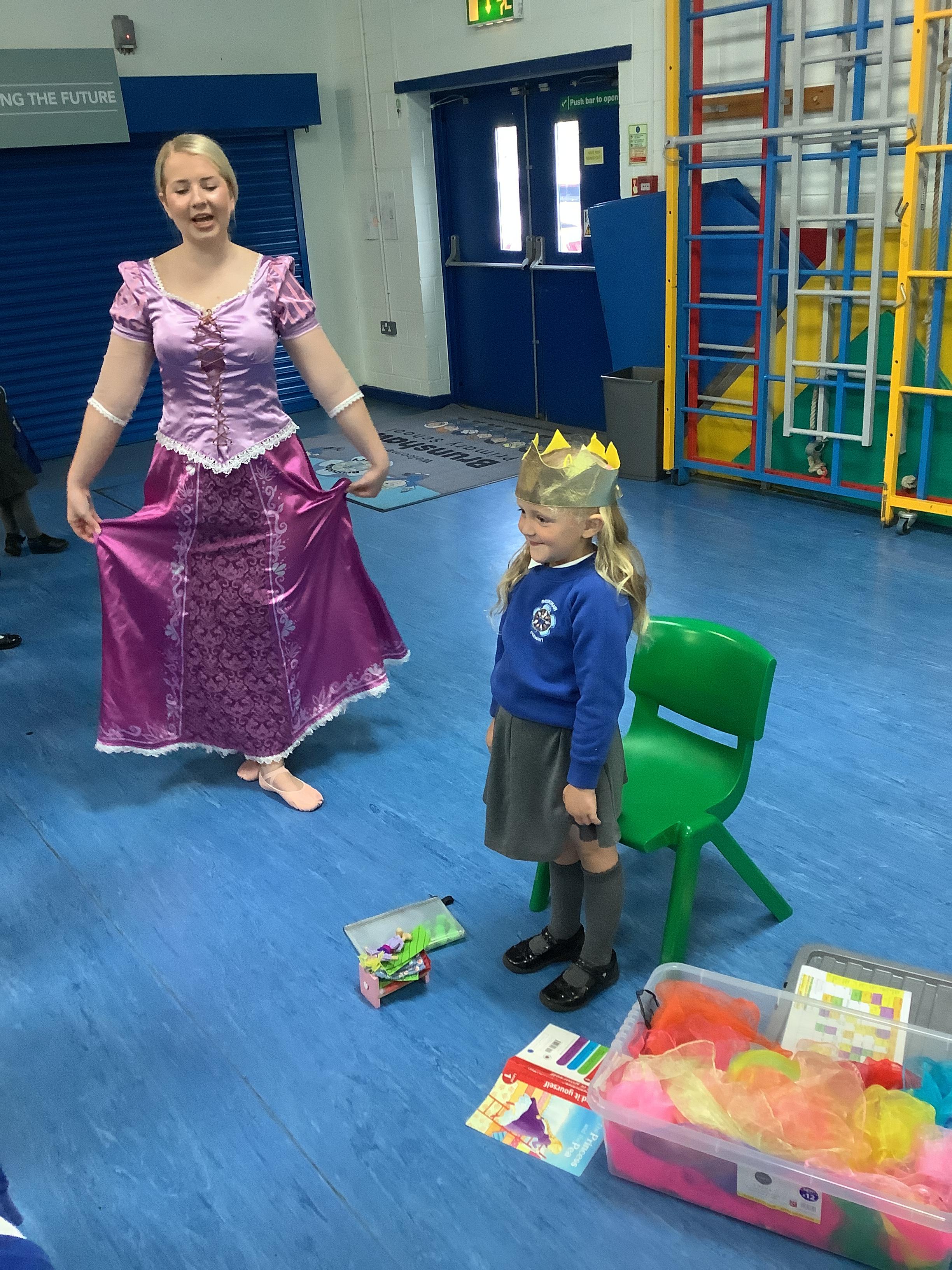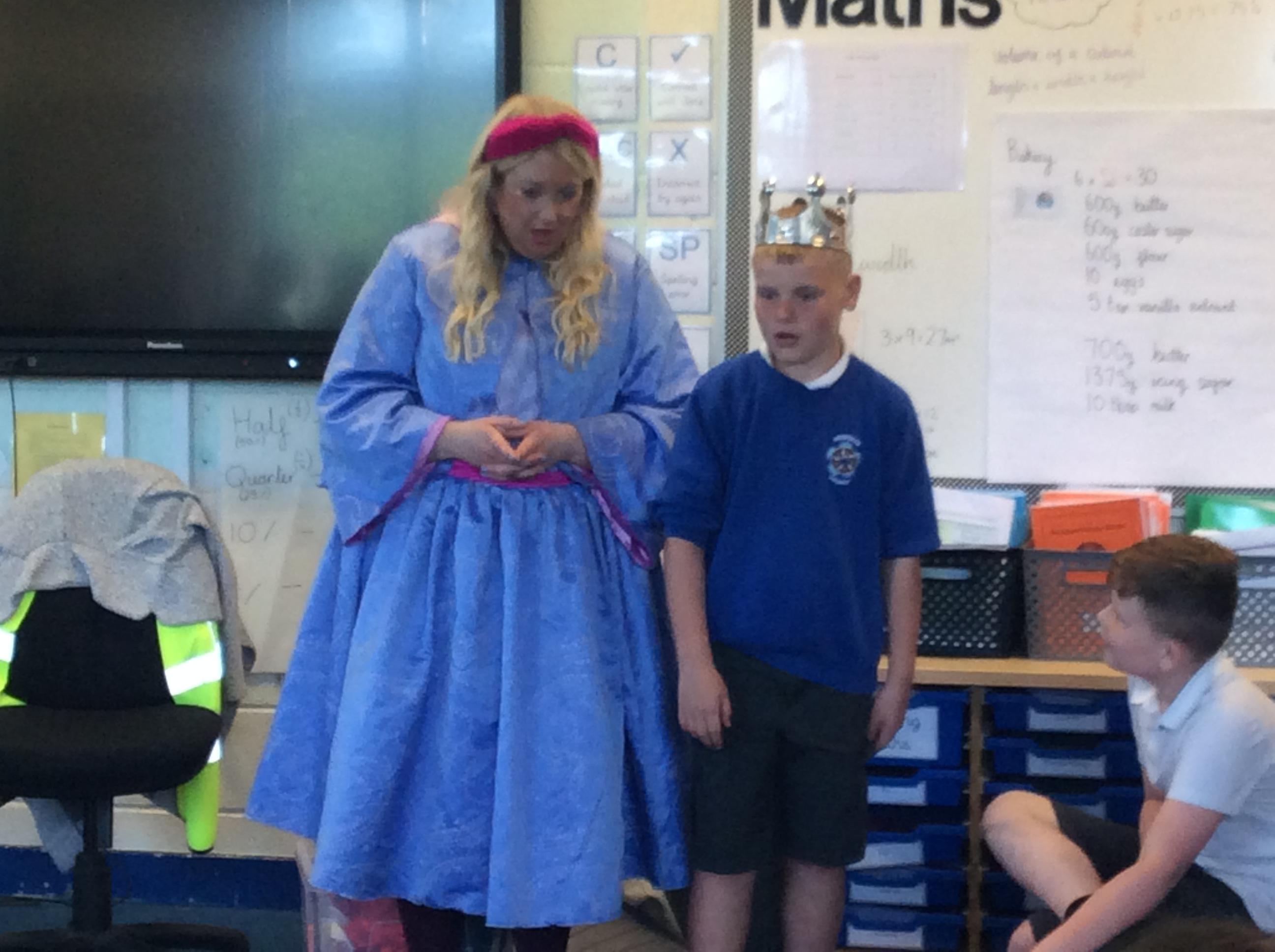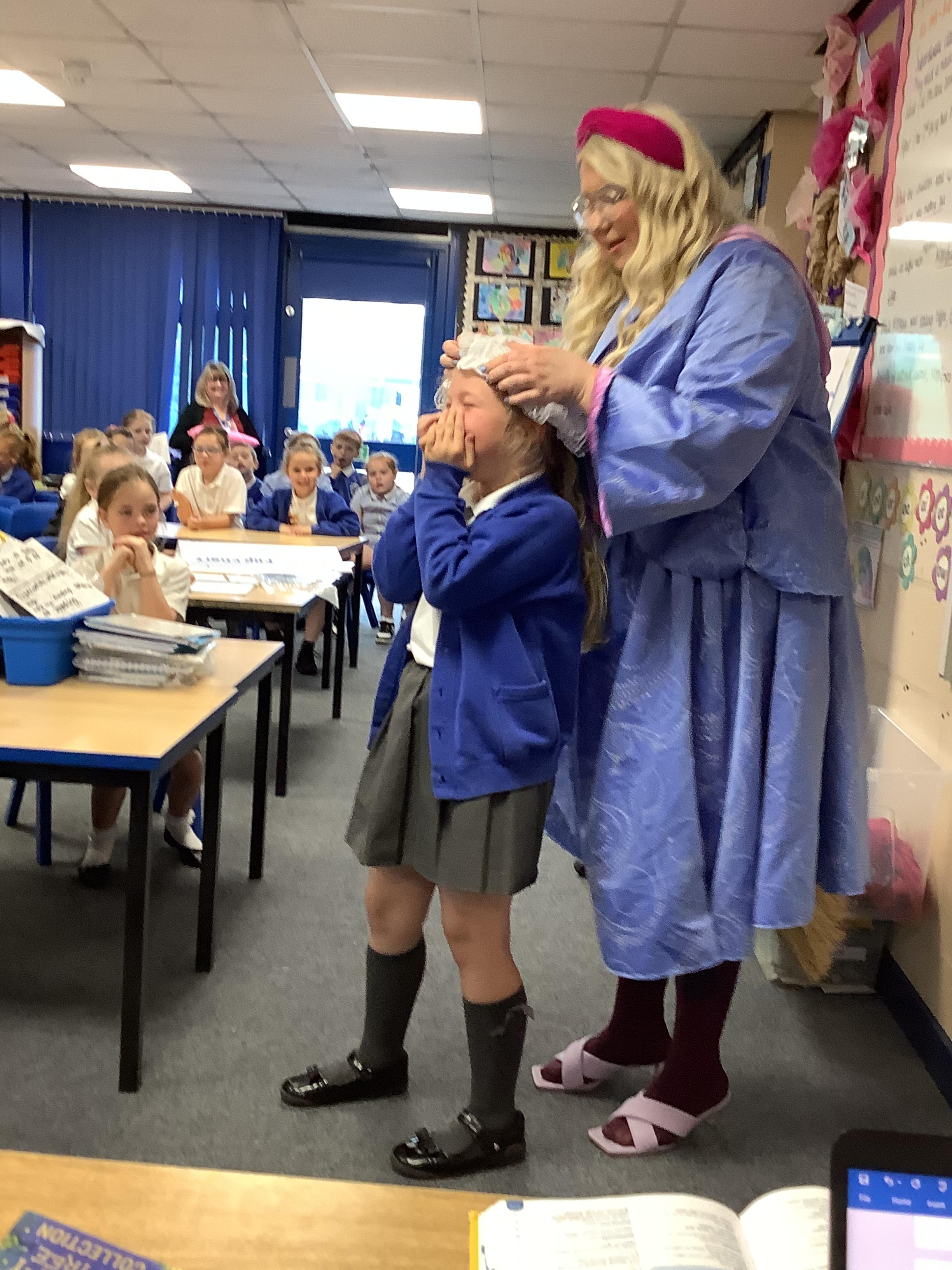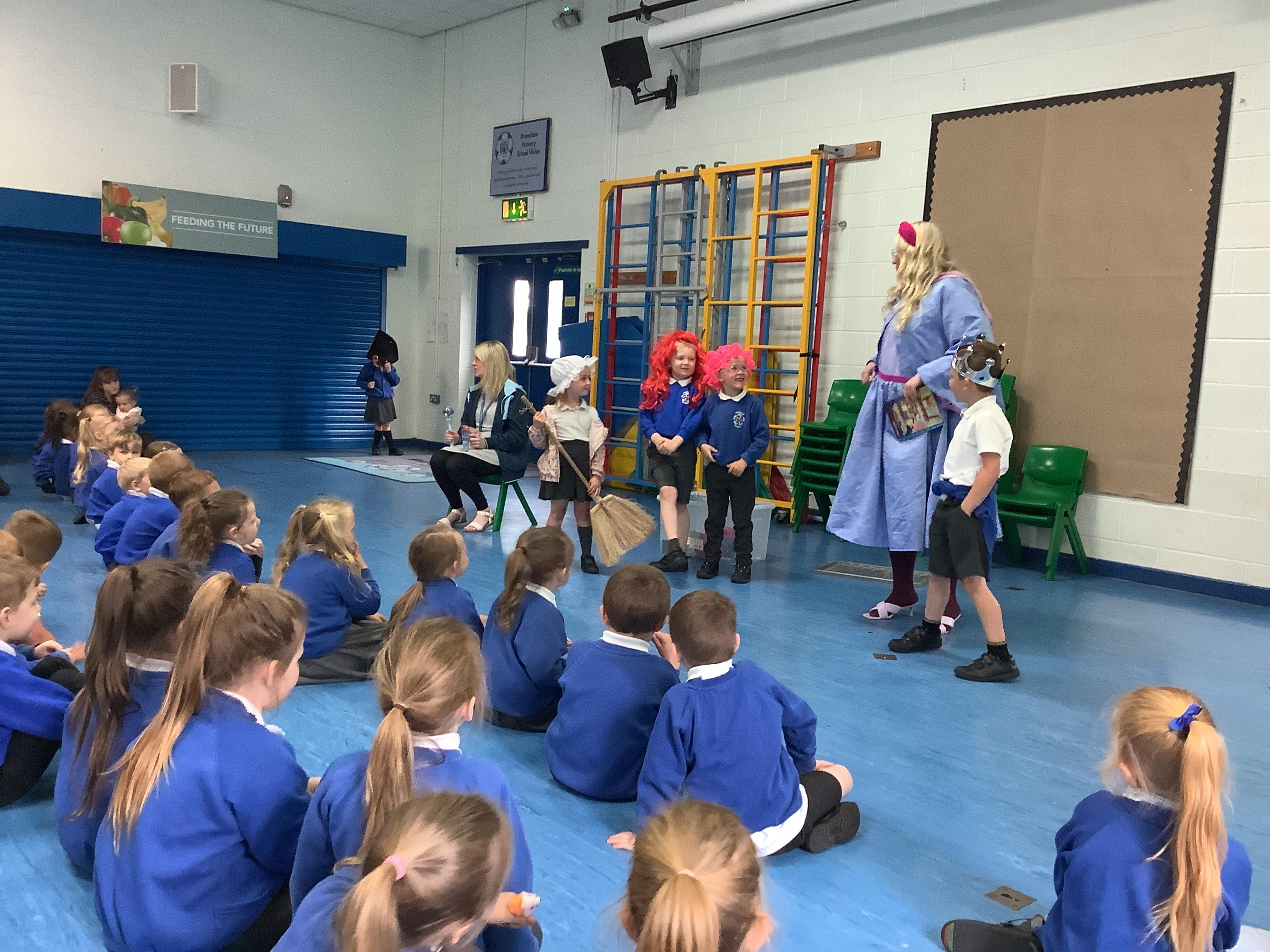 On Tuesday 23rd May, Brunshaw was taken over by fairy tale characters. We were visited by the Fairy Godmother, Rumplestiltskin, a very tired princess from the story The Princess and the Pea and a very funny Emperor - both with and without his new clothes.