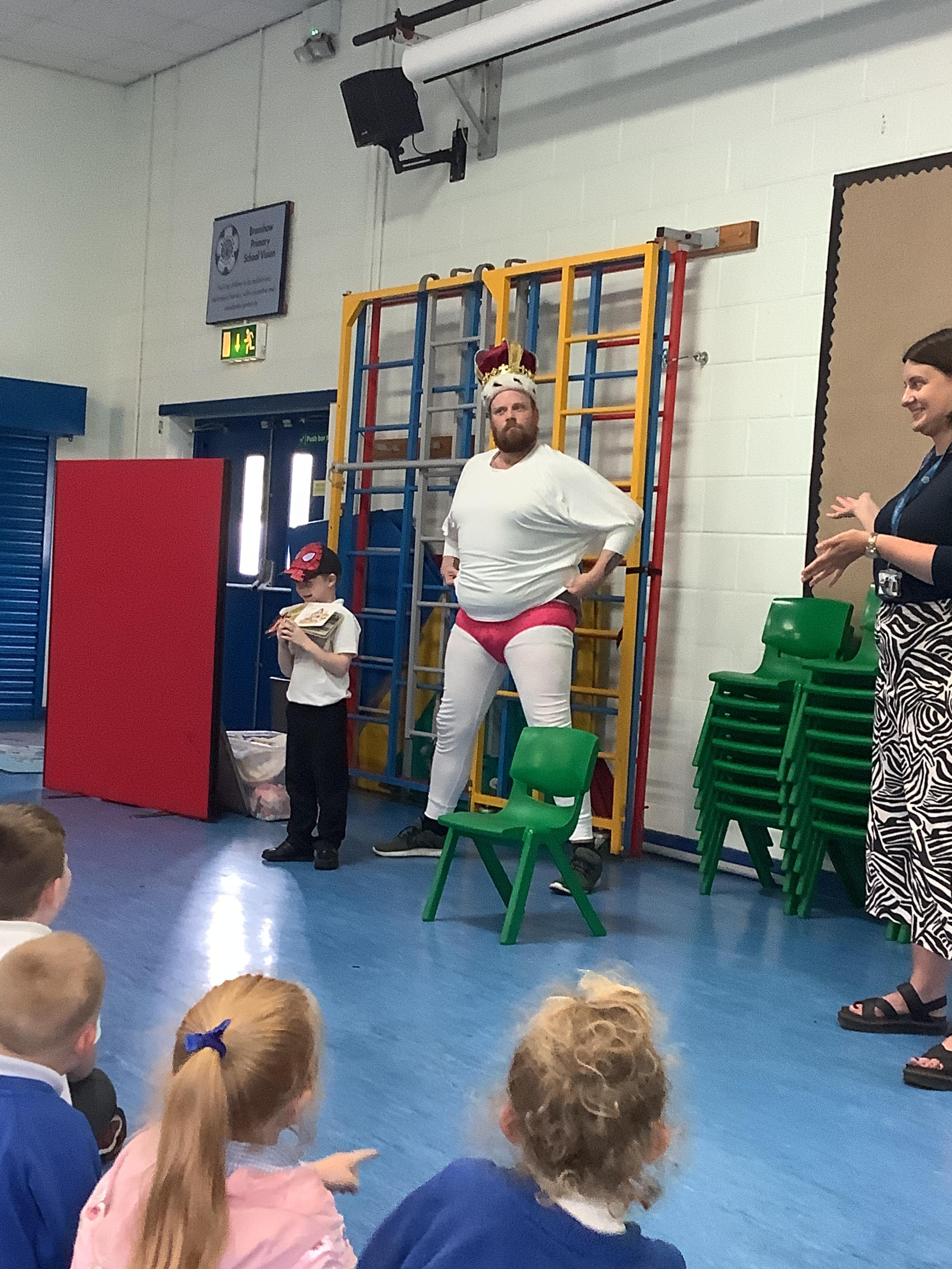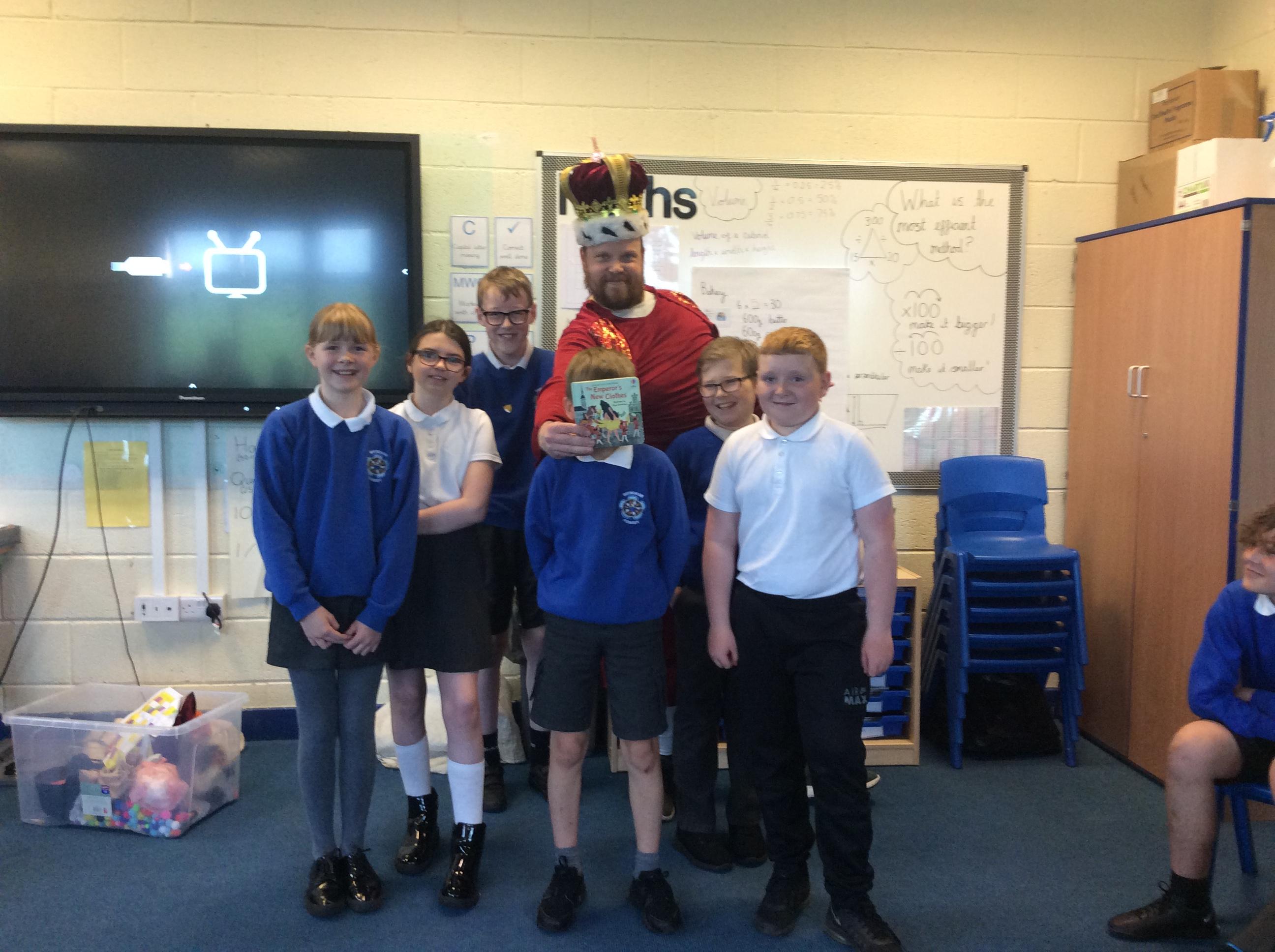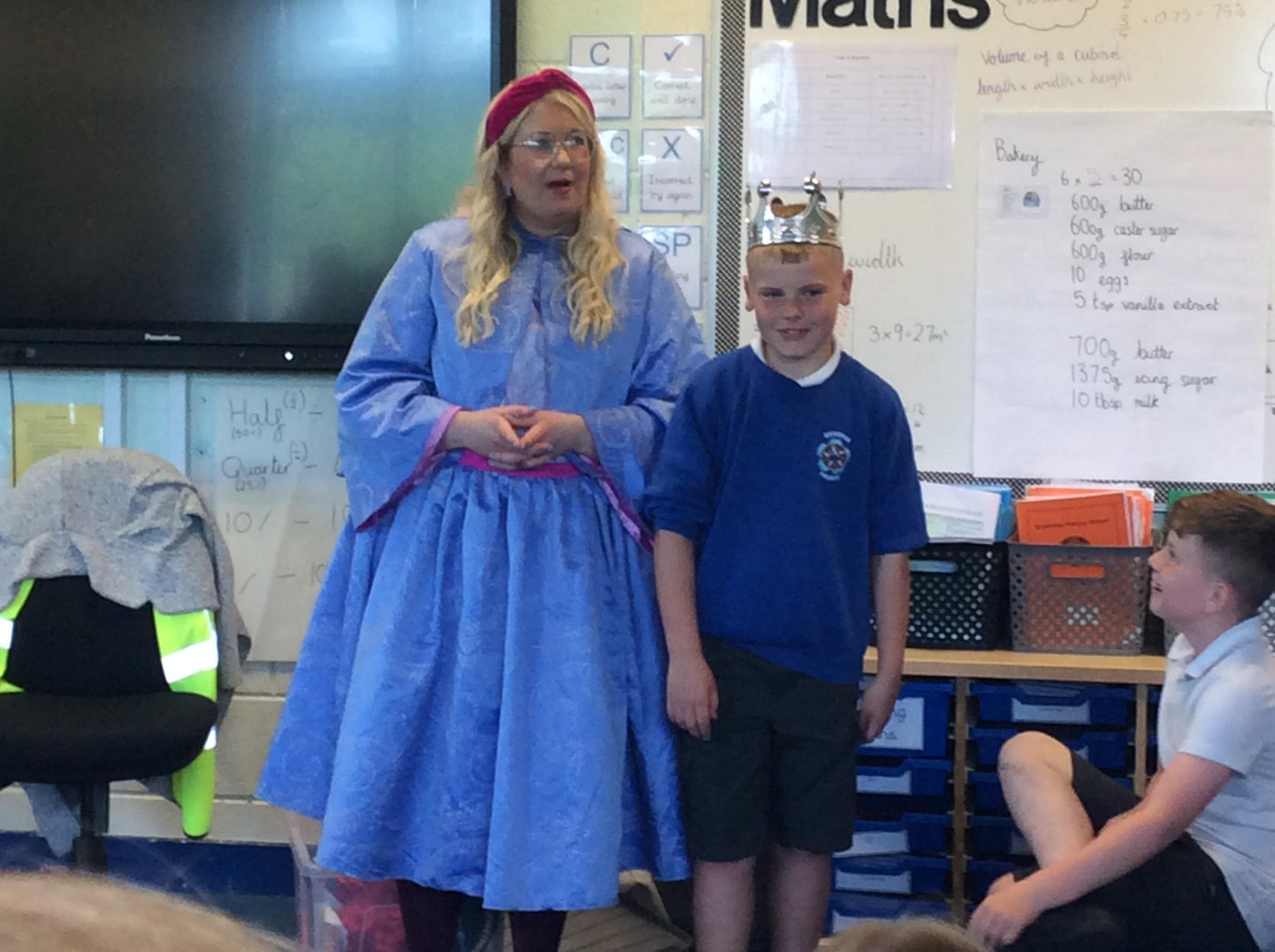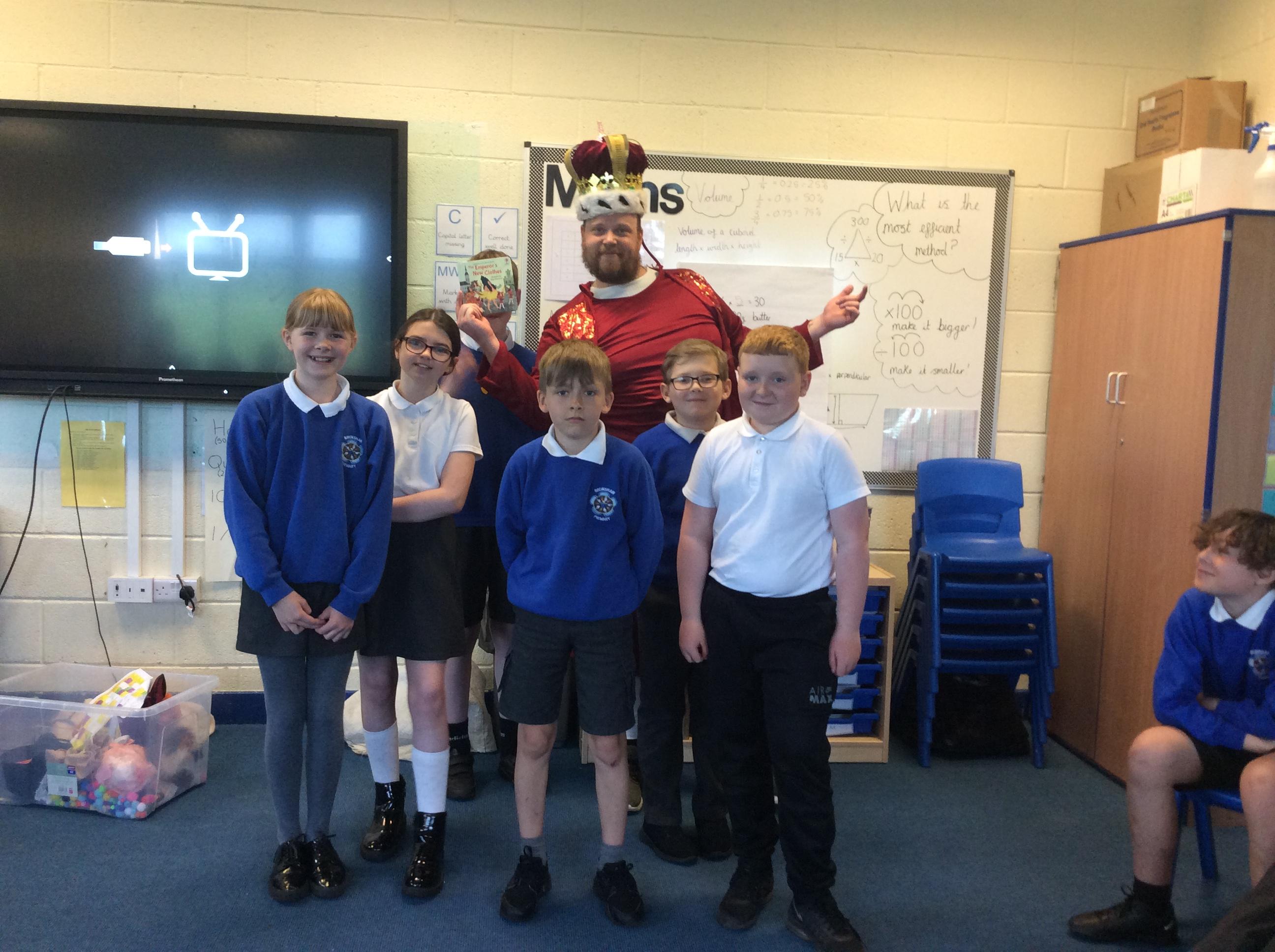 On Tuesday 23rd May, Brunshaw was taken over by fairy tale characters. We were visited by the Fairy Godmother, Rumplestiltskin, a very tired princess from the story The Princess and the Pea and a very funny Emperor - both with and without his new clothes.
