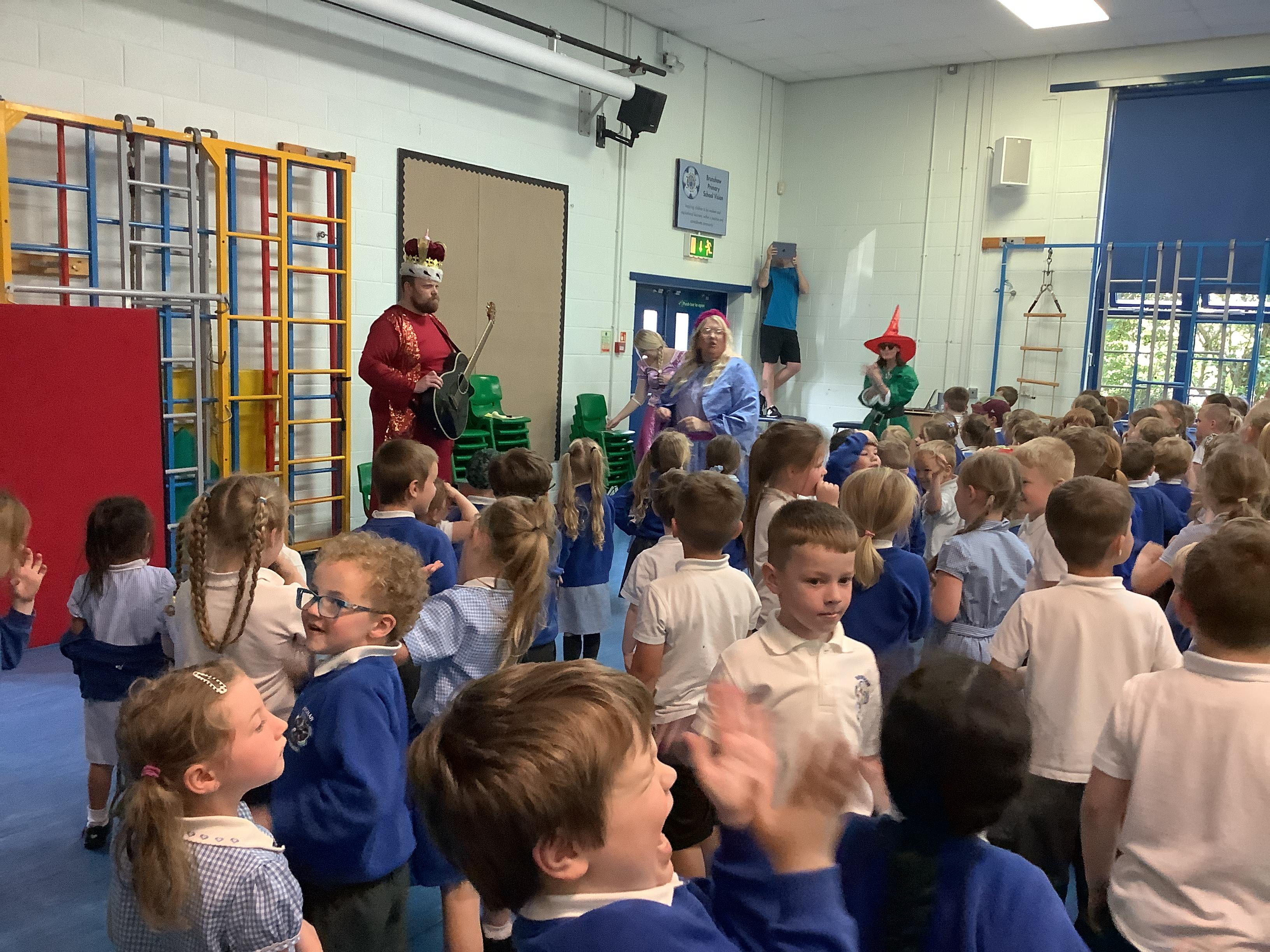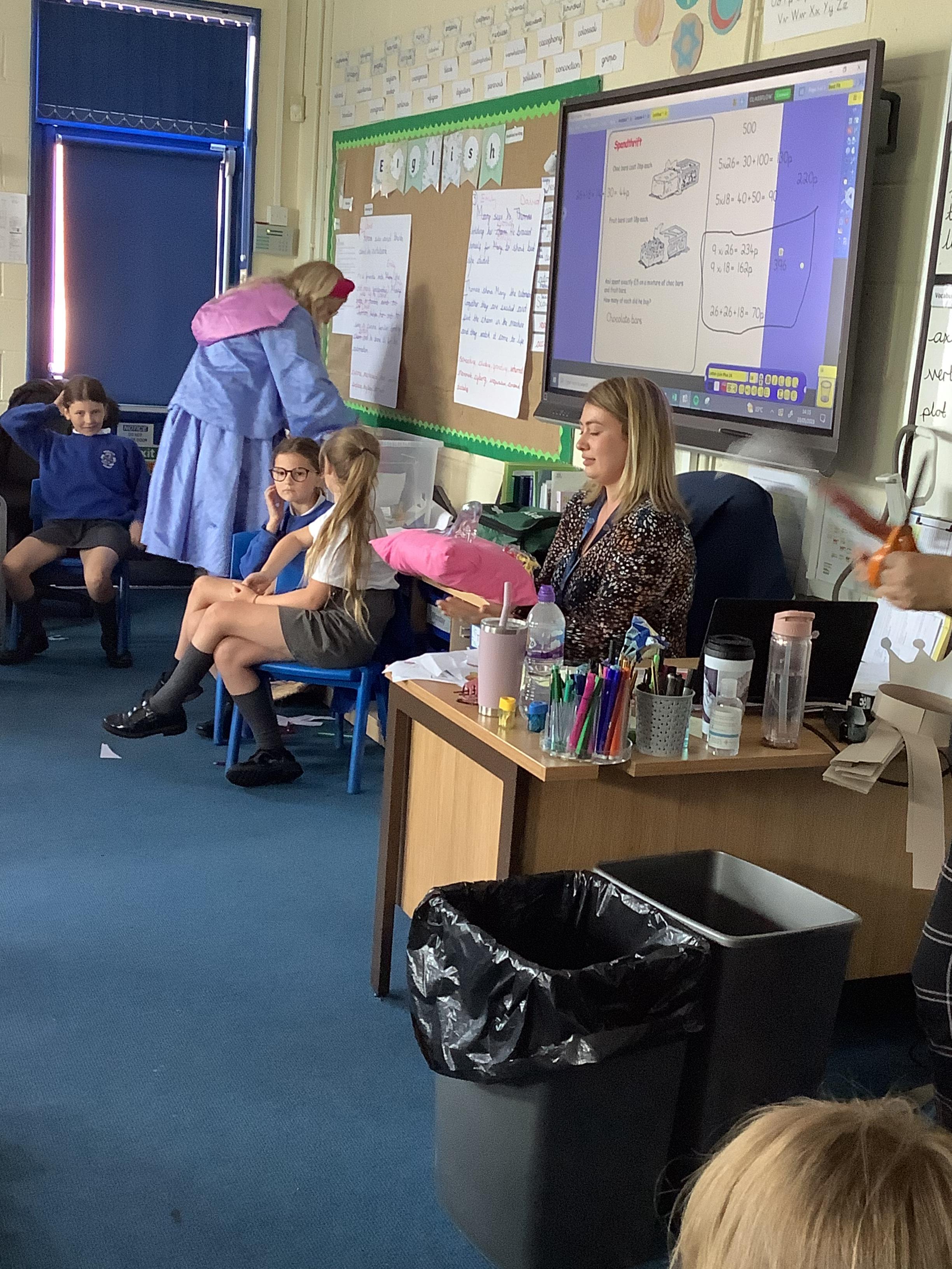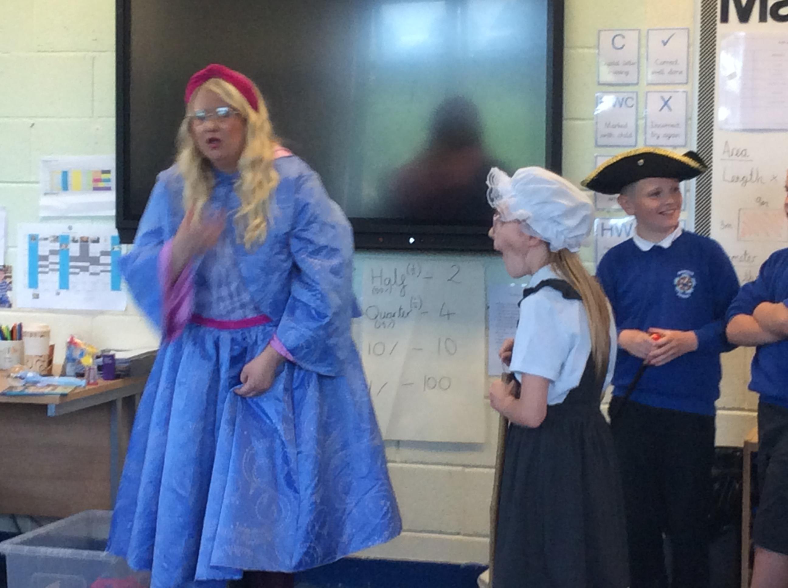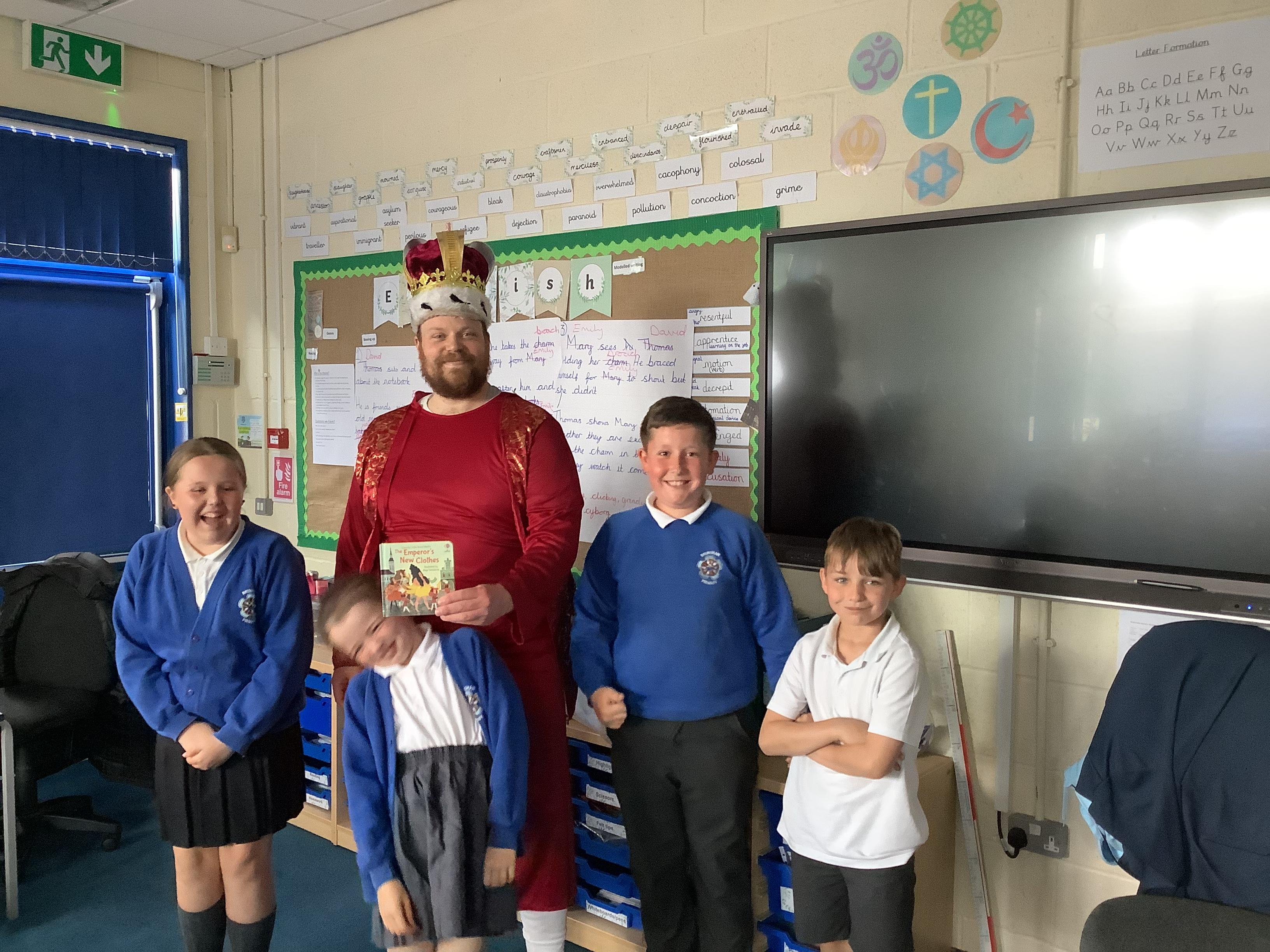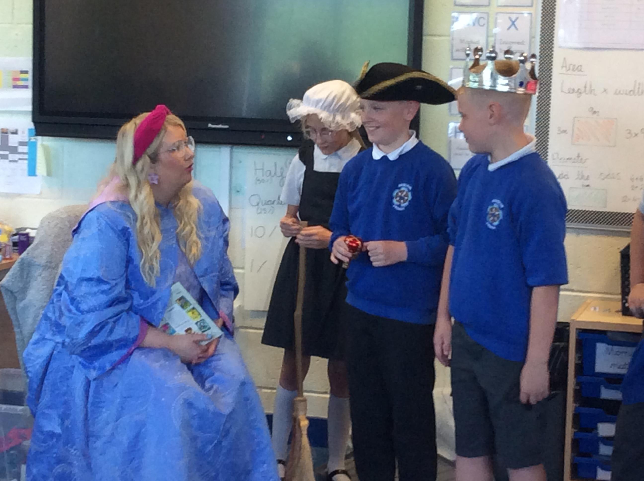 On Tuesday 23rd May, Brunshaw was taken over by fairy tale characters. We were visited by the Fairy Godmother, Rumplestiltskin, a very tired princess from the story The Princess and the Pea and a very funny Emperor - both with and without his new clothes.