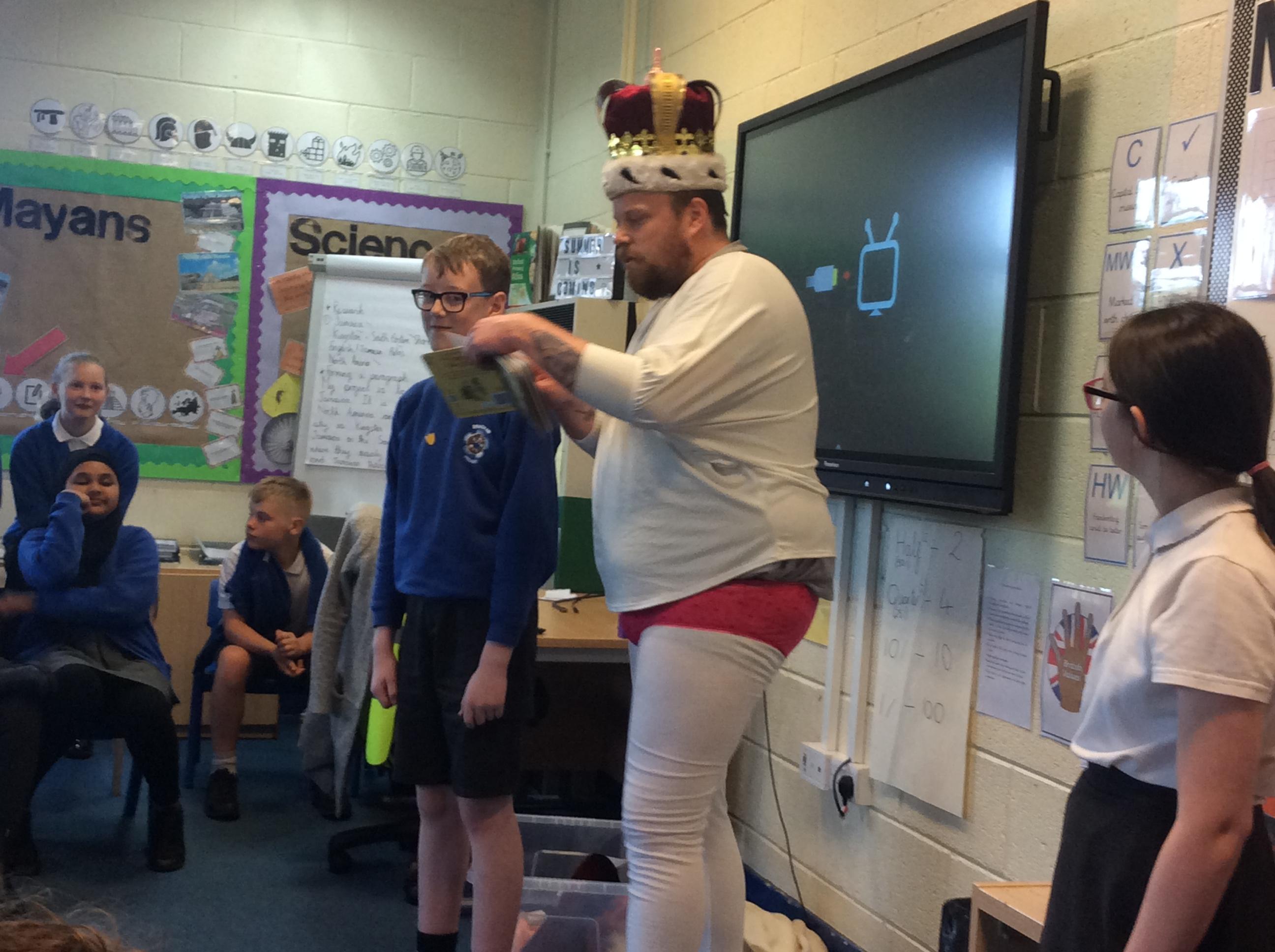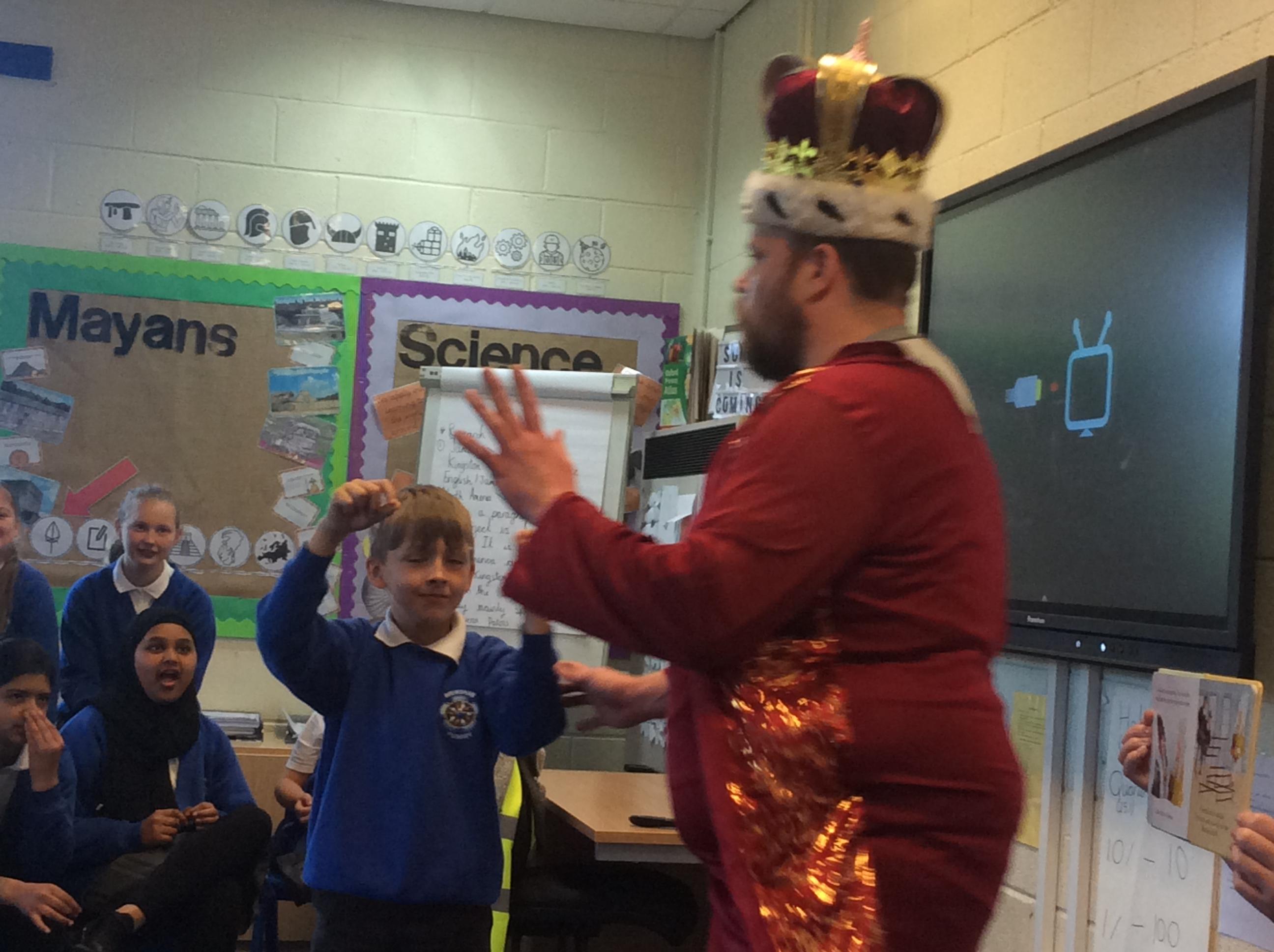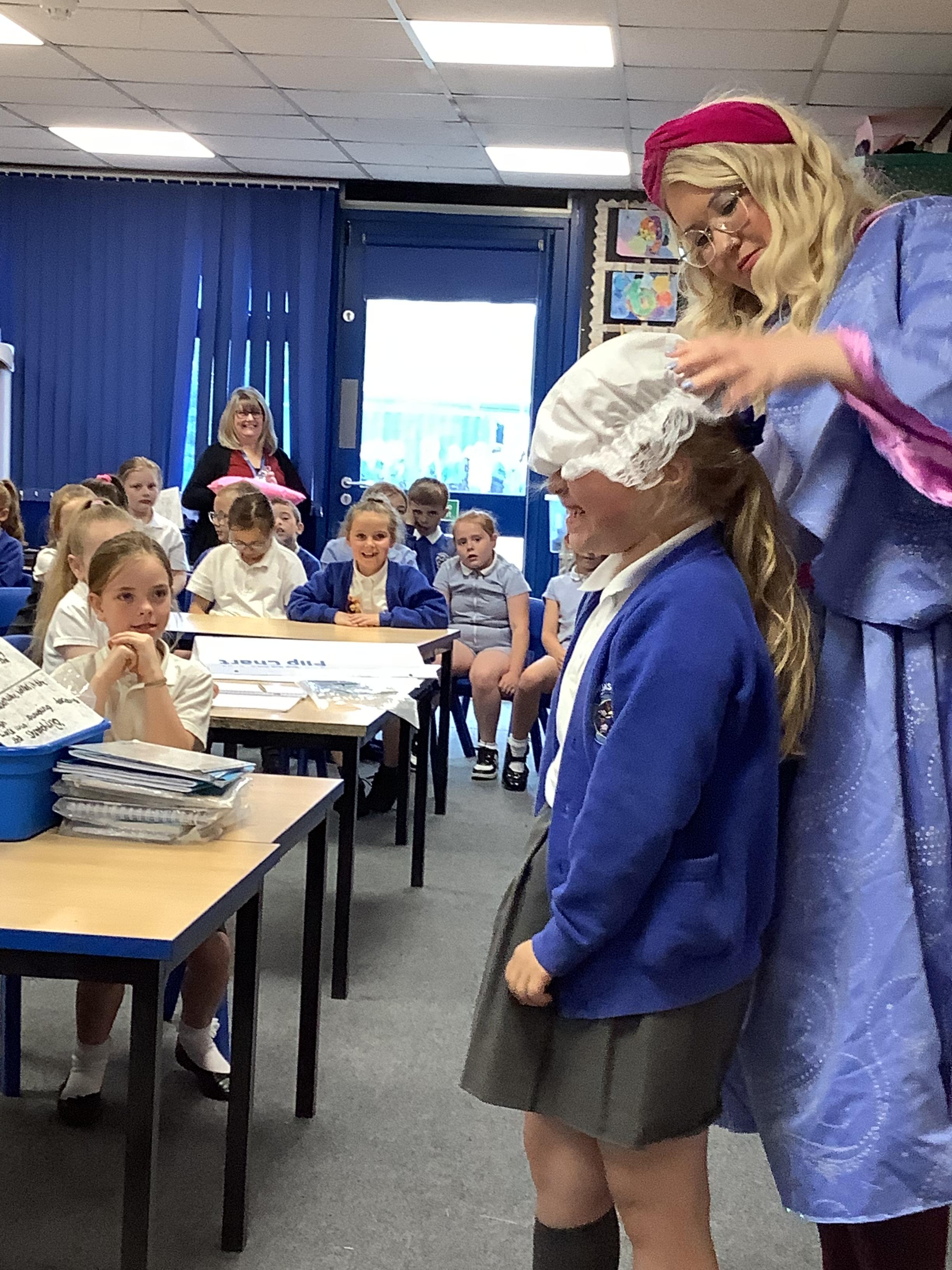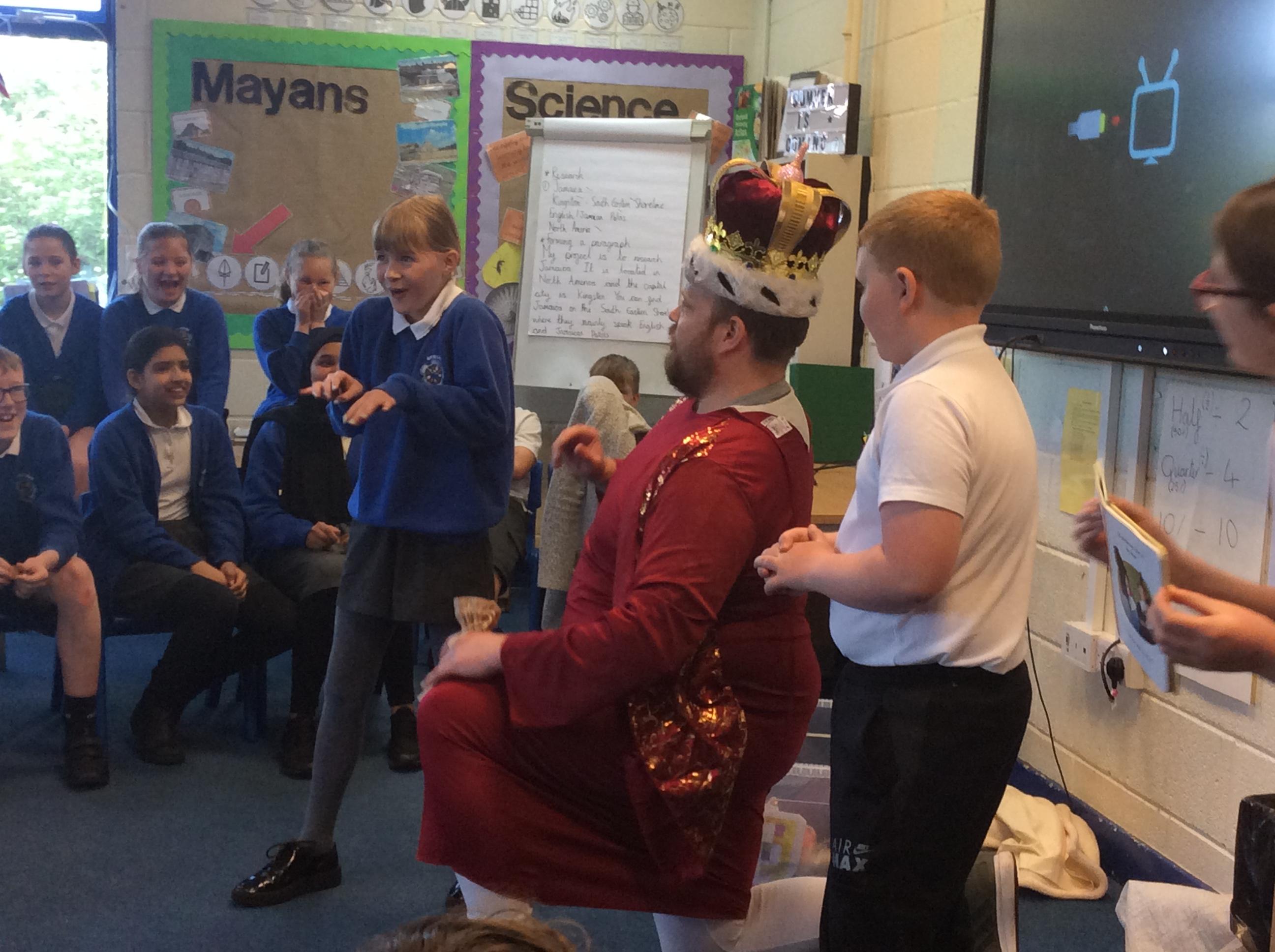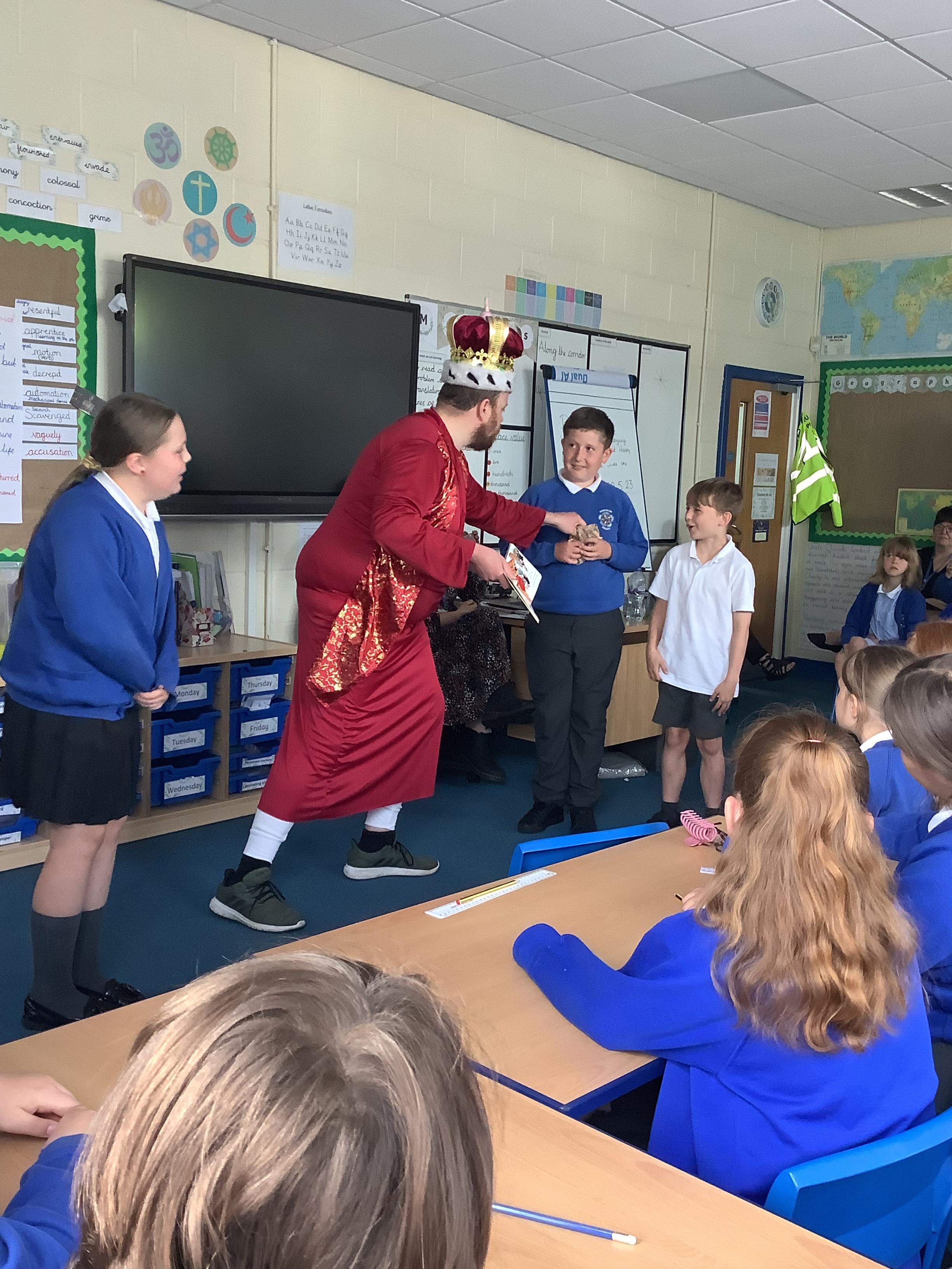 On Tuesday 23rd May, Brunshaw was taken over by fairy tale characters. We were visited by the Fairy Godmother, Rumplestiltskin, a very tired princess from the story The Princess and the Pea and a very funny Emperor - both with and without his new clothes.