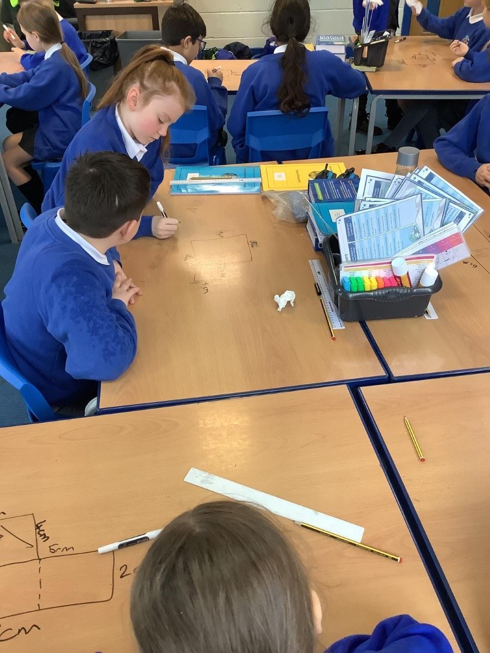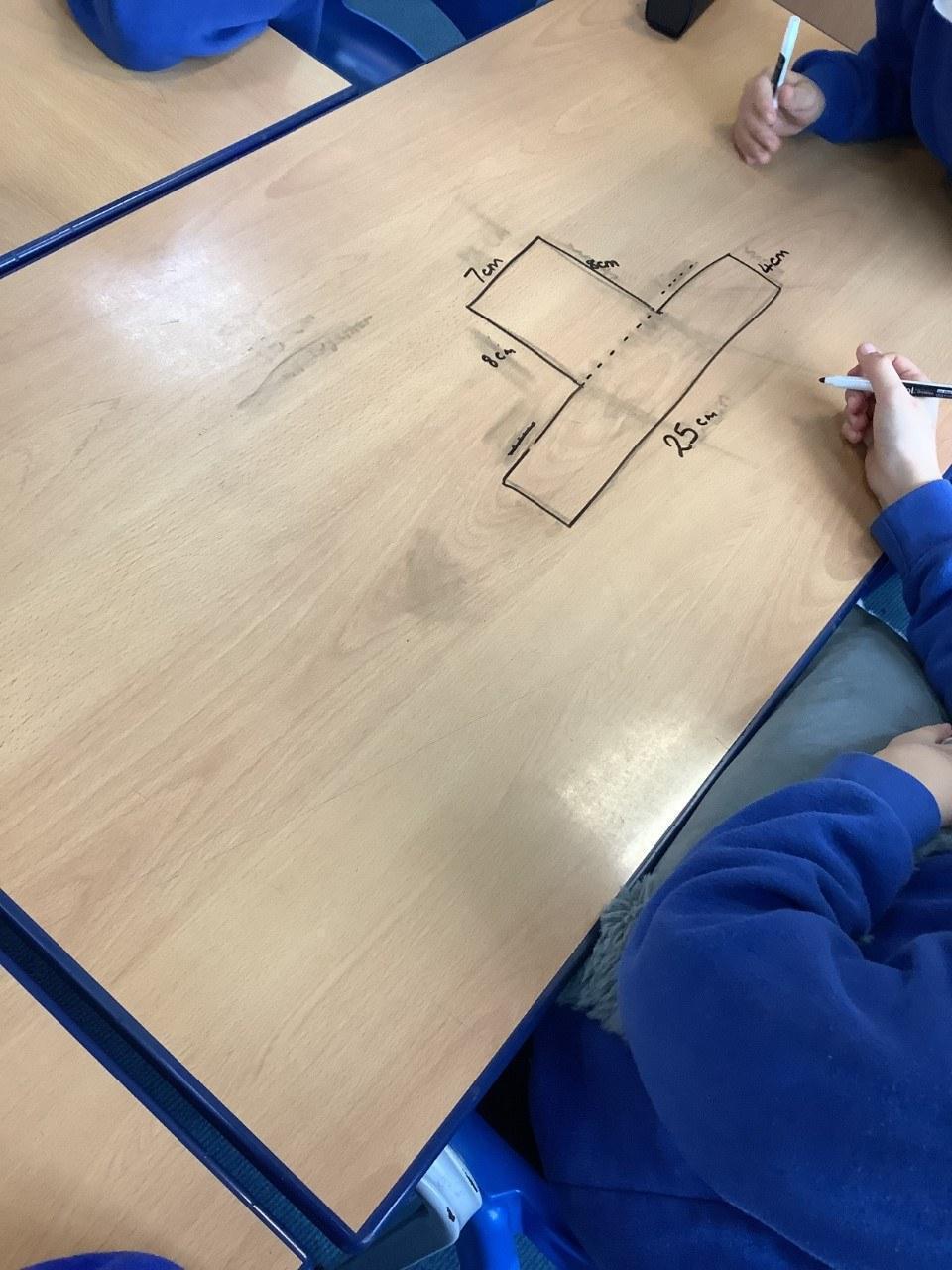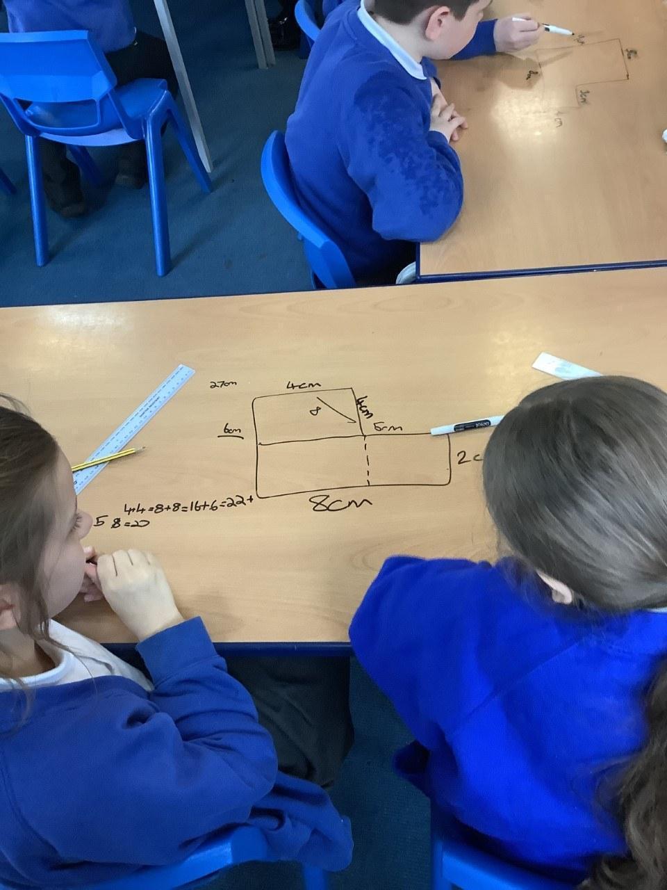 We have been looking at finding the perimeter of rectilinear shapes. To make it harder, we hid some of the measures to see if they could work it out.