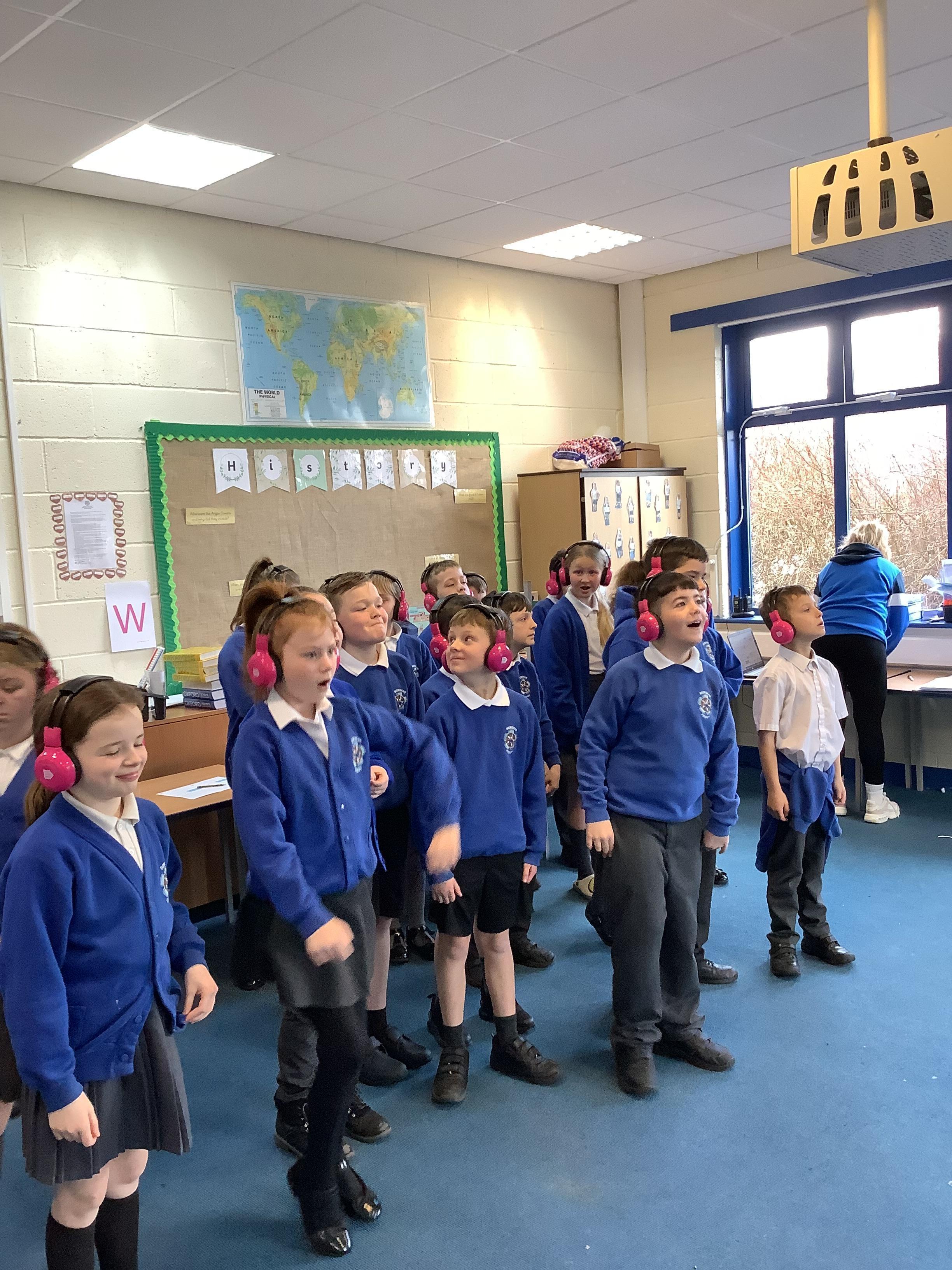 We then went out on to the yard and hunted for clues (solving tricky maths problems) to find the secret song title.