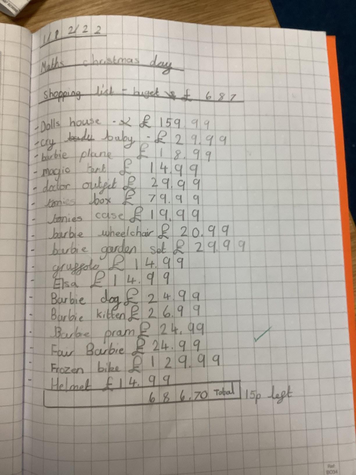Our first activity, we were given information about different children and their likes and dislikes. We were then given a budget and had to put together a list of presents, using the Smyths catalogue.