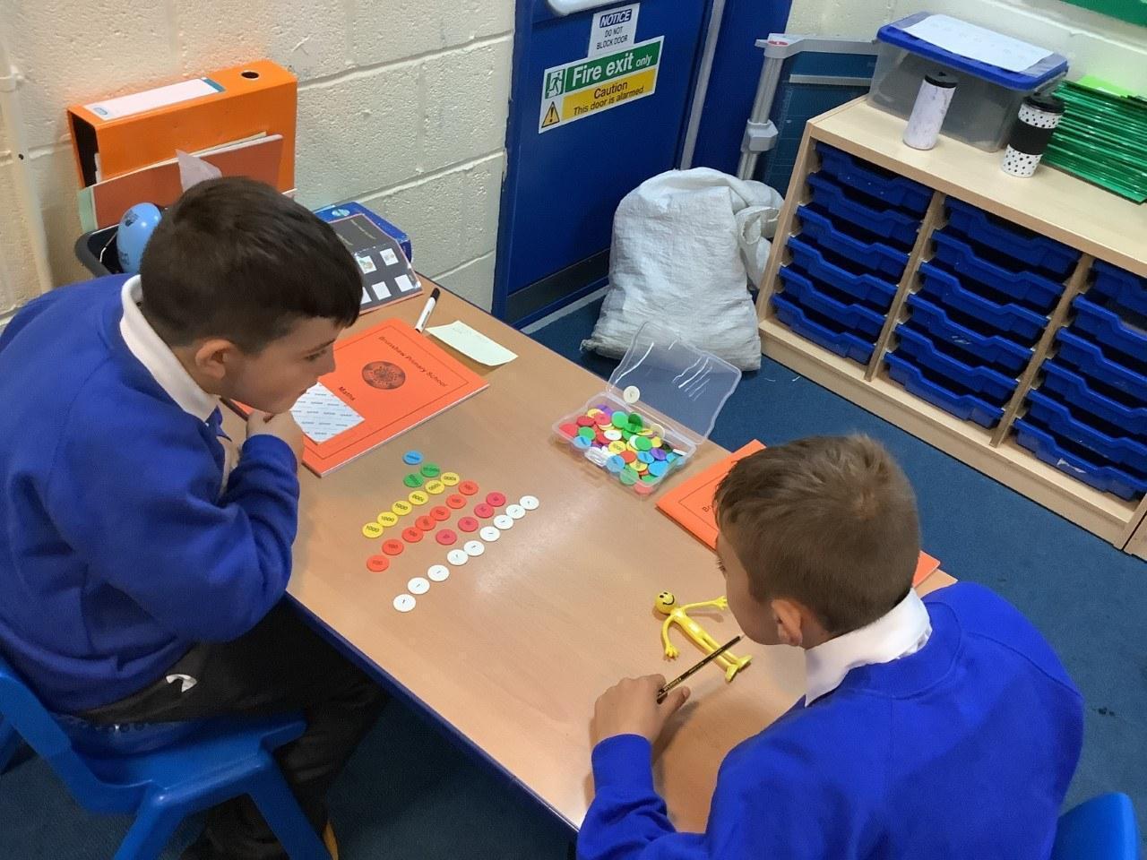 This week we started looking at higher value numbers. We used base 10 and place value counters to help us visualise the numbers and physically move them around.