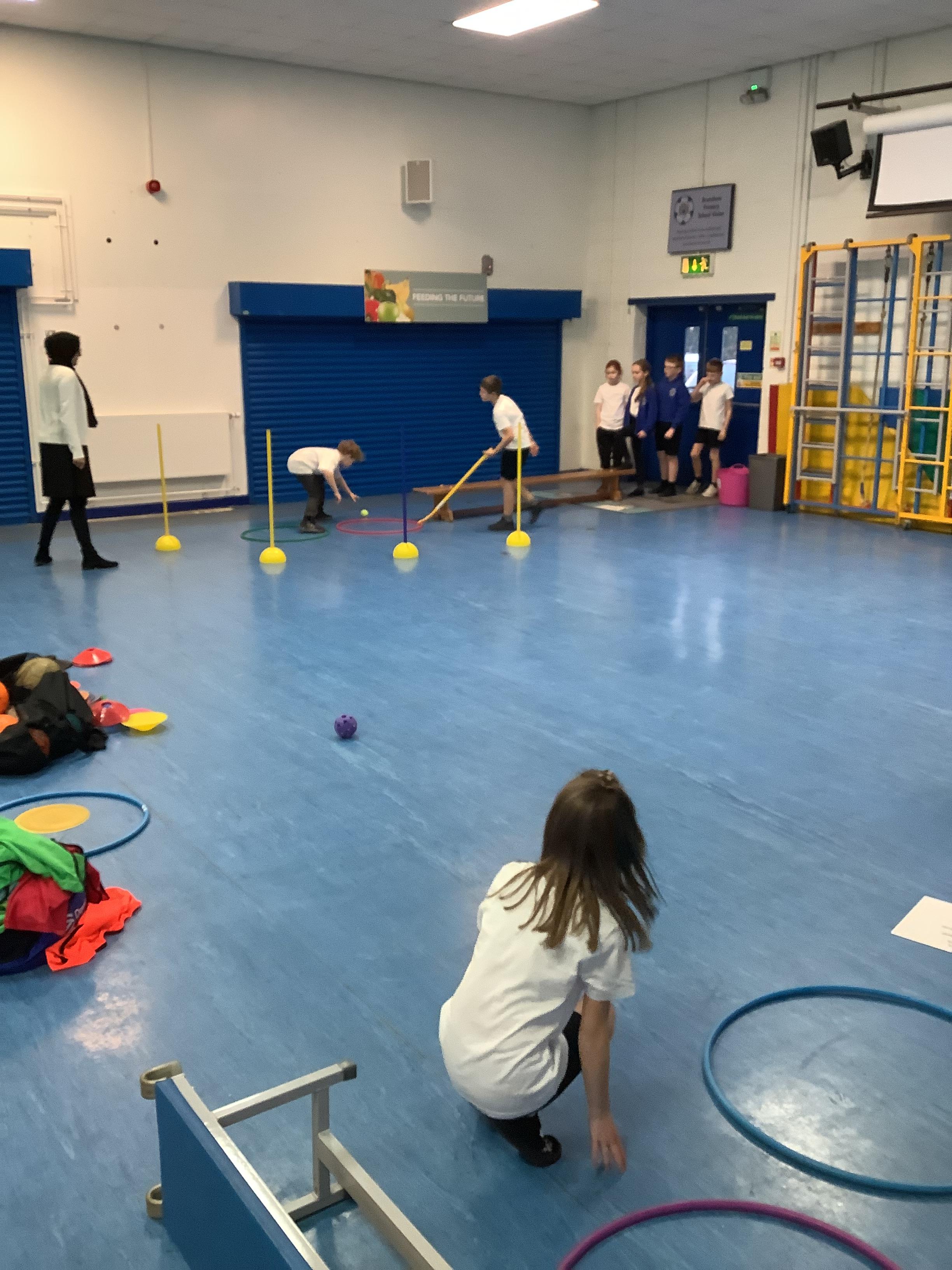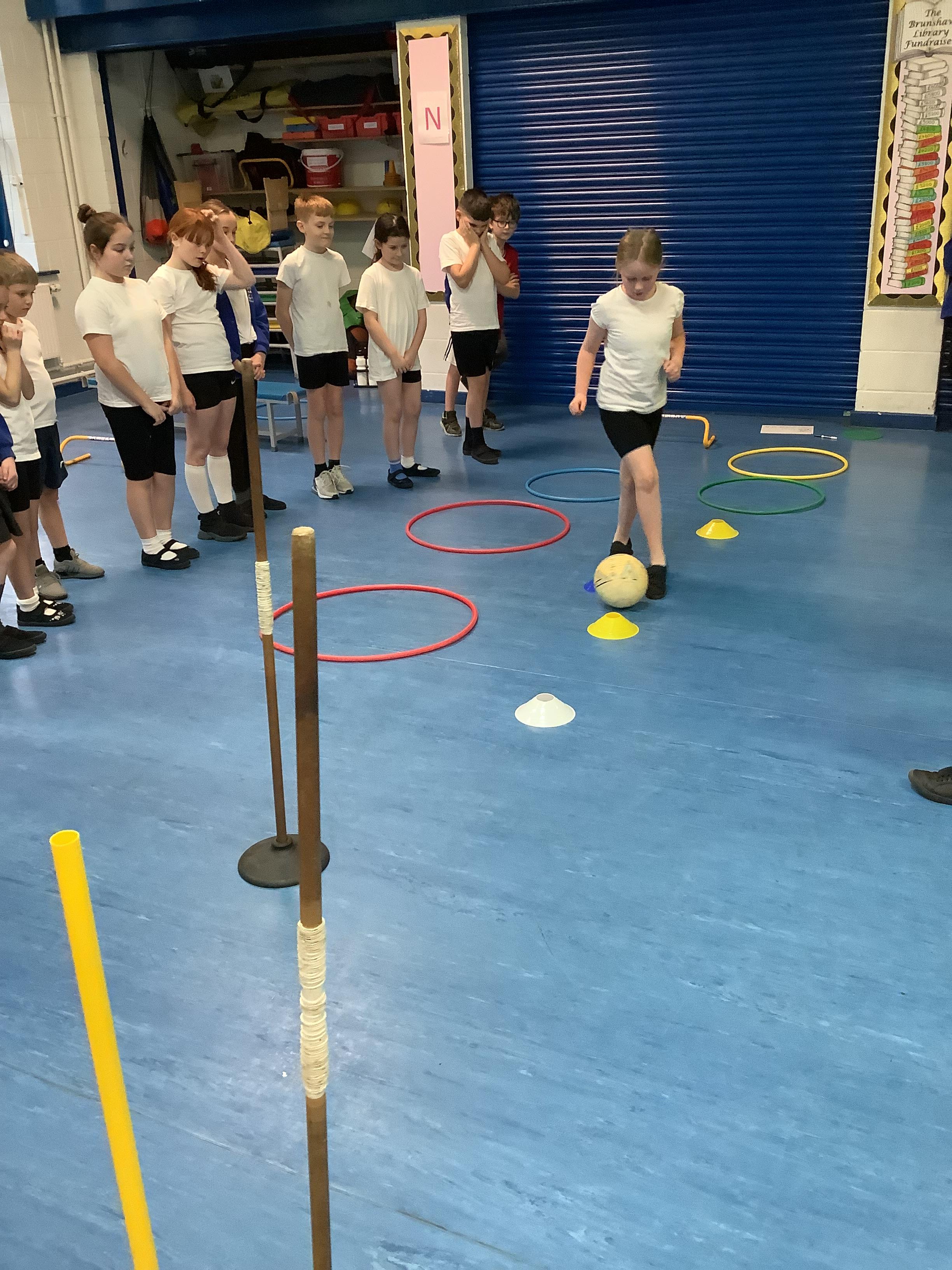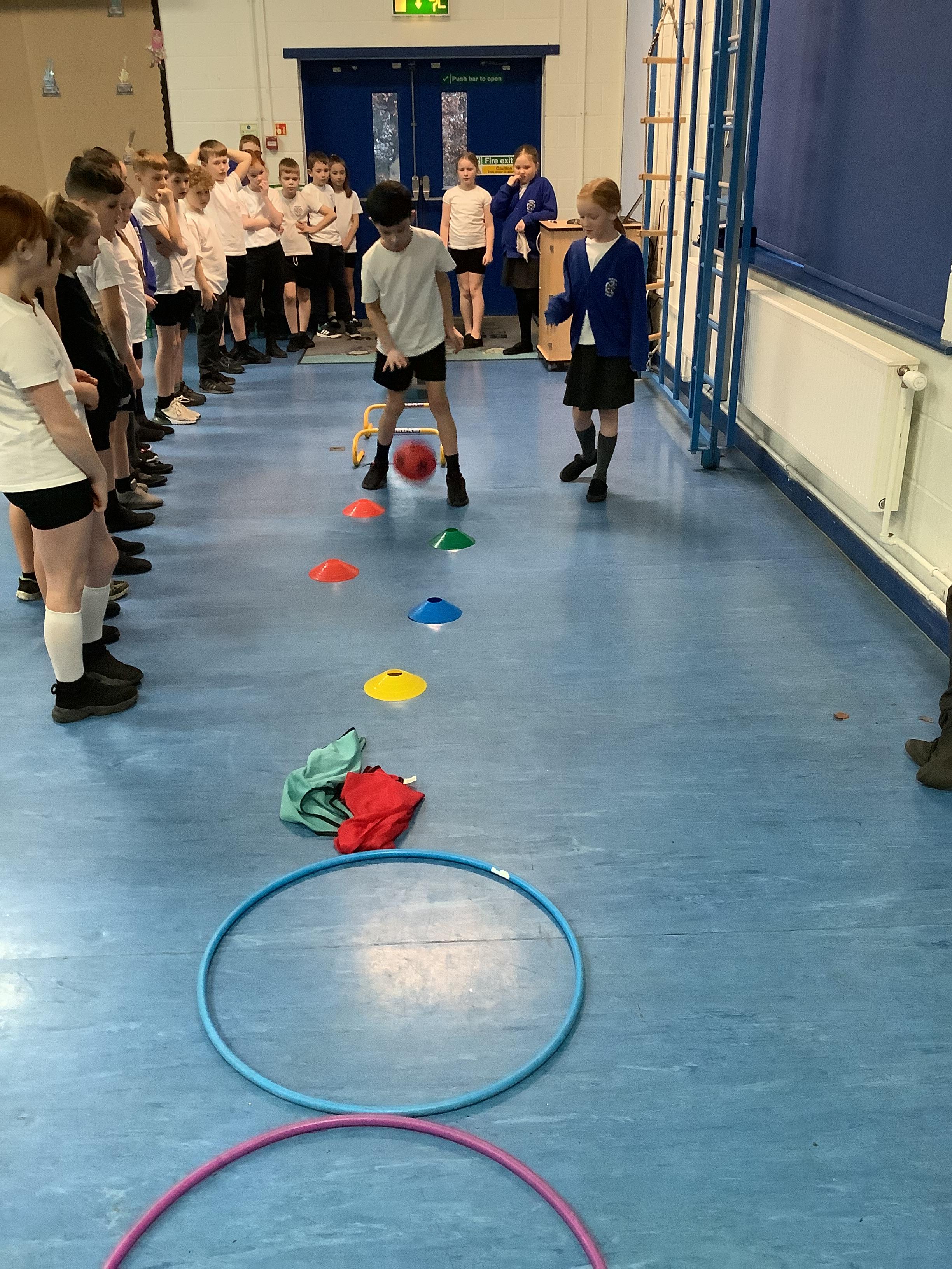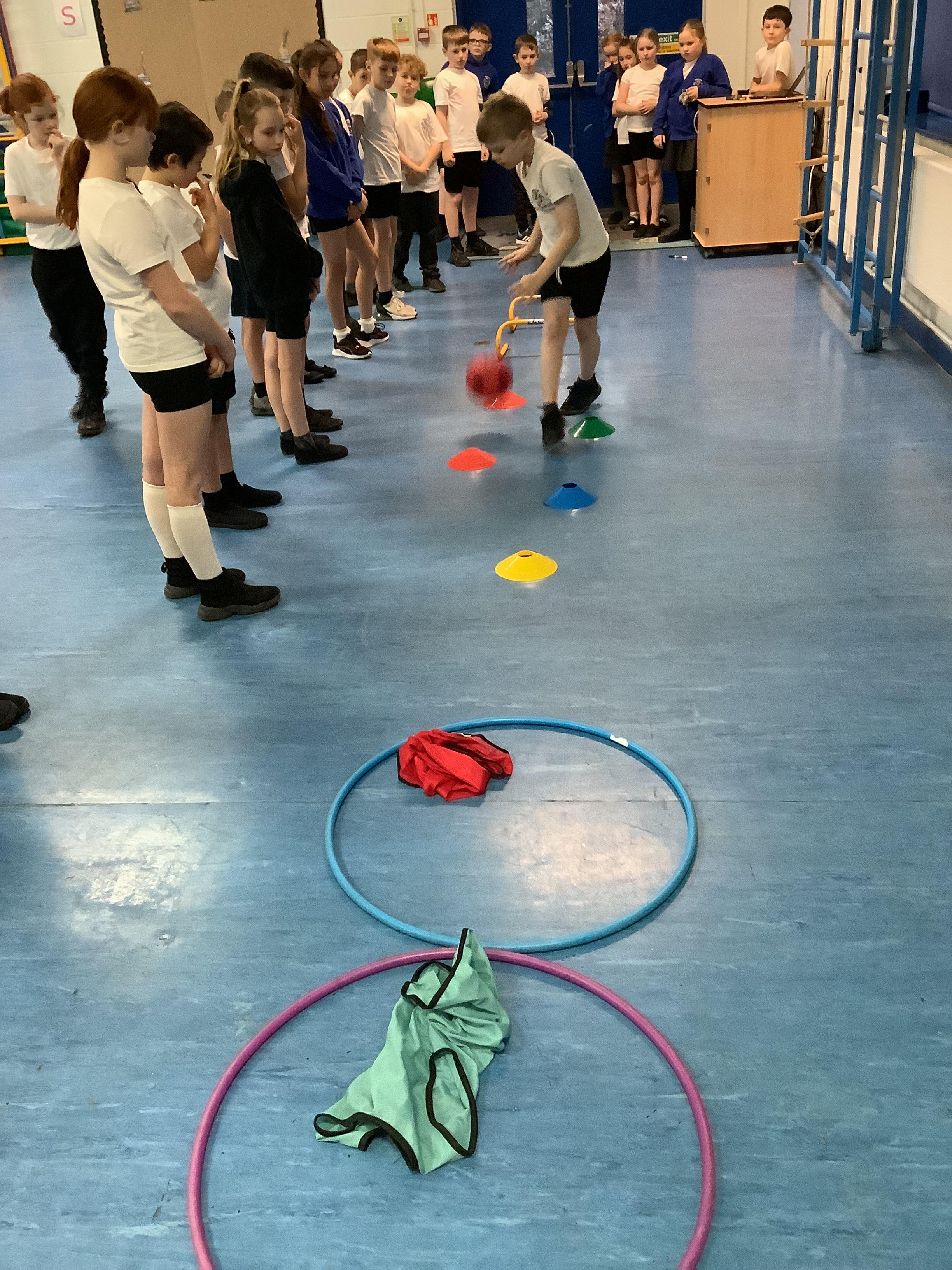 “My team had to use their balancing skills to walk over a bench and then we used our jumping skills to jump over two hurdles. Finally, after we finished by dribbling with a basketball, we threw our bibs into hoops. I really enjoyed this lesson because we were able to use our creativity.” Dylan, Chestnut Class