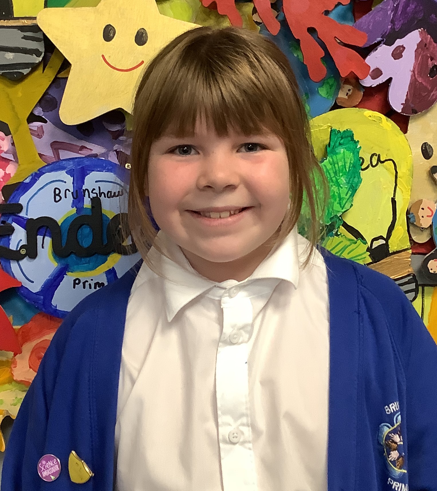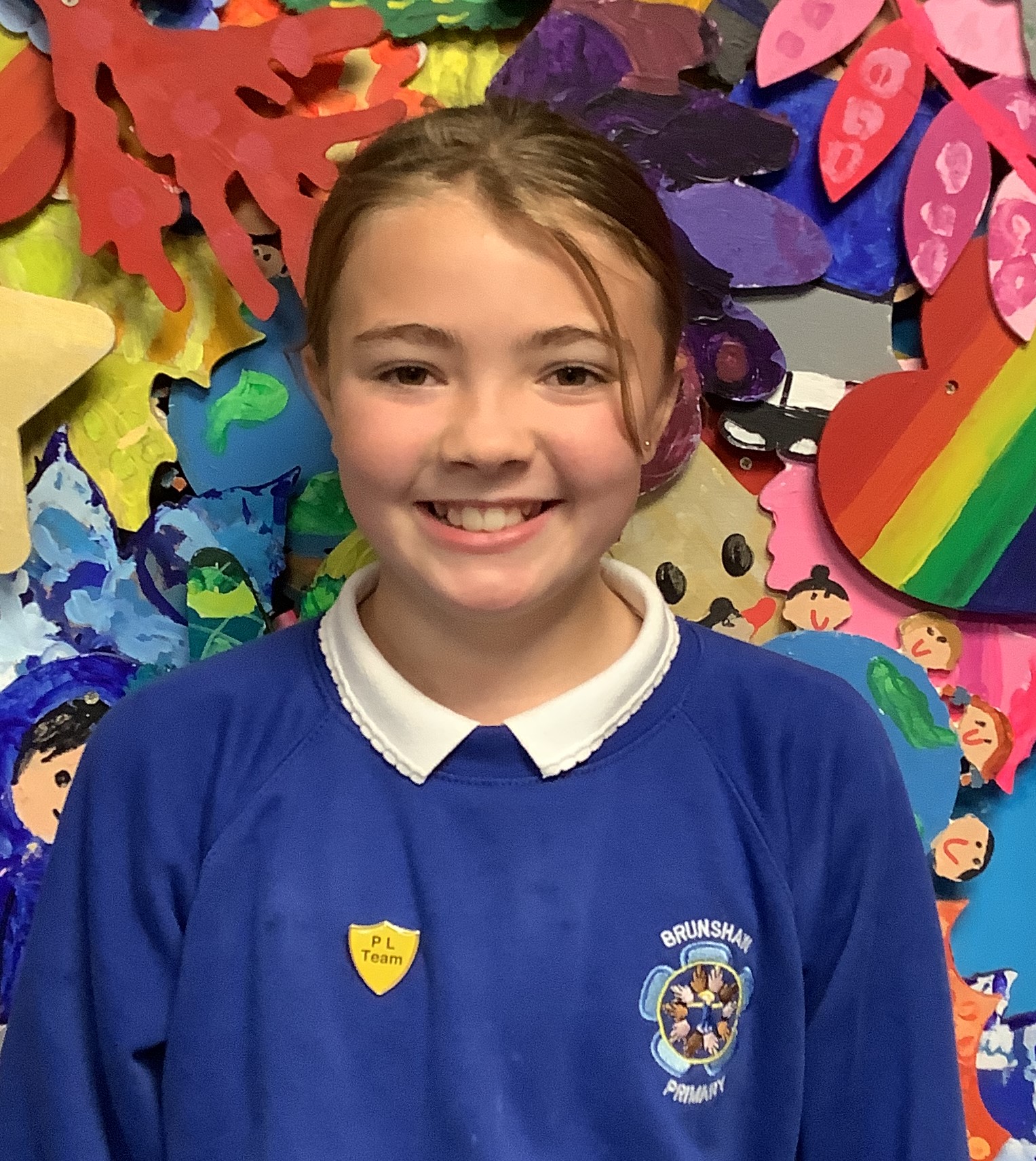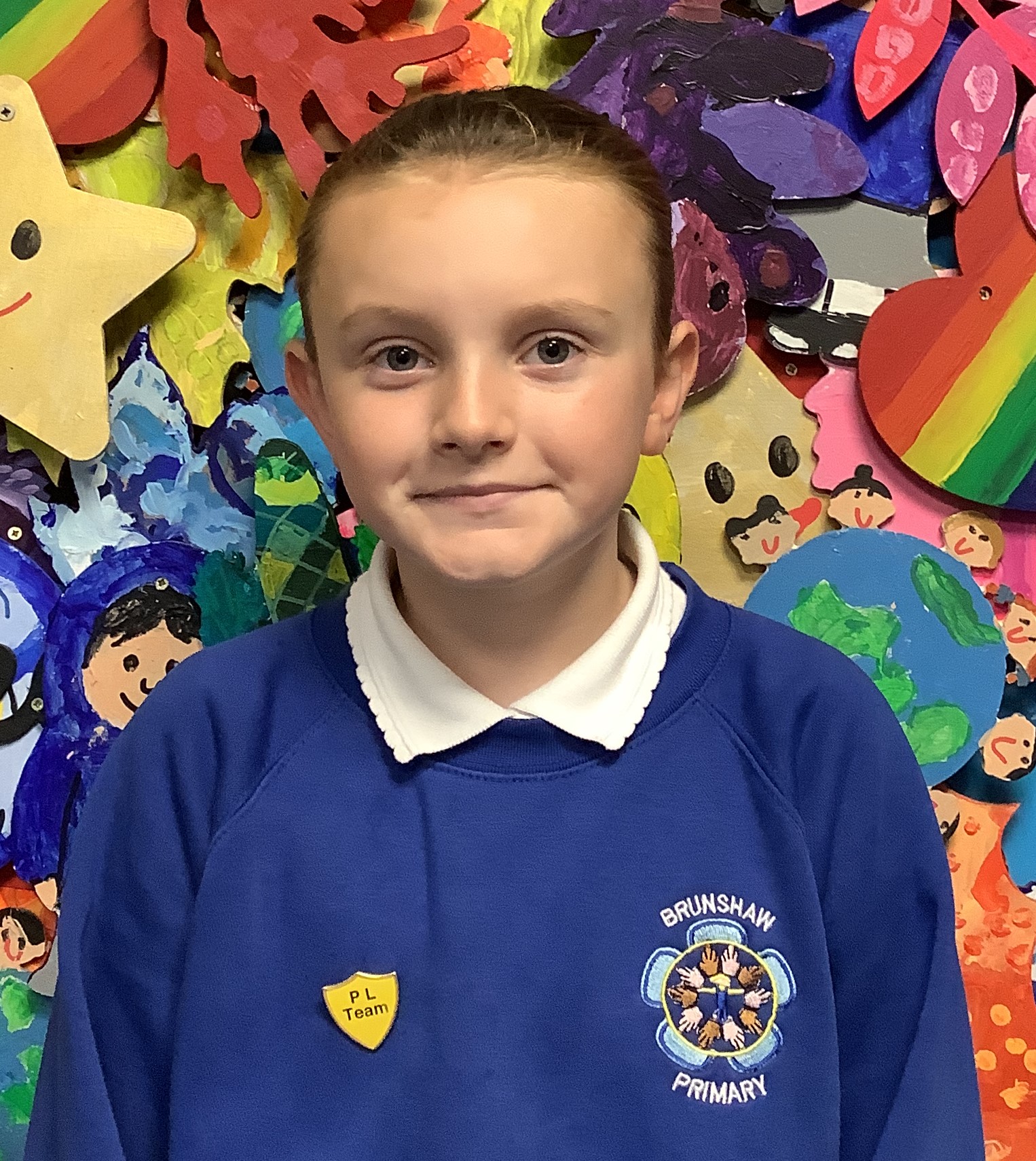 Hi, I'm Heidi, and I am also in Hawthorn Class. I like being creative and thinking of ideas for people. I love welcoming the younger children and welcoming them to school. I am kind, honest, respectful and never hurt anyone's feelings. I love dancing, playing football and my favourite subject is Art and DT. I will happily play with anyone and am always joyful. I am proud to be a part of the Brunshaw Pupil Leadership Team.