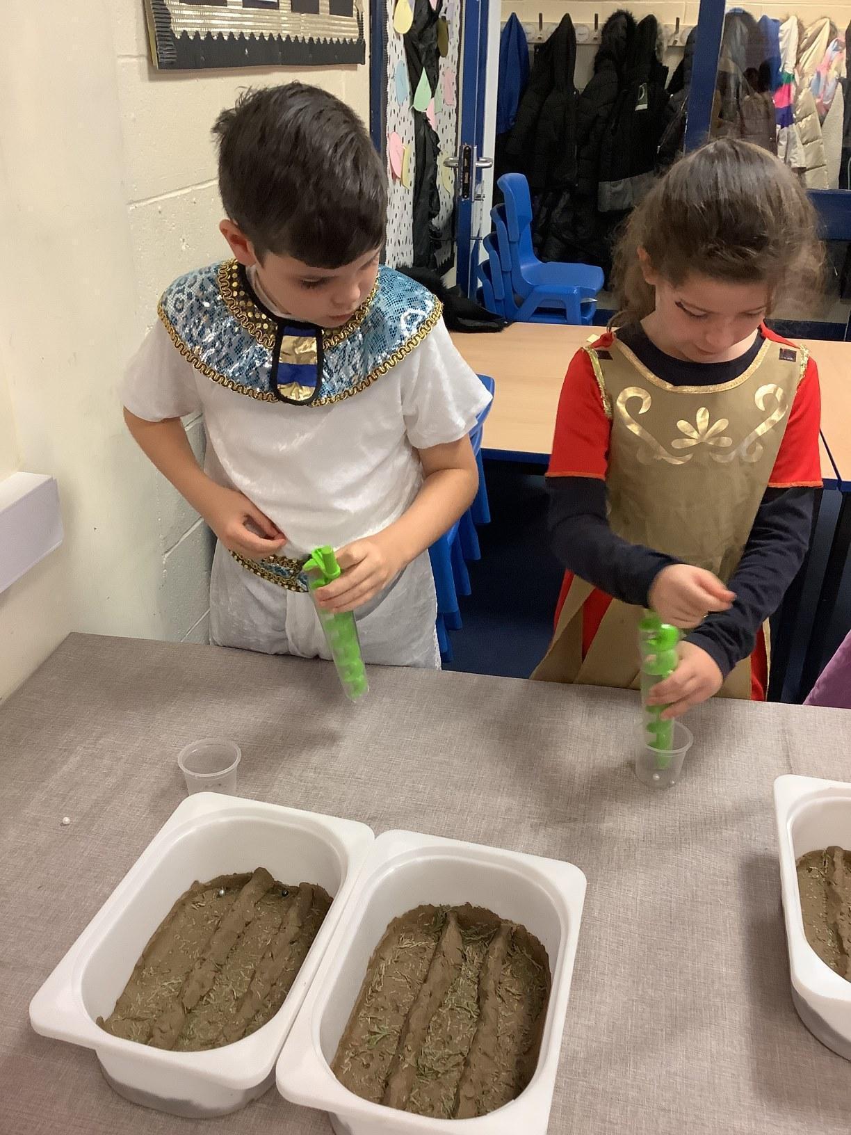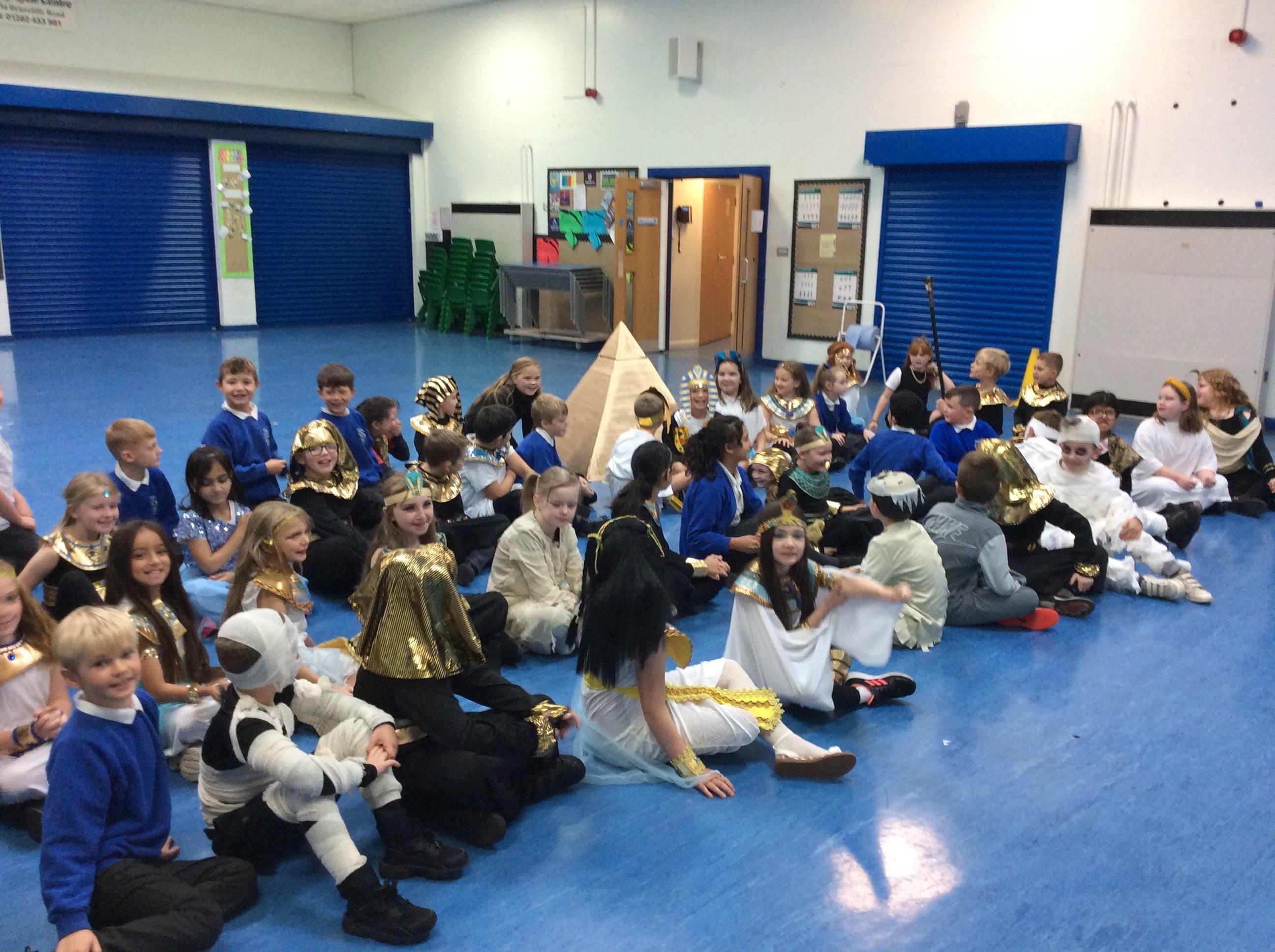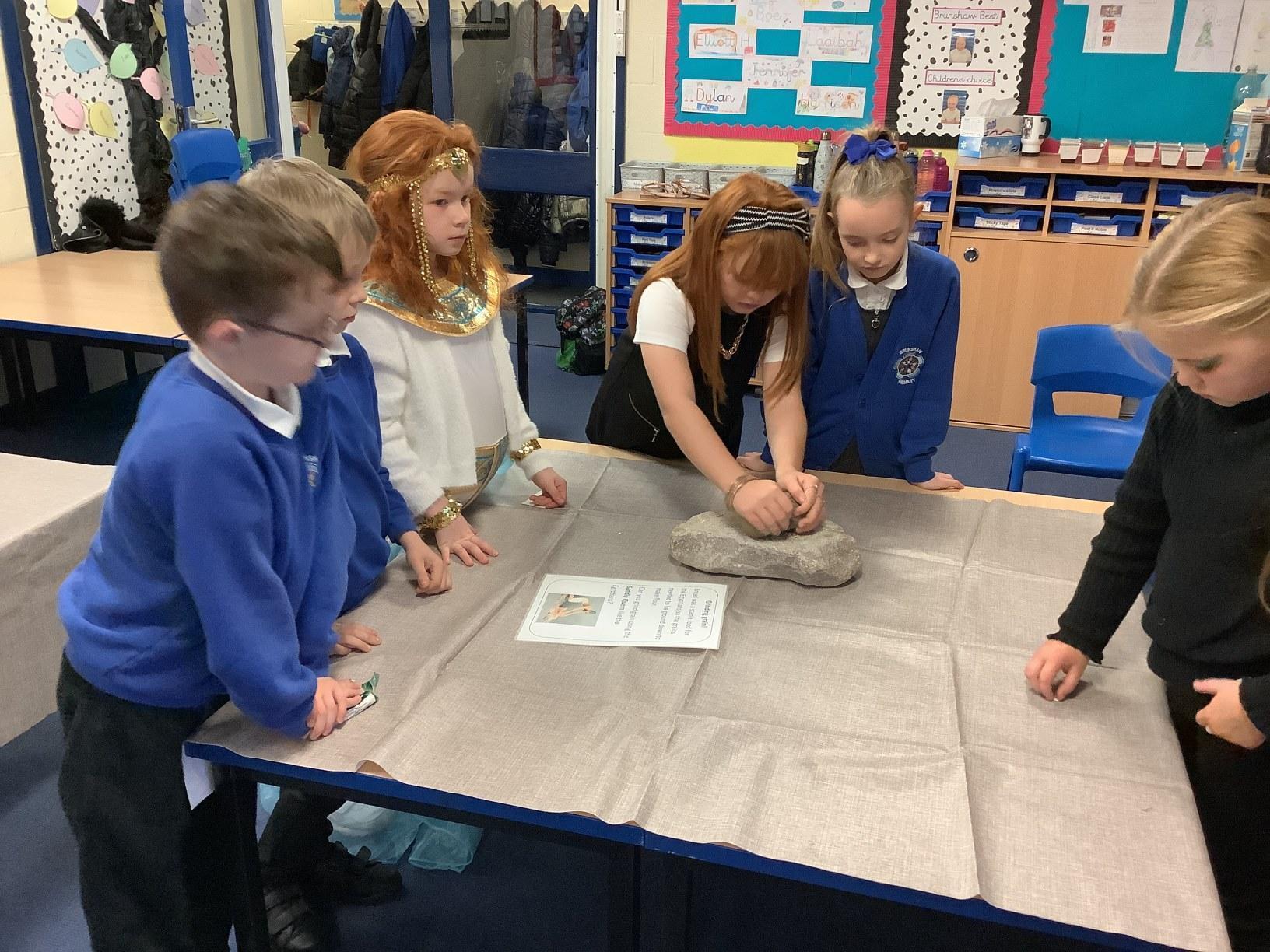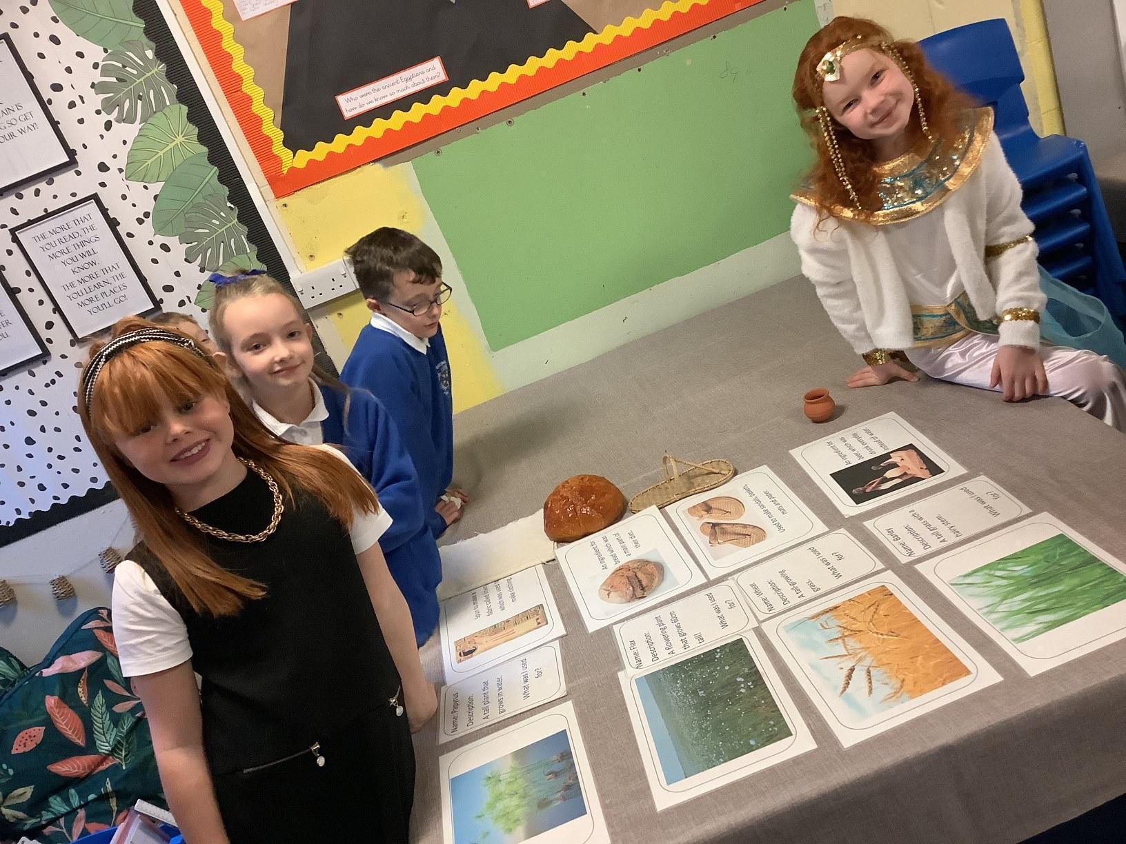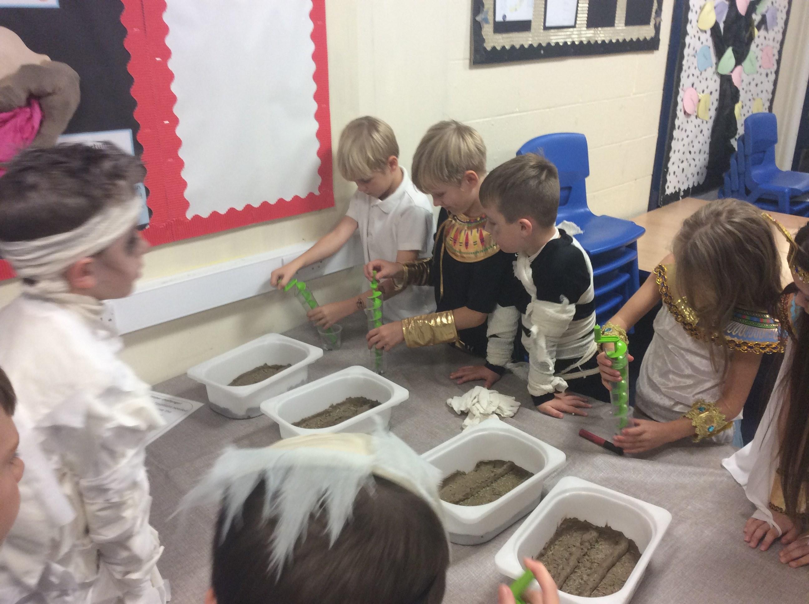 Year four had an amazing Ancient Egyptian theme day on Wednesday! We looked at the different foods that they ate, and we even made our own flour. Then, we looked at lots of different artifacts that told us a lot of information about the Ancient Egyptians. Finally, we had a go at trading lots of different goods with other countries.
