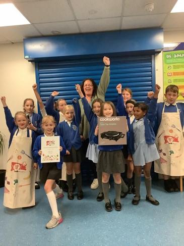 We have also received our gifts for completing our foundation stage, we have received 2 table top hotplates, aprons which can be used in our cooking clubs and lessons and a beautiful certificate which will be show cased in our cabinet.