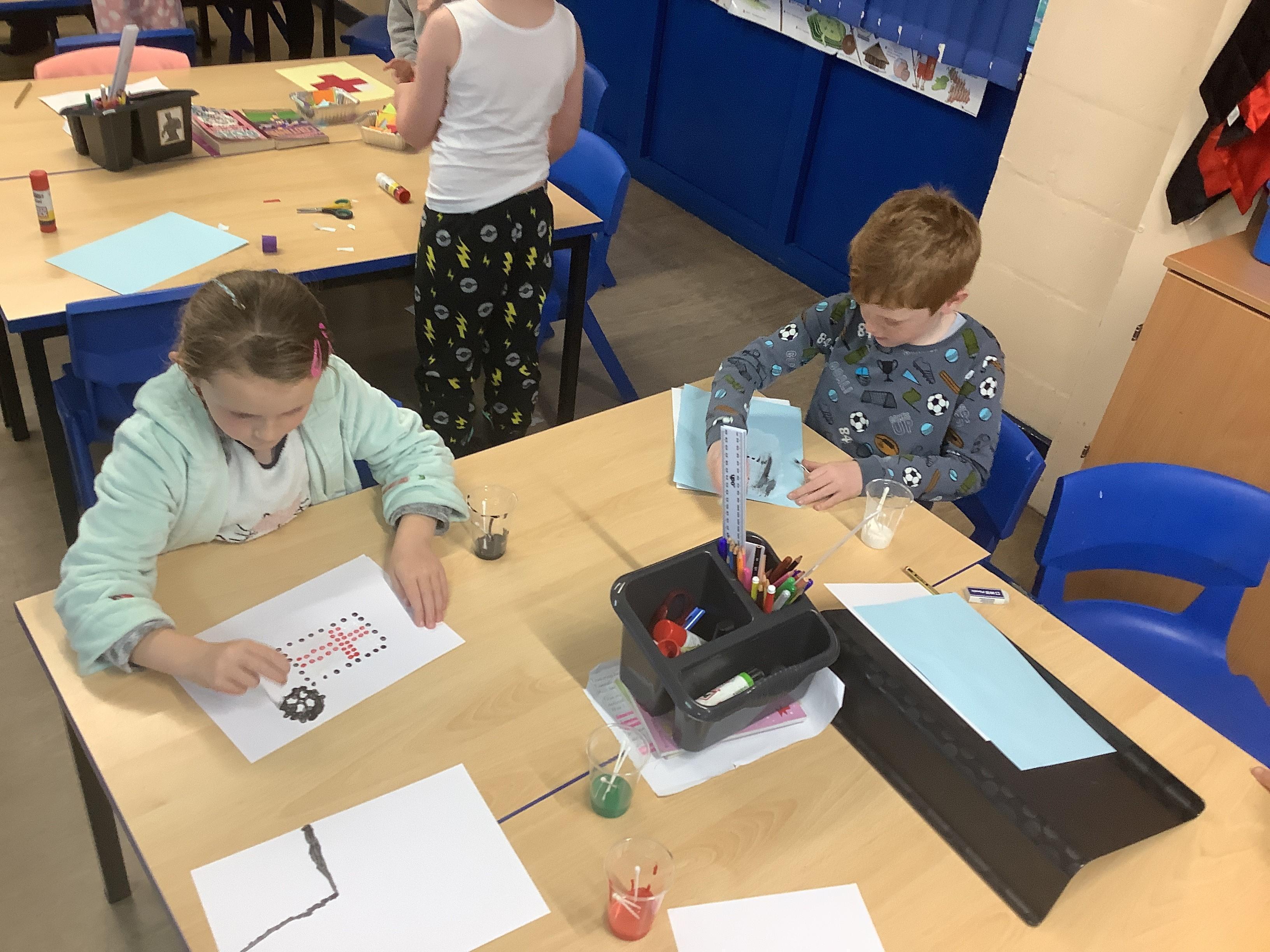 As their adopted World Cup teram, Holly Class were researching Switzerland and the artist Paul Klee, they then recreated their own pictures with colour blocking and pointillism.