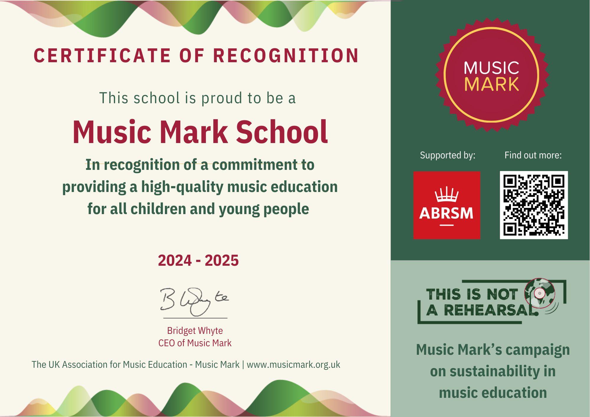 We are delighted to announce that Brunshaw is now a Music Mark School for the academic year 2024 – 2025. Music mark are an organisation, advocating for excellent musical learning both in and out of school.