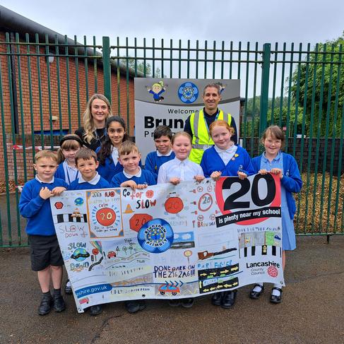 The school council met with Danny Hoyle a road safety officer from Lancashire county council to discuss how we can keep safe on the roads around school. The school council hosted a road safety poster competition. The winning posters were printed on a banner and hung on our school gates.