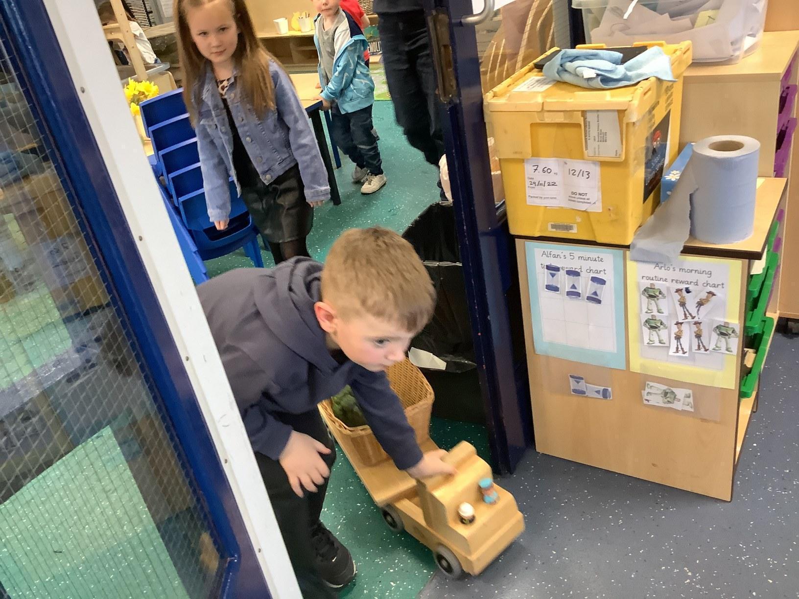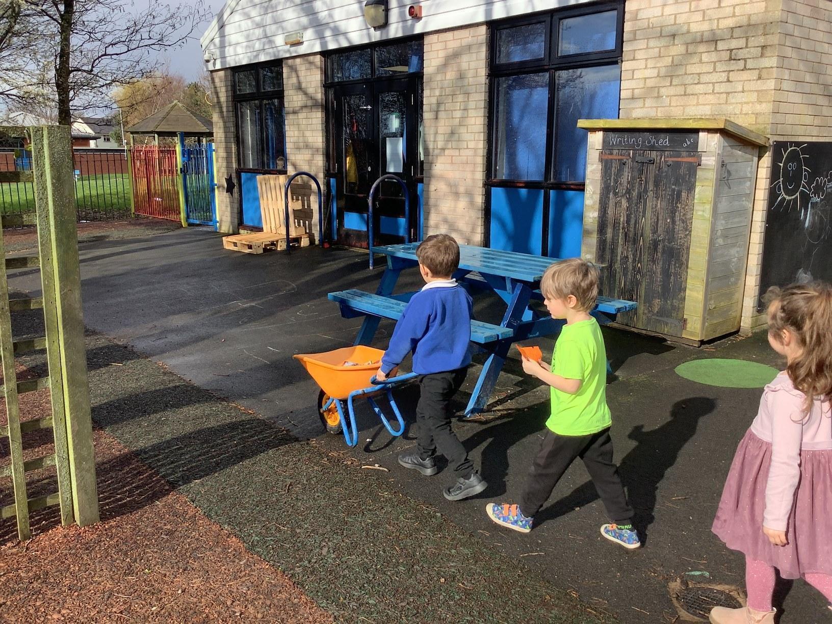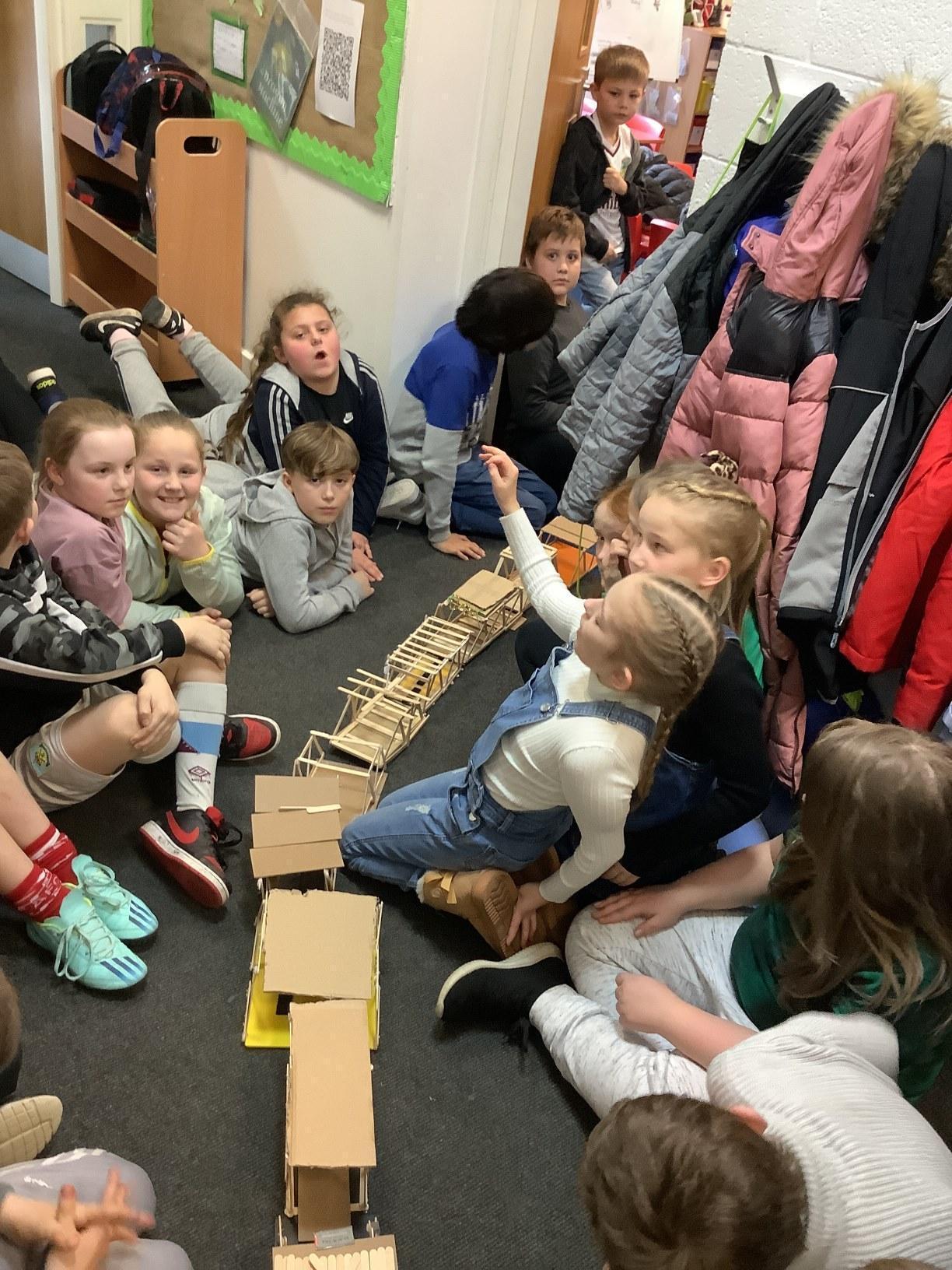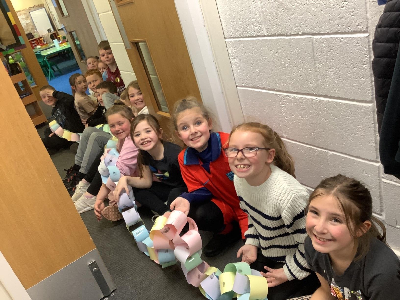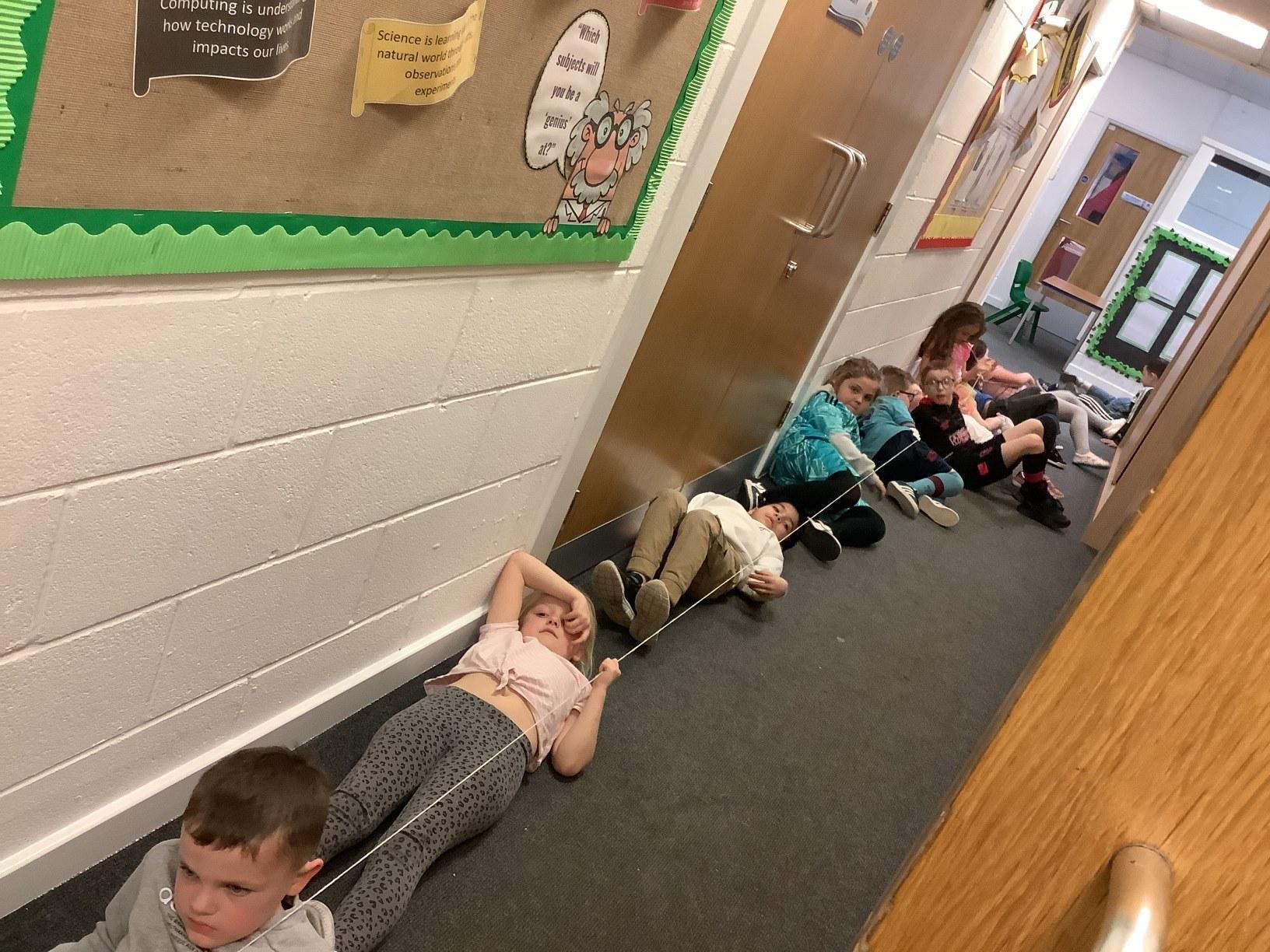 The school connected by a wheel barrow, electricity, hand squeezes, fingerprints, a telephone, bridges and rulers! A huge well done to everyone! Mrs Bates