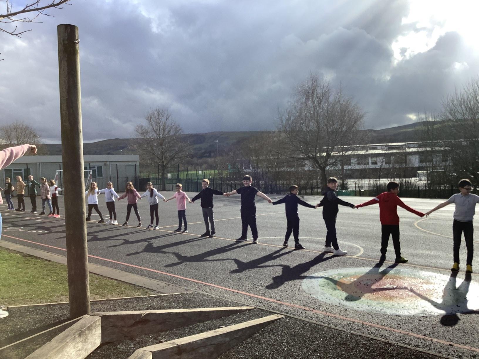 The theme for Science Week was 'Connections'. Each class investigated how they can connect and to end the week, the whole school connected!