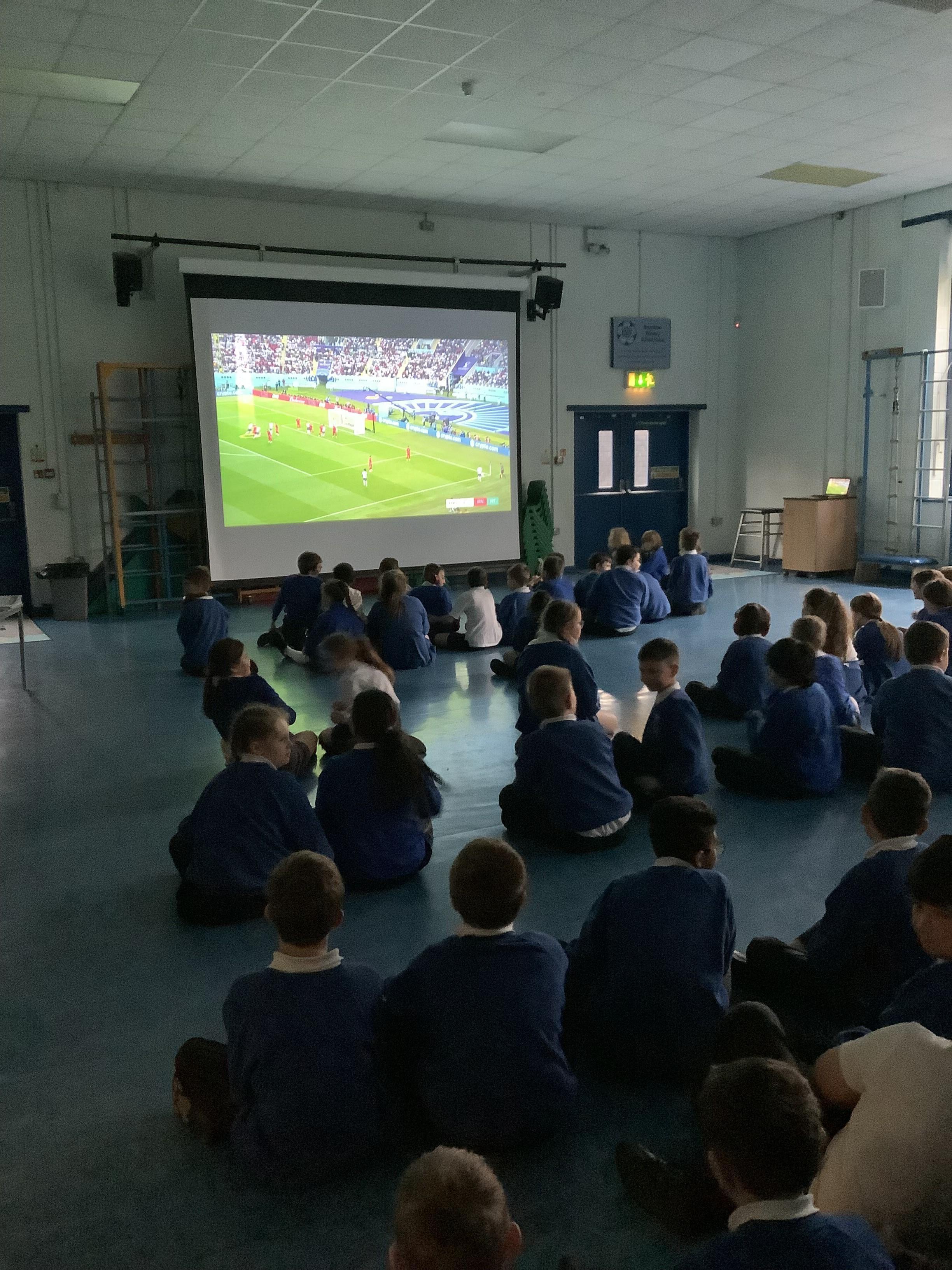 As part of our passport experience (watching a live sport) the children in year 5 and 6 were able to watch the 2nd half of the first England match in the World Cup. Come on England!