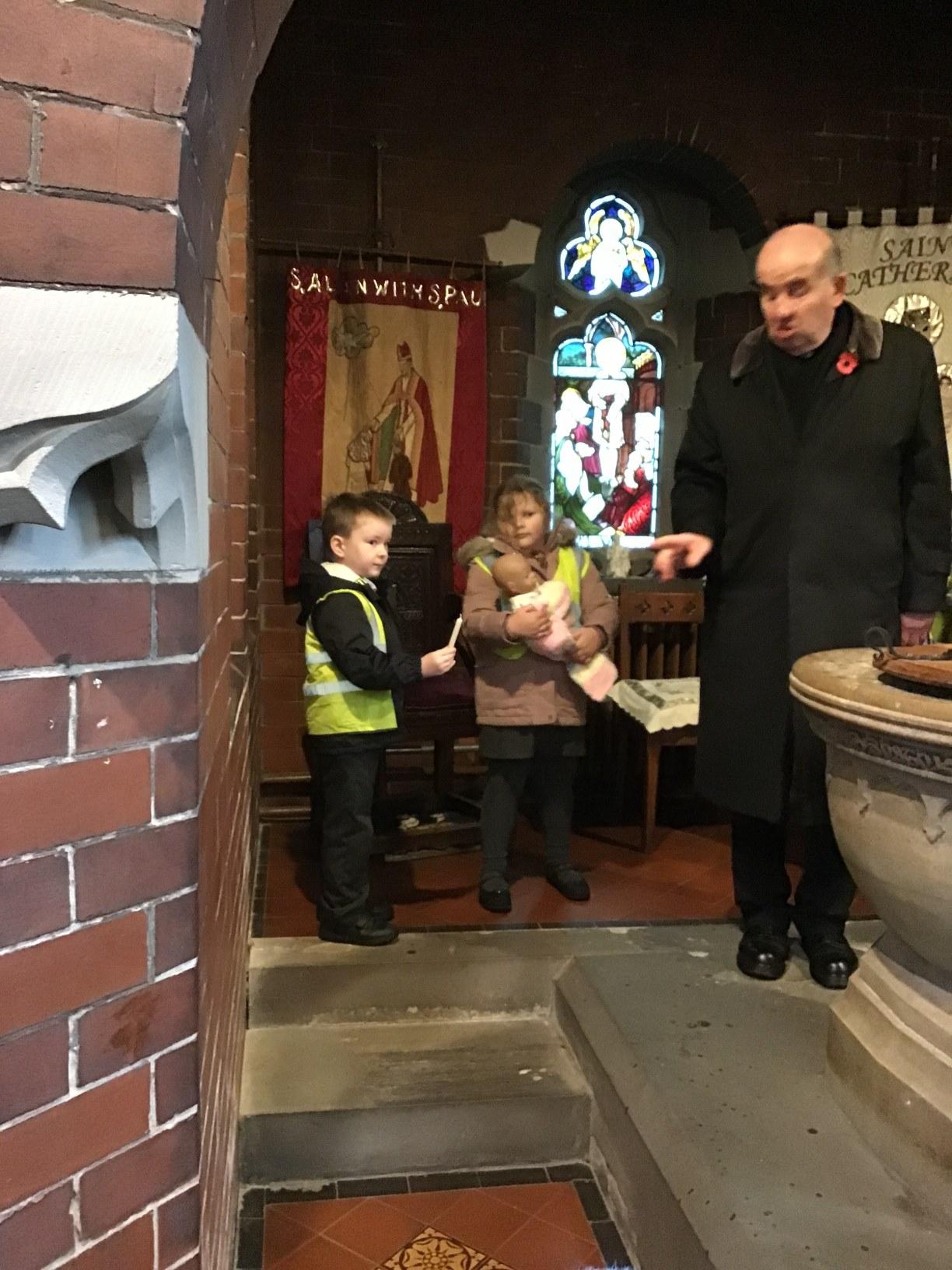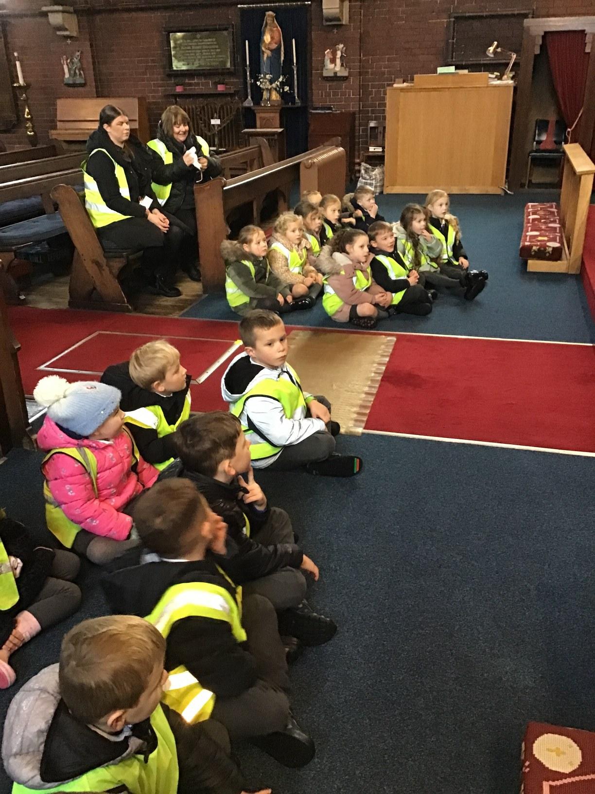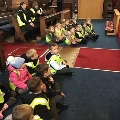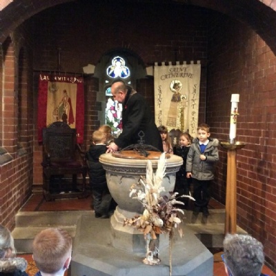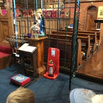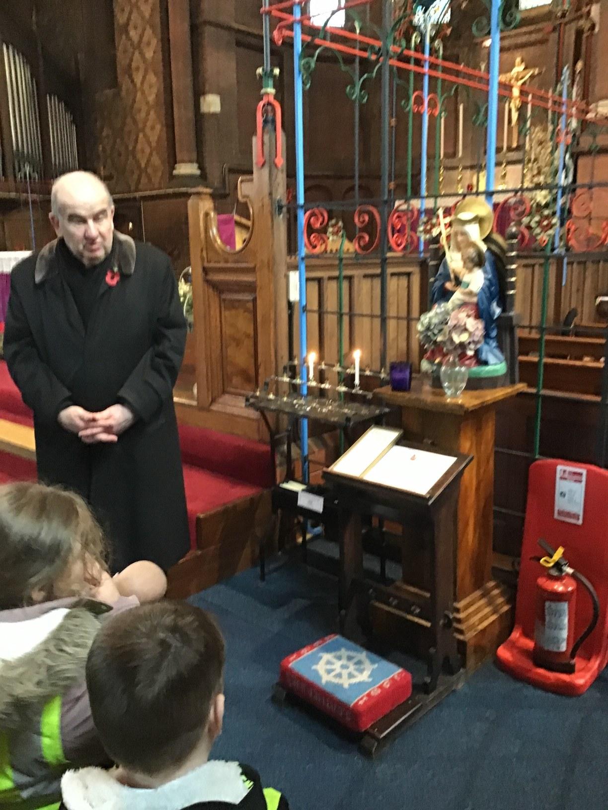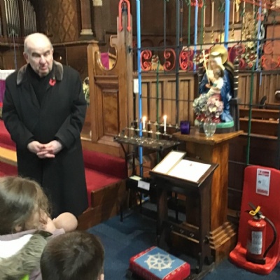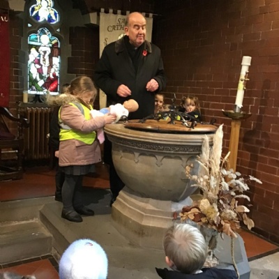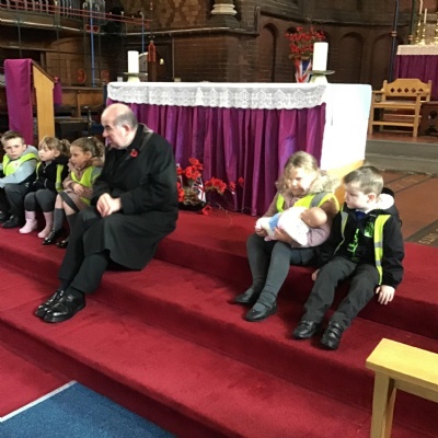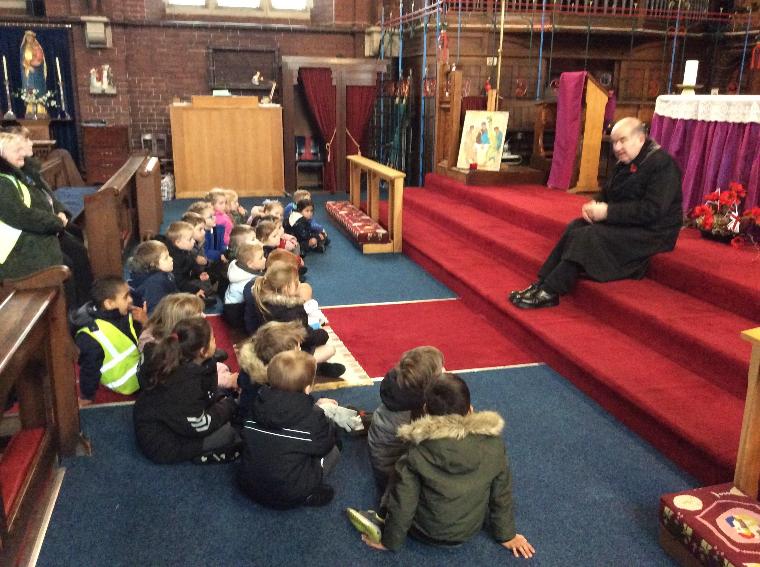 Year 1 visited St Catherine's church on Tuesday as part of their RE learning. Father Roger showed us around the church and staged a baptism using a dolly. He used holy water and the sign of the cross. After the Baptism we lit a candle. The children loved taking turns to push the pram with baby Annabelle in. The children enjoyed being in church and were very well behaved.