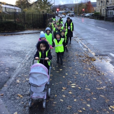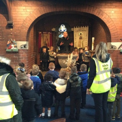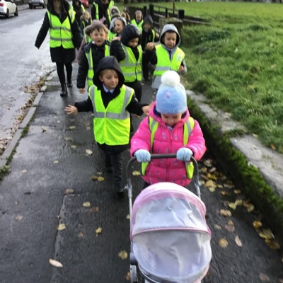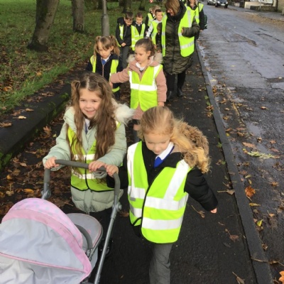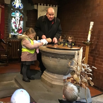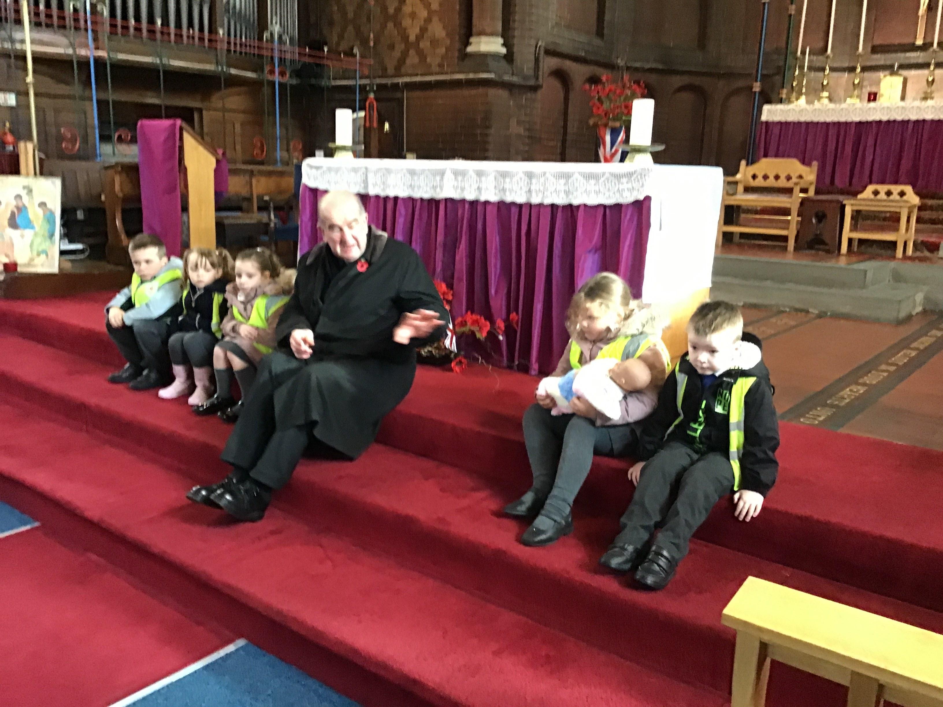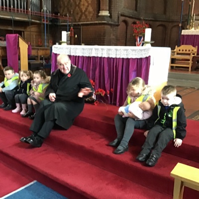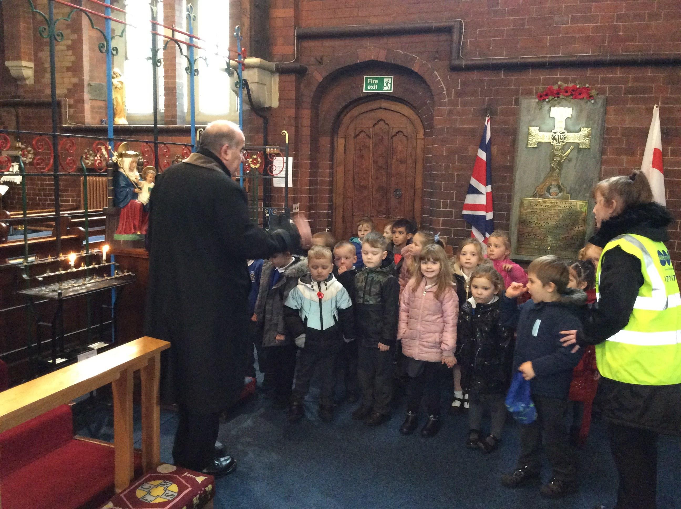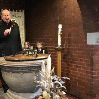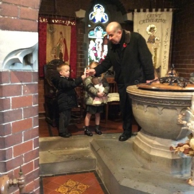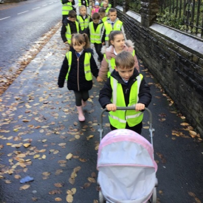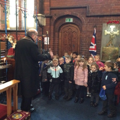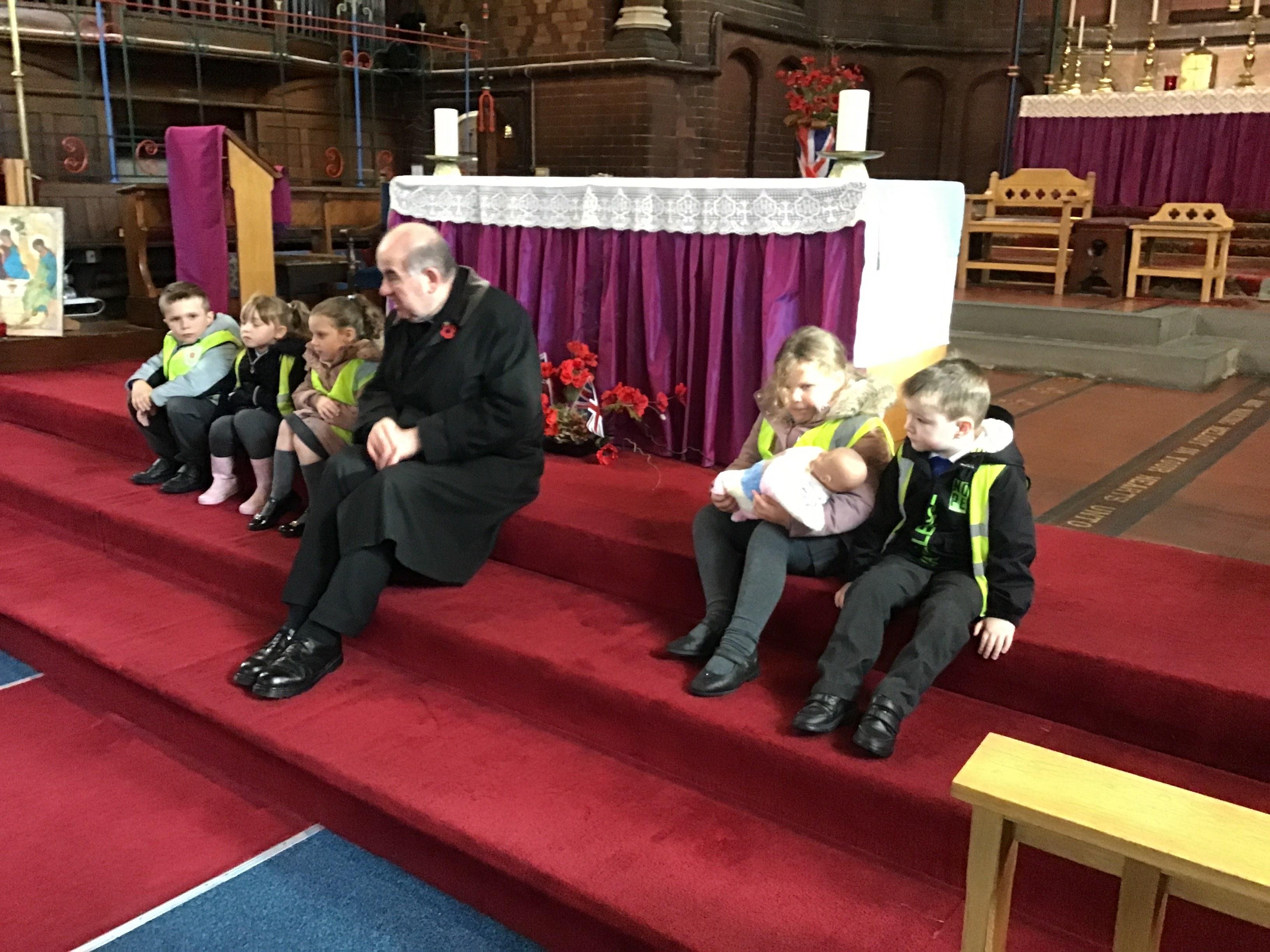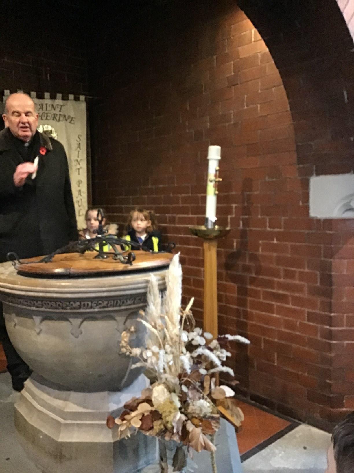 Year 1 visited St Catherine's church on Tuesday as part of their RE learning. Father Roger showed us around the church and staged a baptism using a dolly. He used holy water and the sign of the cross. After the Baptism we lit a candle. The children loved taking turns to push the pram with baby Annabelle in. The children enjoyed being in church and were very well behaved.