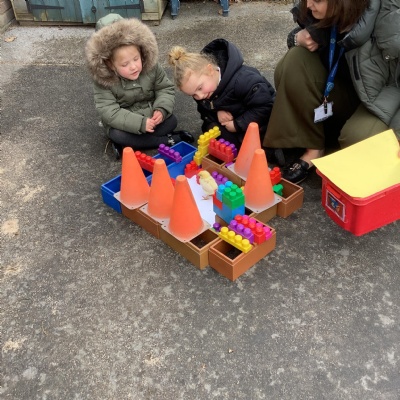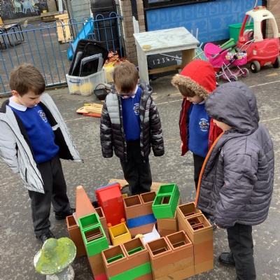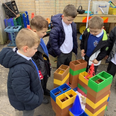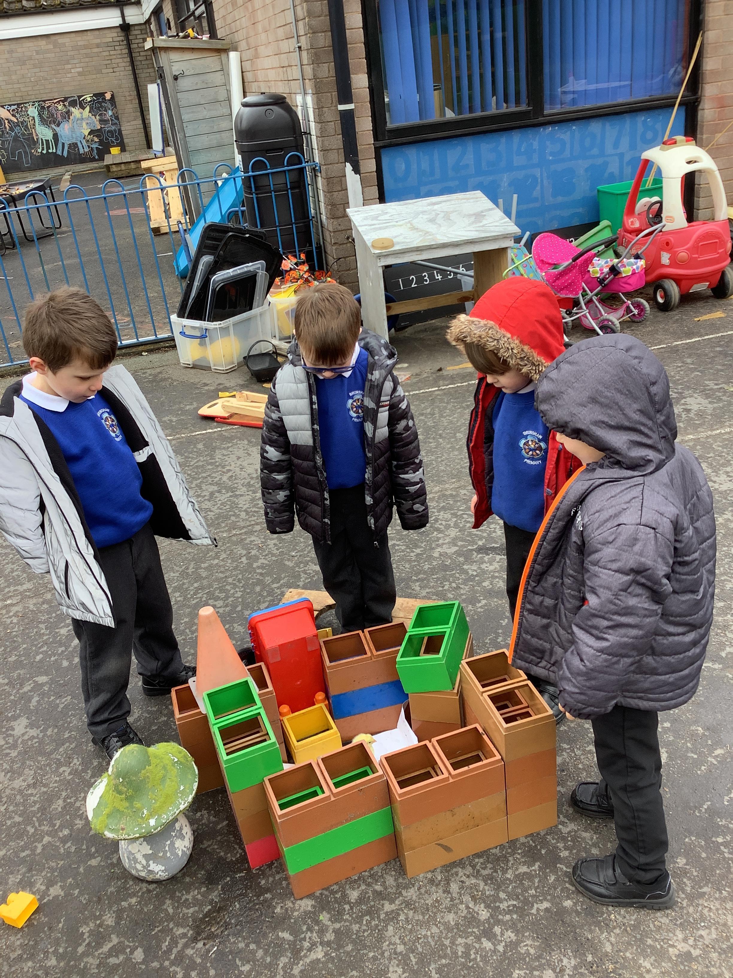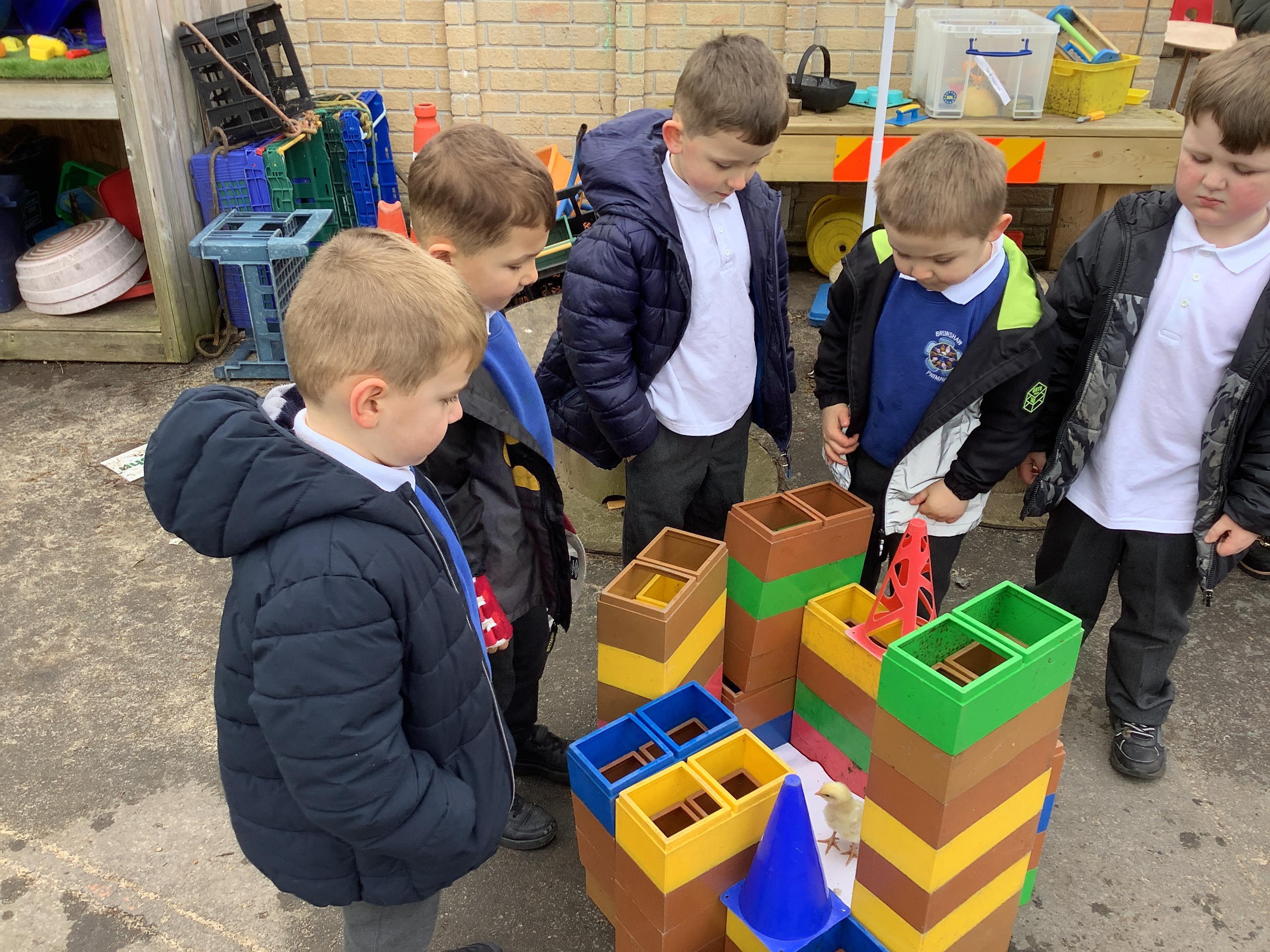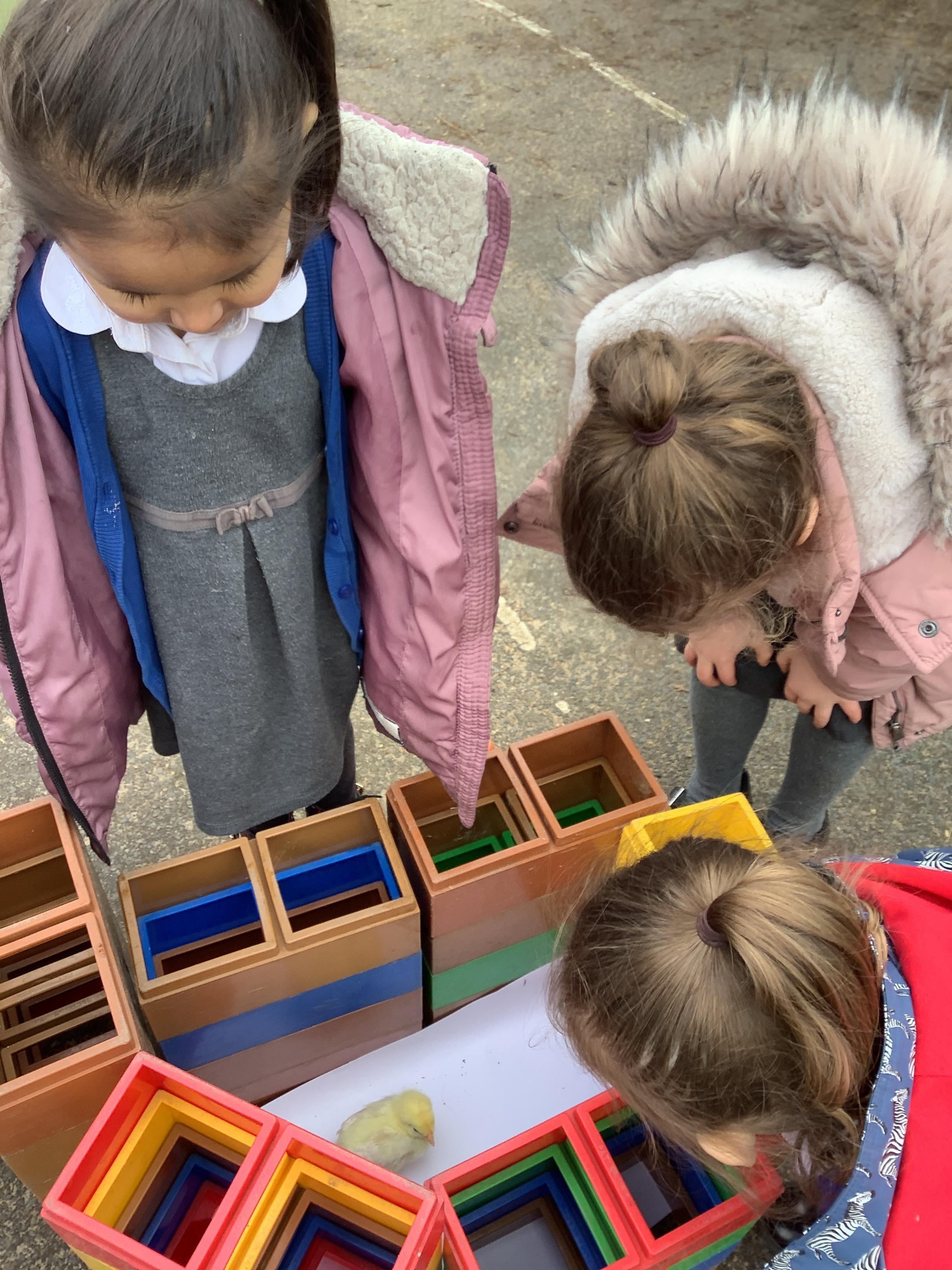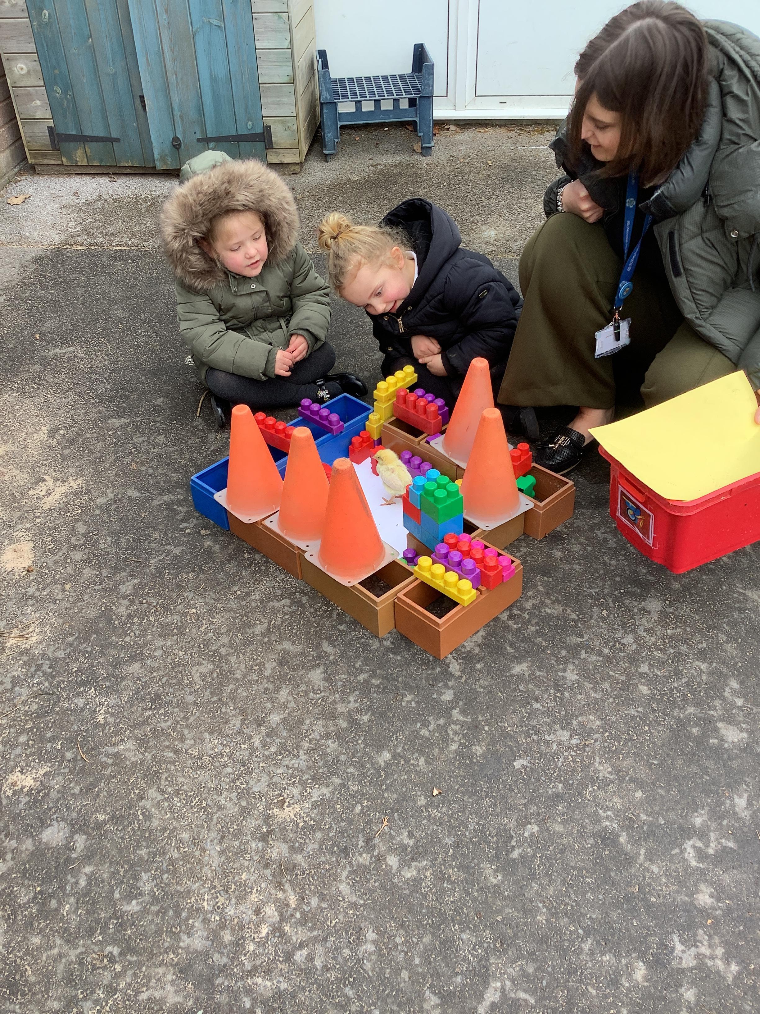Today is our last day with the chicks! Before they go, we wanted to give them a taste of the outdoors, so we worked in groups to build some pens for them. We talked about making the walls high enough so they couldn’t fly away and checking for any gaps the chicks might be able to squeeze through. The children used their skills in teamwork, problem solving and resilience and each pen was successful in giving the chicks a safe sniff of fresh air!