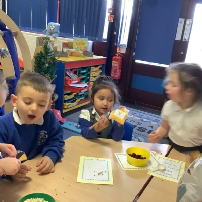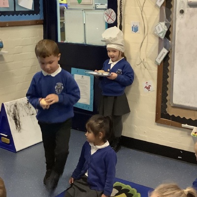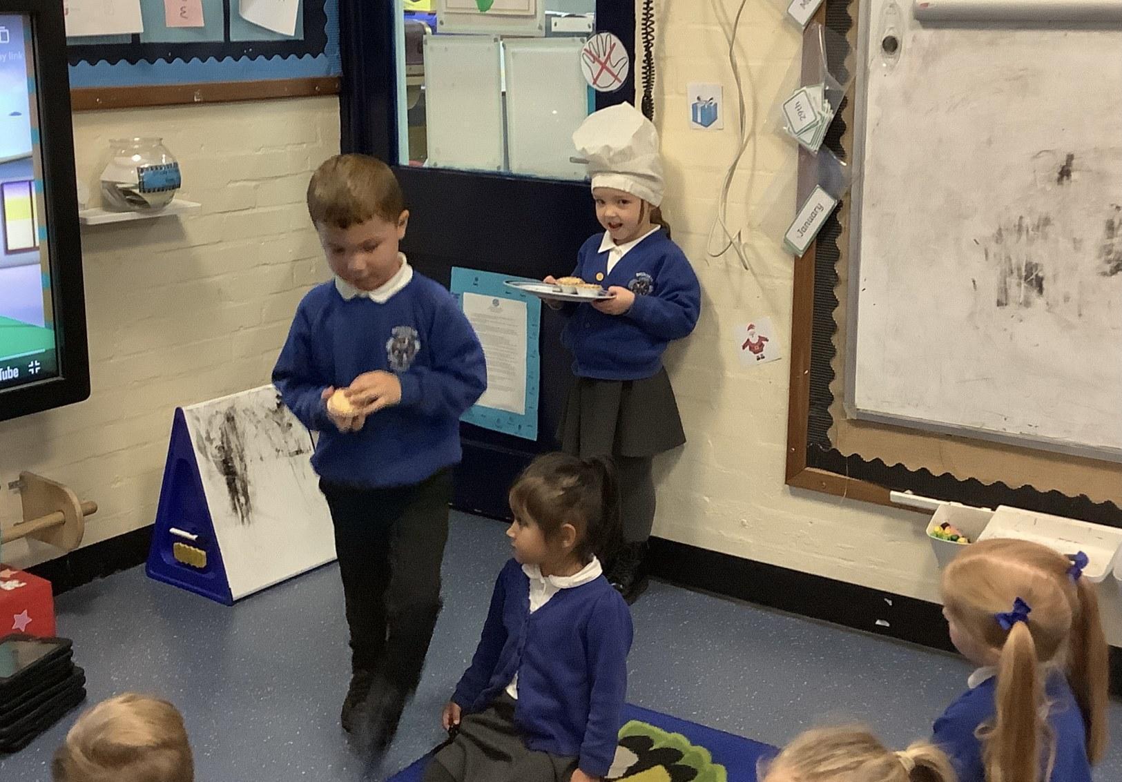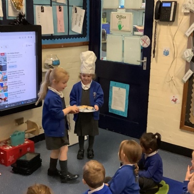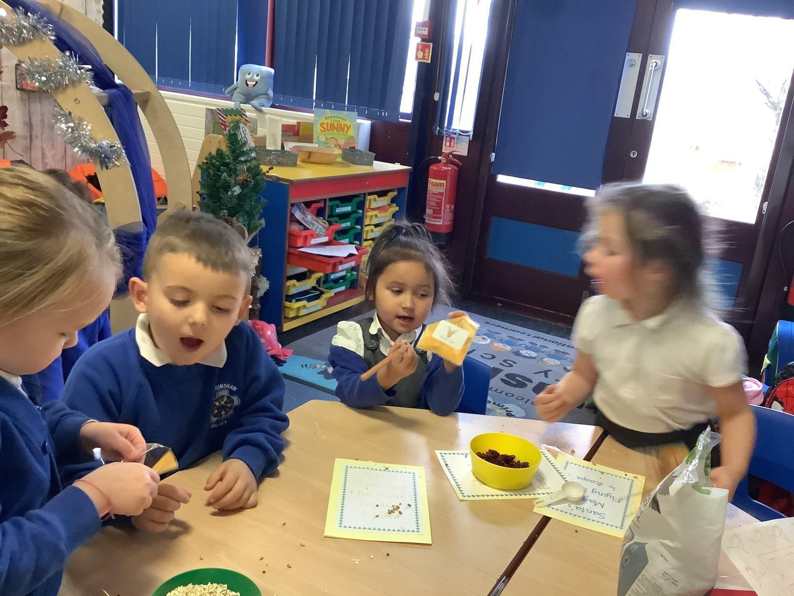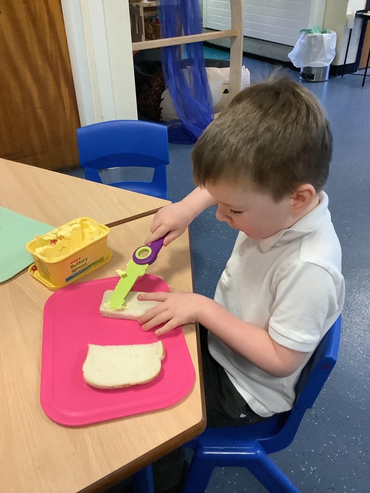 On Tuesday, we talked about carrying out activities in the correct sequence. First, we taught Buddy Bear how to brush his teeth. Then, we told Miss Lees the order of steps to make a jam sandwich. After that, we had a go at making our own. We all remembered the steps to make our sandwiches and enjoyed eating them too!