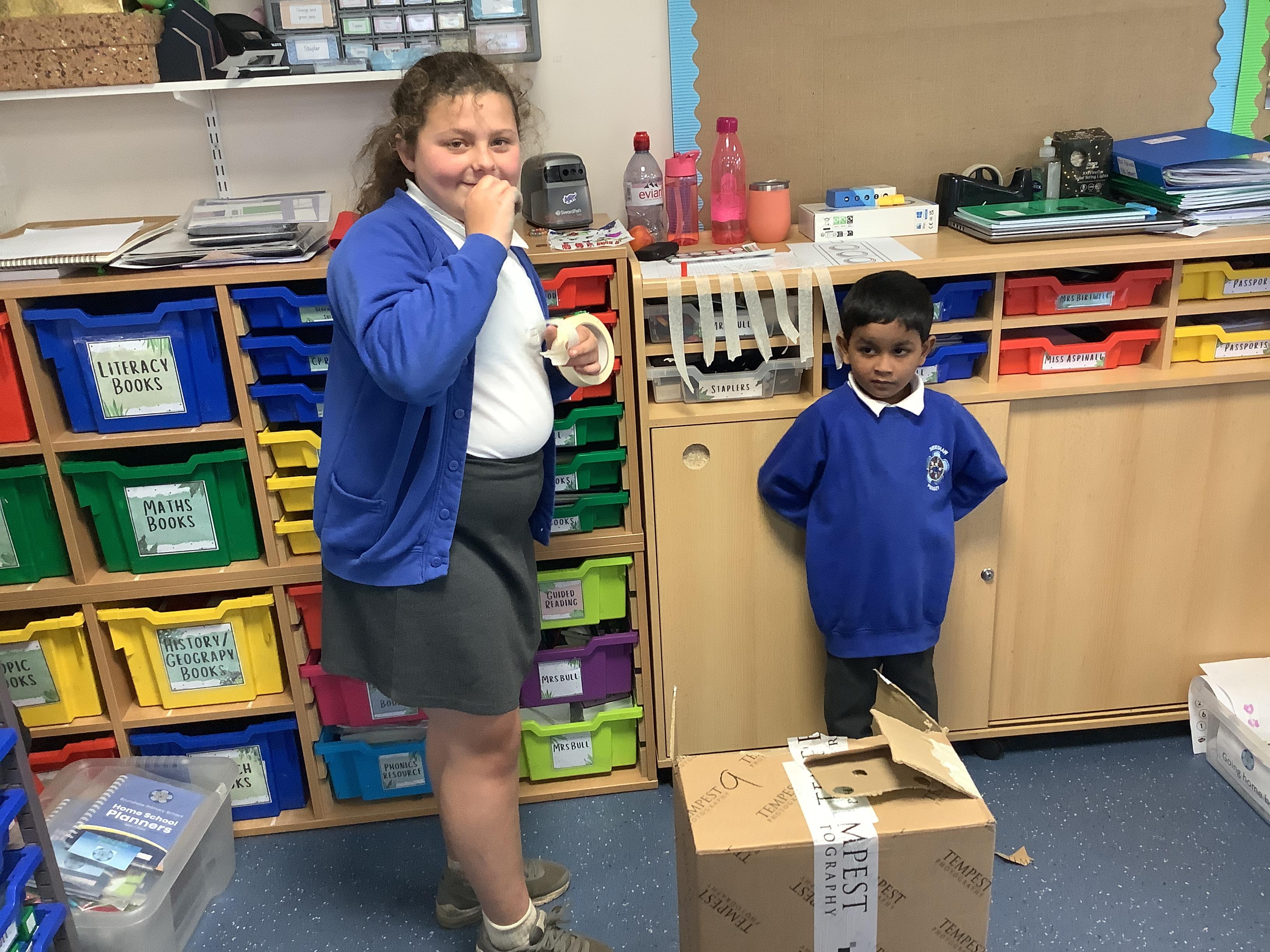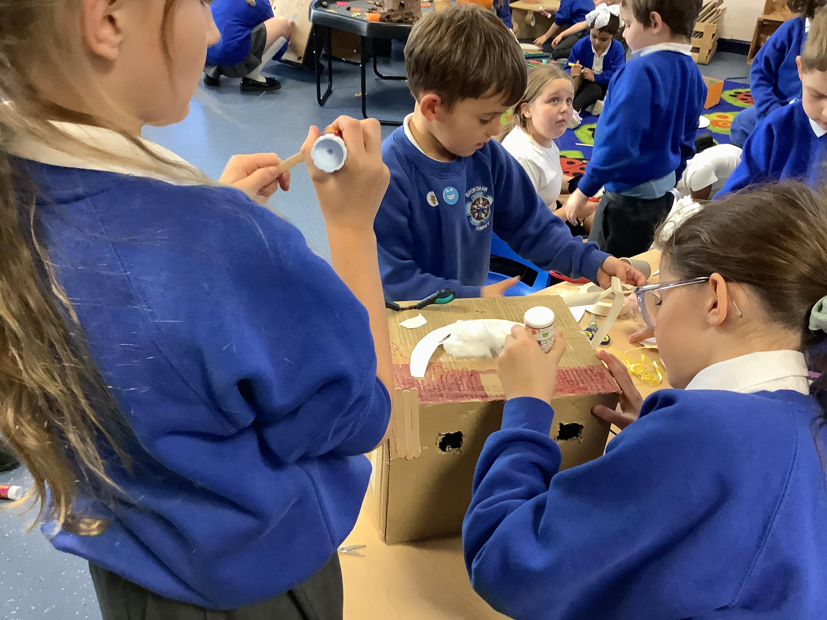 On Wednesday Sycamore and Elder classes teamed up for Seeds and Gardeners. The children used a box to make houses, rockets and buses. It was so lovely seeing the children interacting and working collaboratively.