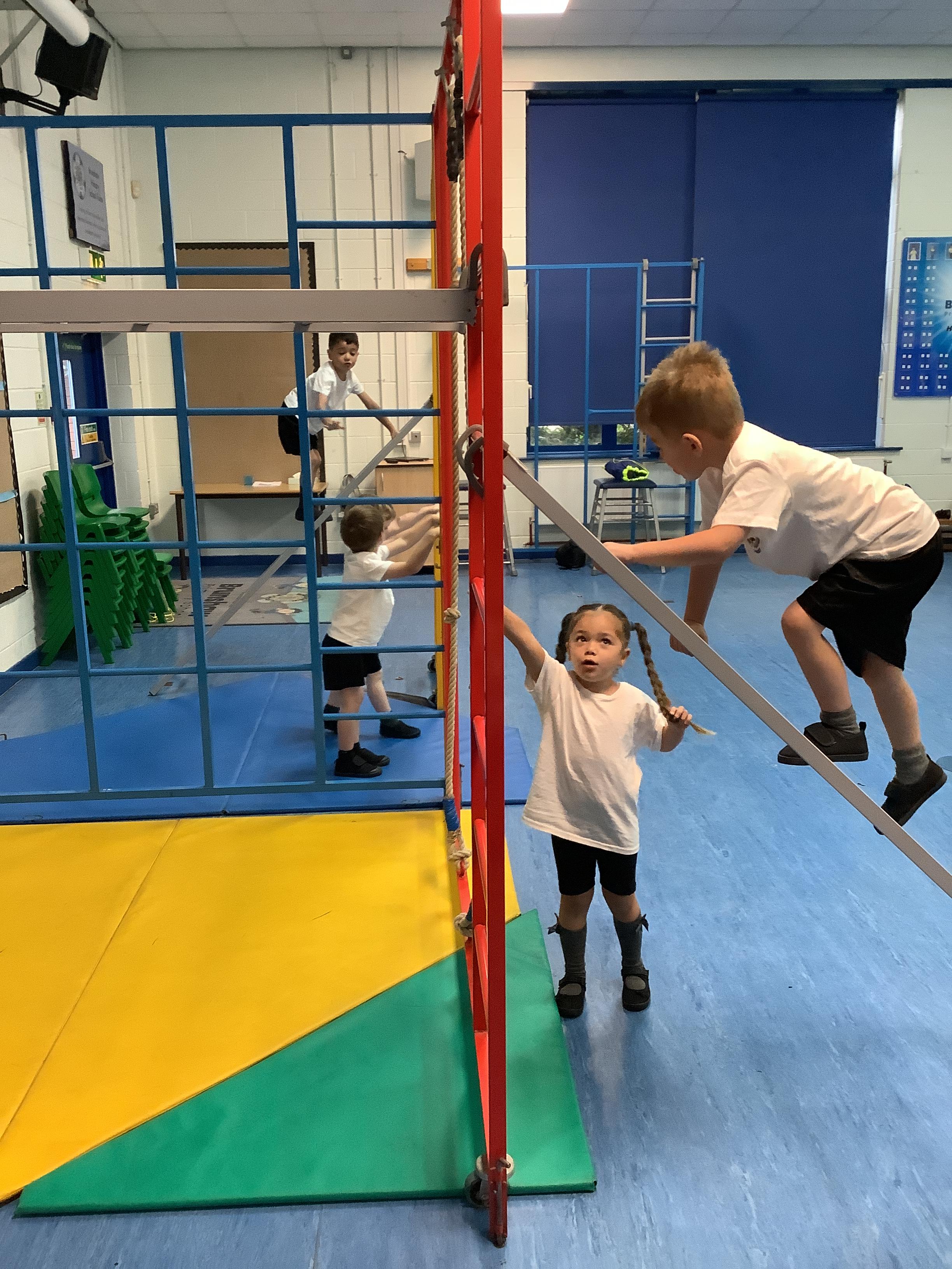 Fantastic Physical Development in Willow Class. This week in PE, we used lots of the large apparatus. We used our gross motor skills to climb, throw, crawl, jump and balance and had lots of fun whilst doing it! Even though a few of the children were nervous at first, they all had a go at everything and I am very proud of them!