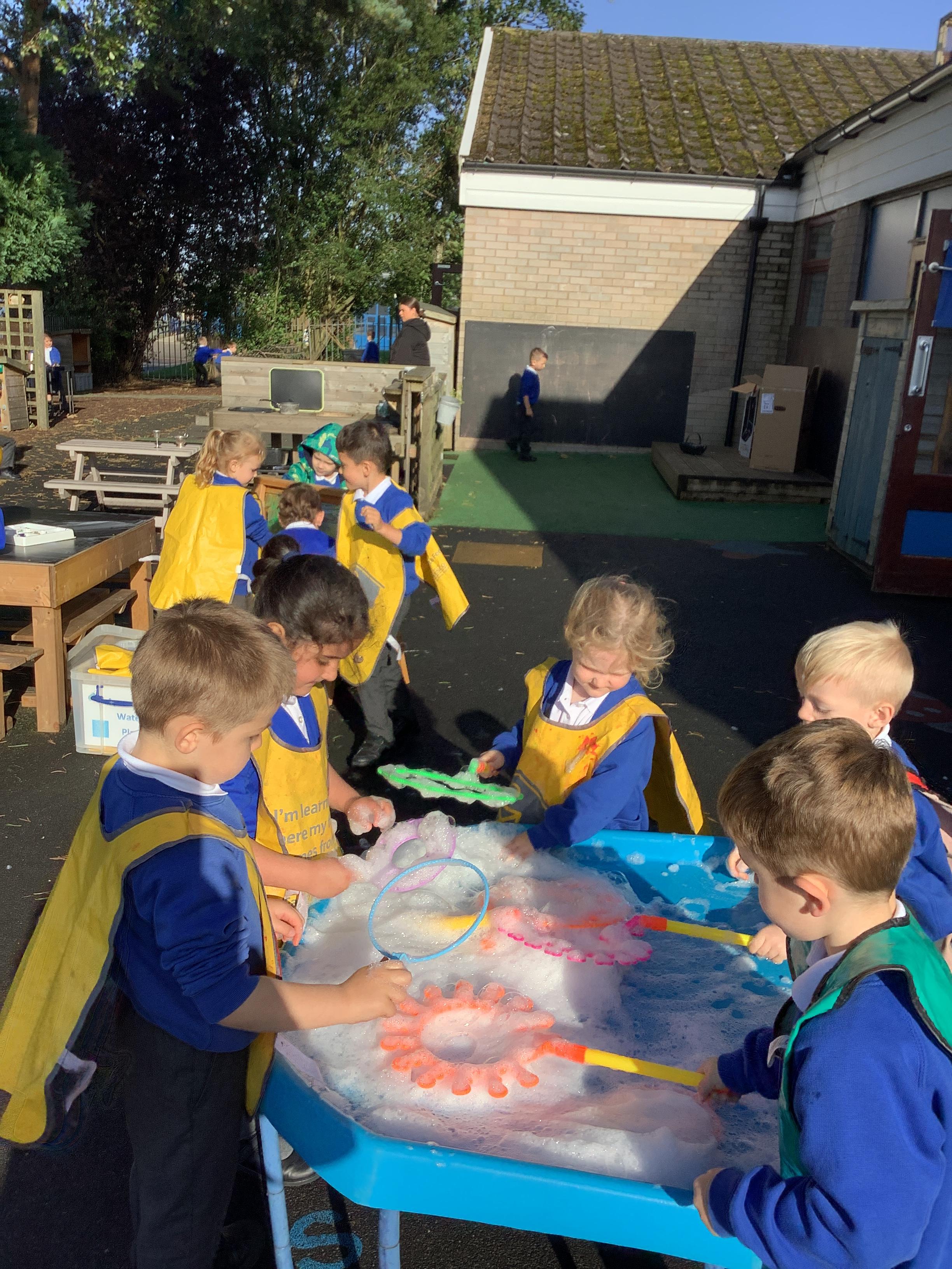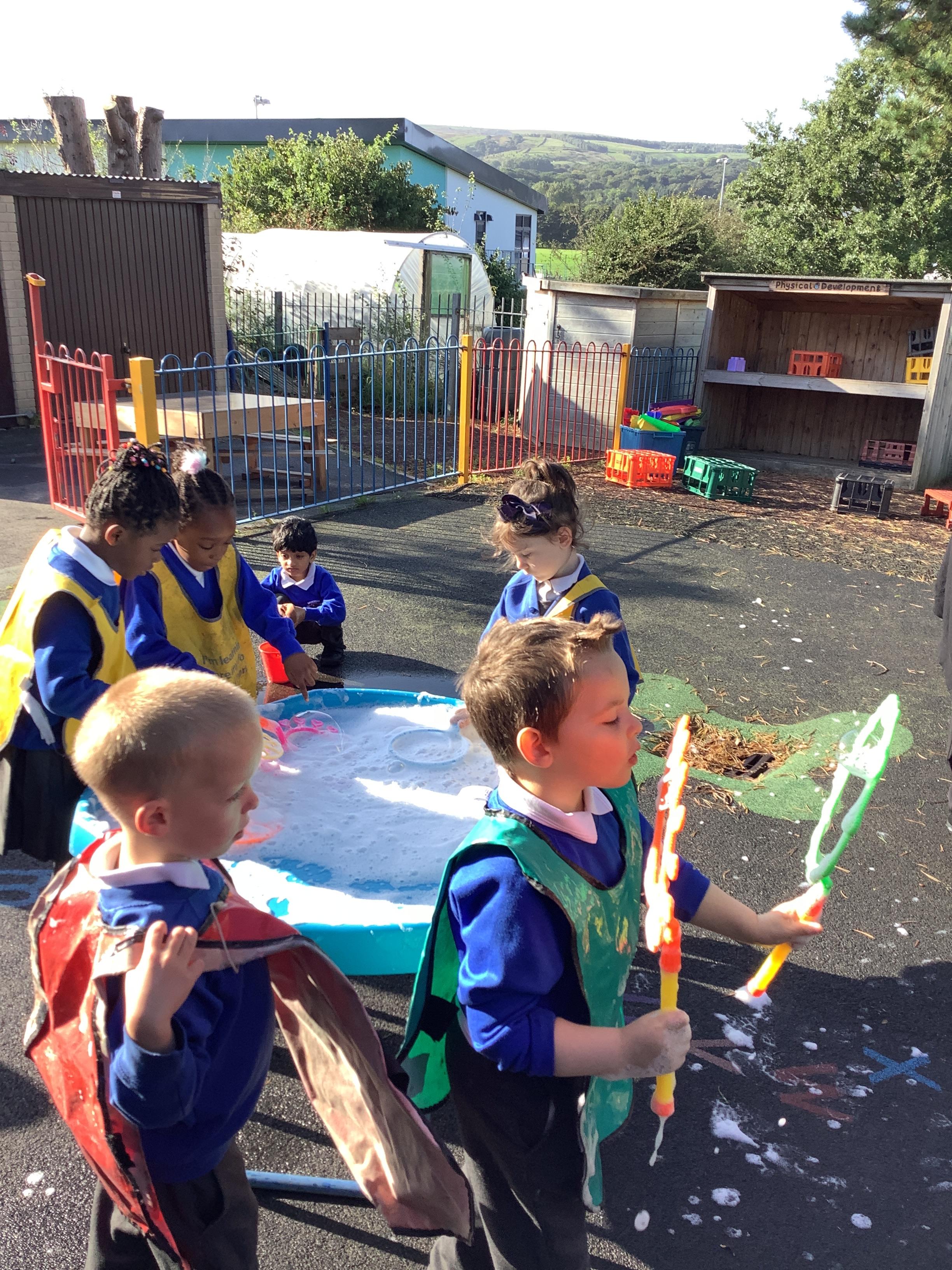 Windy day fun at the Foundation Centre. On Thursday, the Reception children had lots of fun exploring the windy weather. They played with bubbles, ribbons, pom-poms and wind catchers.