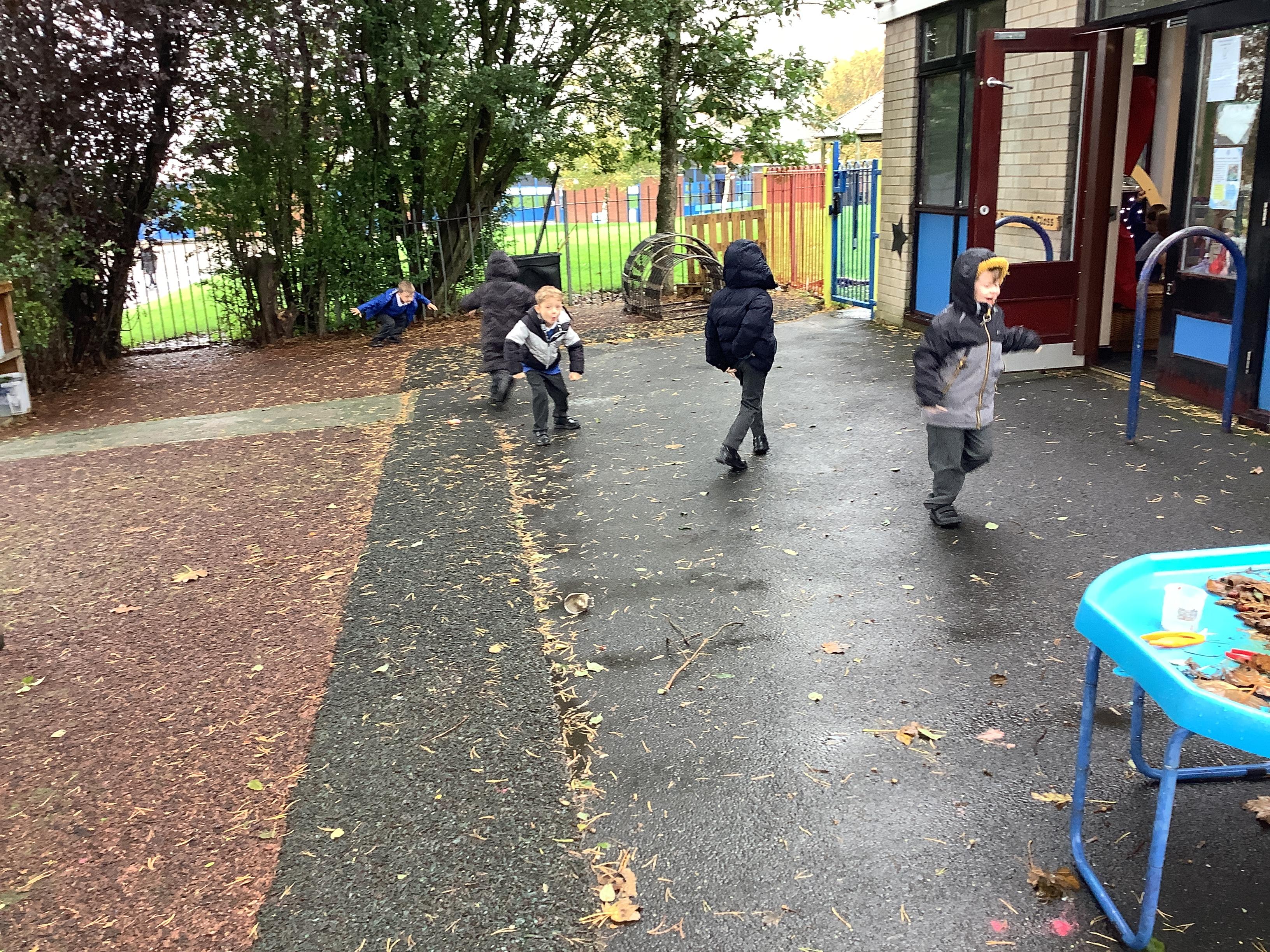 The children in Willow and Sycamore Class didn't let a bit of wet weather spoil their fun. We put on wellies and waterproofs and had fun in the rain.